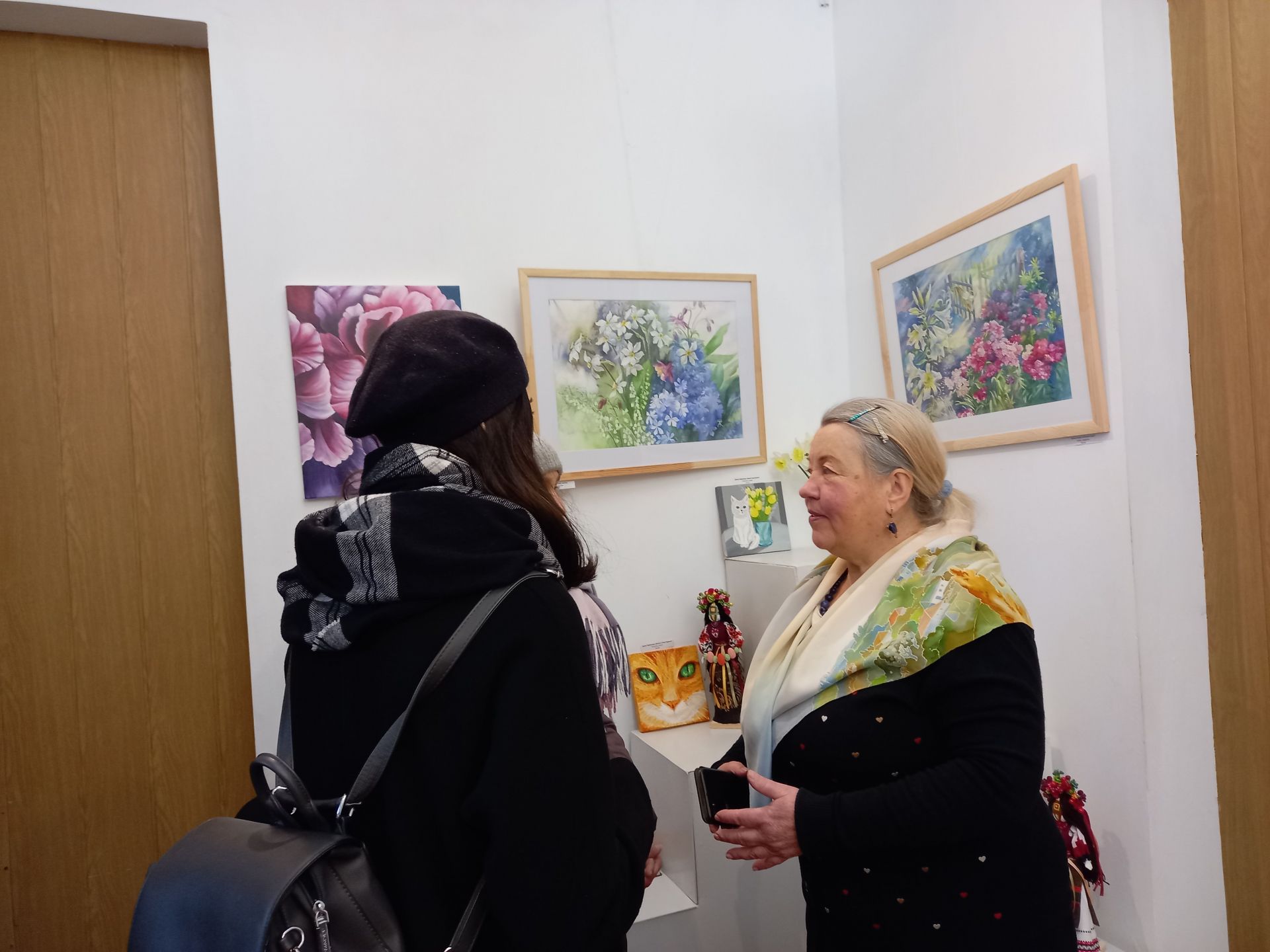 — Тут зібралася невелика експозиція, — каже Тетяна Куліш. — Здебільшого це квіти, весна, але у нас так і виставка називається. Хочеться, щоб у майбутньому ми розширювали палітру наших уподобань, наших бажань і наших мотивів, які ми будемо зображати. Всім хочу побажати гарного настрою і гарних Великодніх свят. Нехай буде у нас мир і здоров’я і щоб ми були щасливі і творили світ навколо нас.