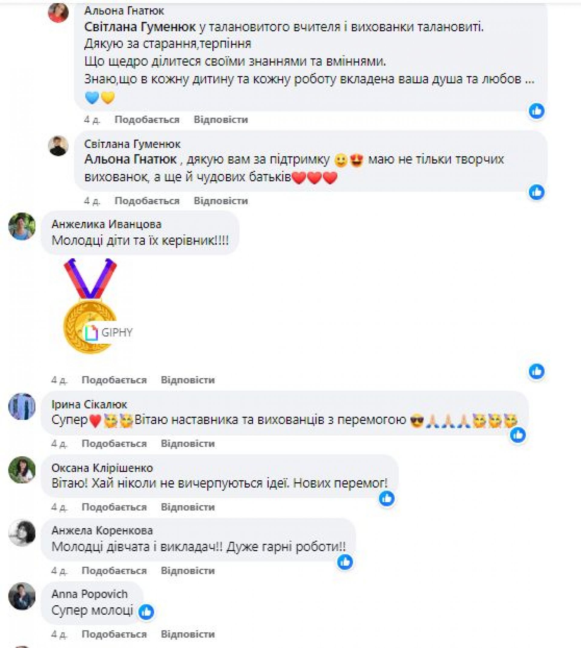 — Вітаємо дівчаток та керівника гуртка Світлана Гуменюк з відмінними результатами. Бажаємо Вам успіхів, натхнення та мирного неба, — йдеться у дописі