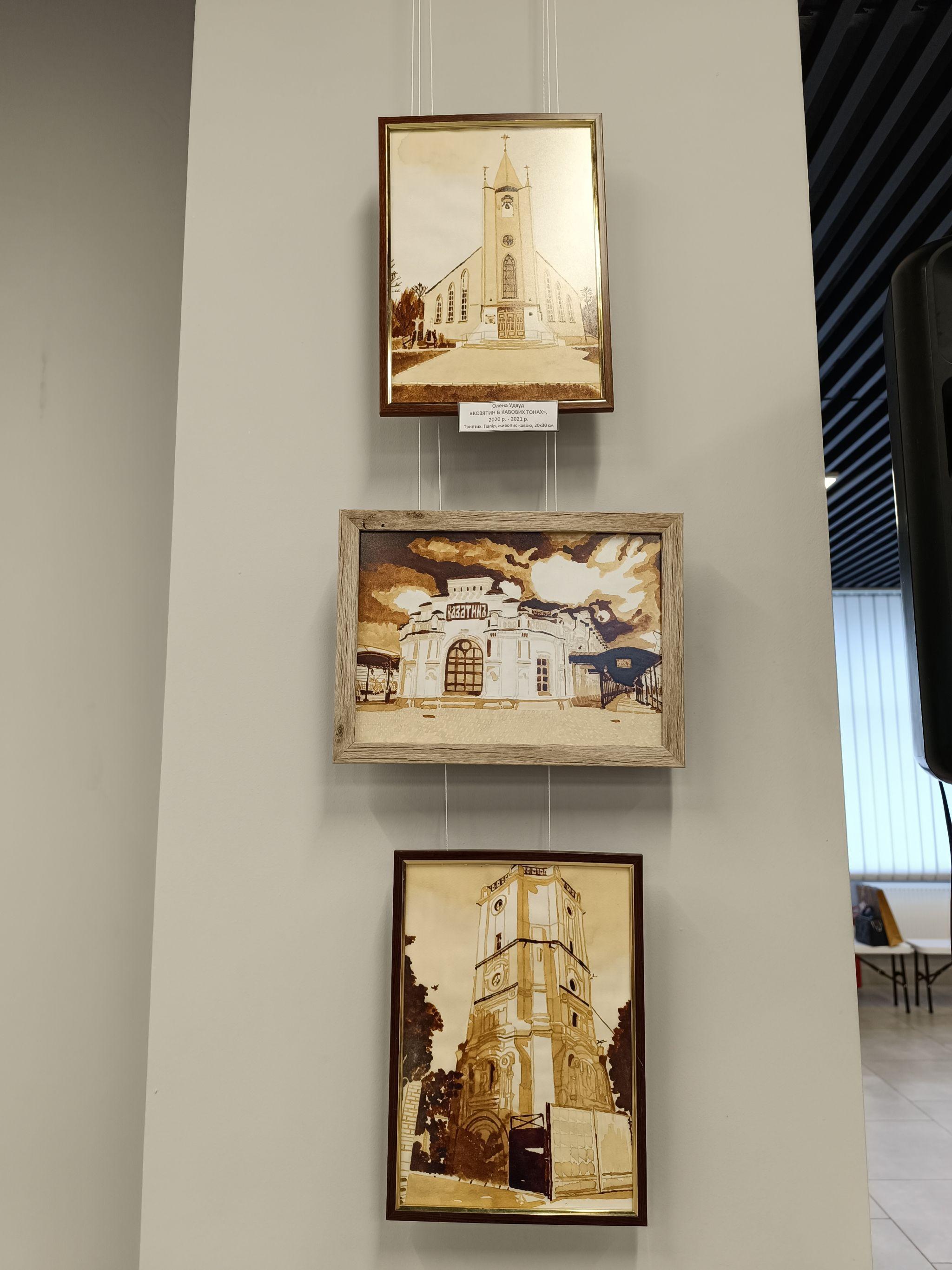 - Картини художники виконали у різних техніках — акрил, акварель і навіть кава
