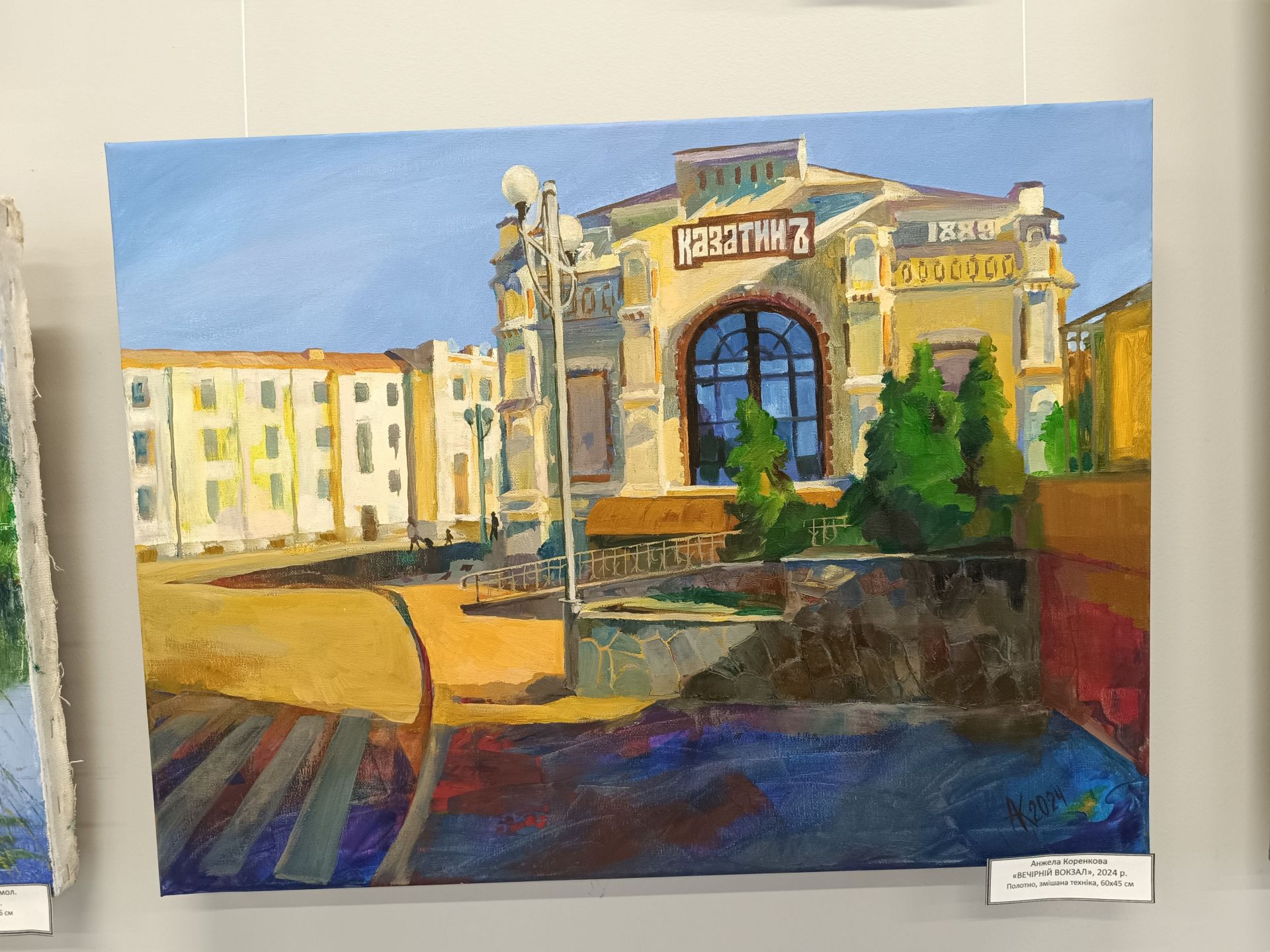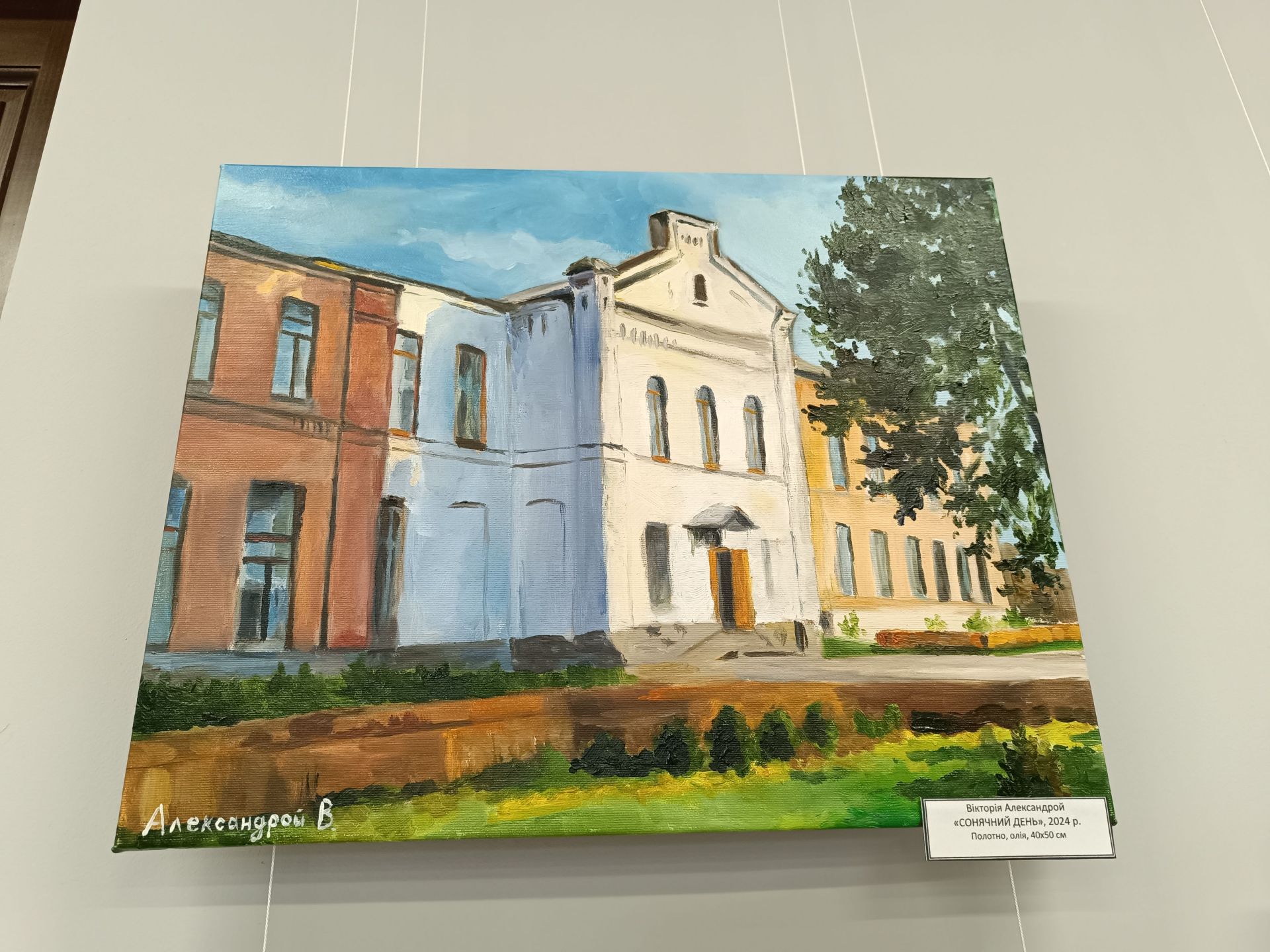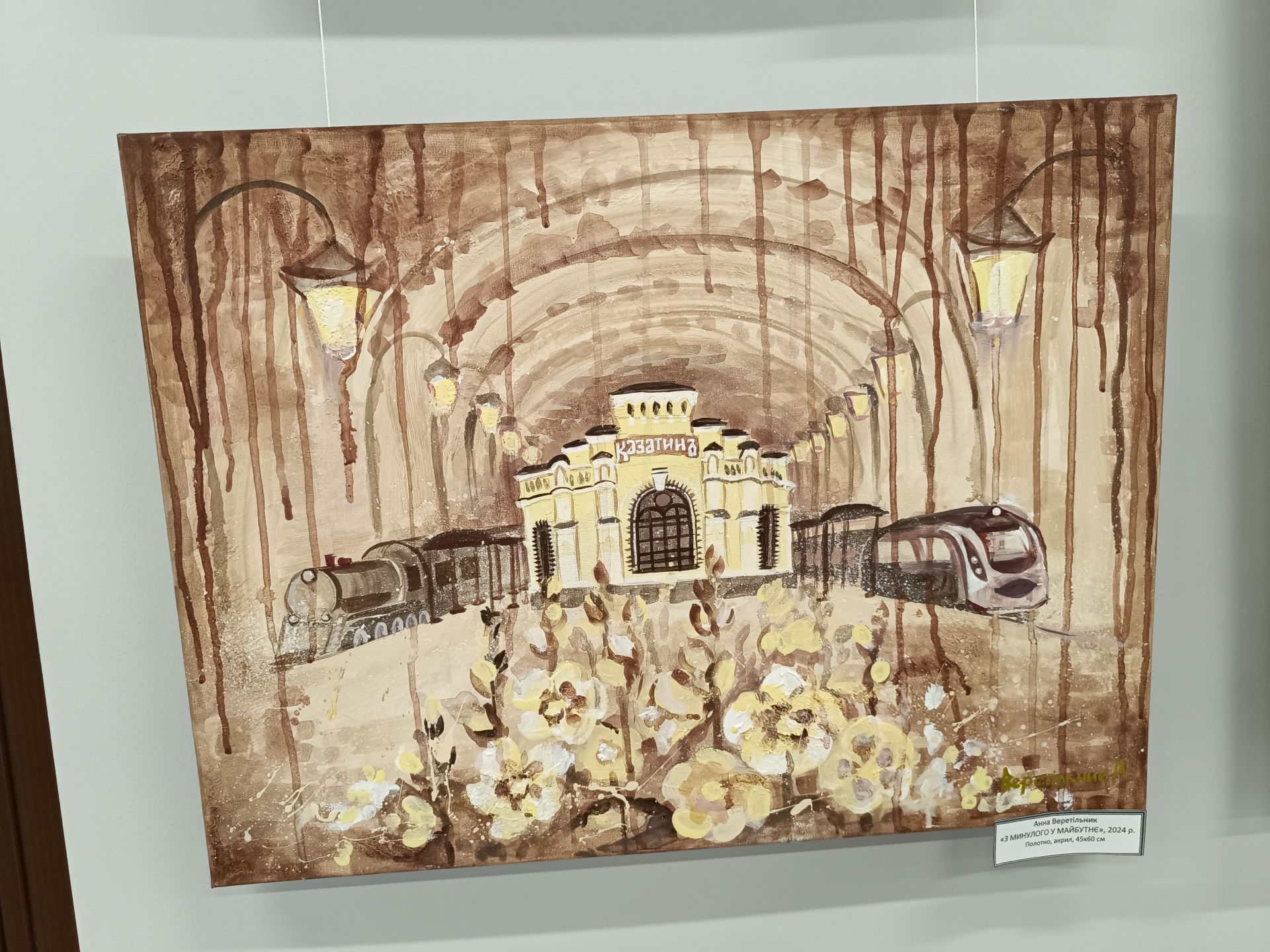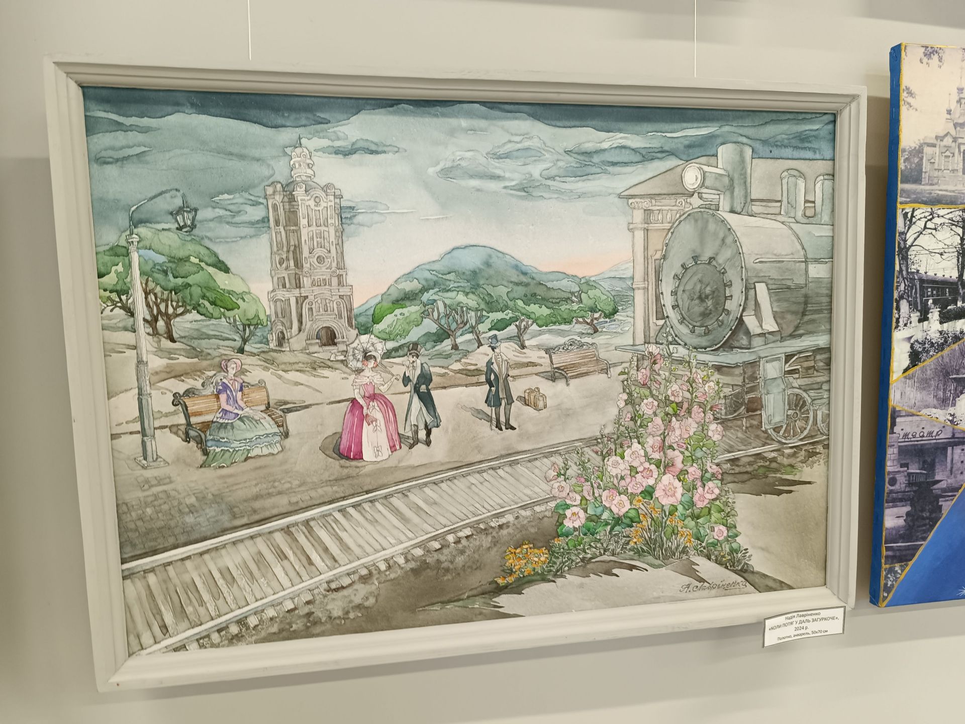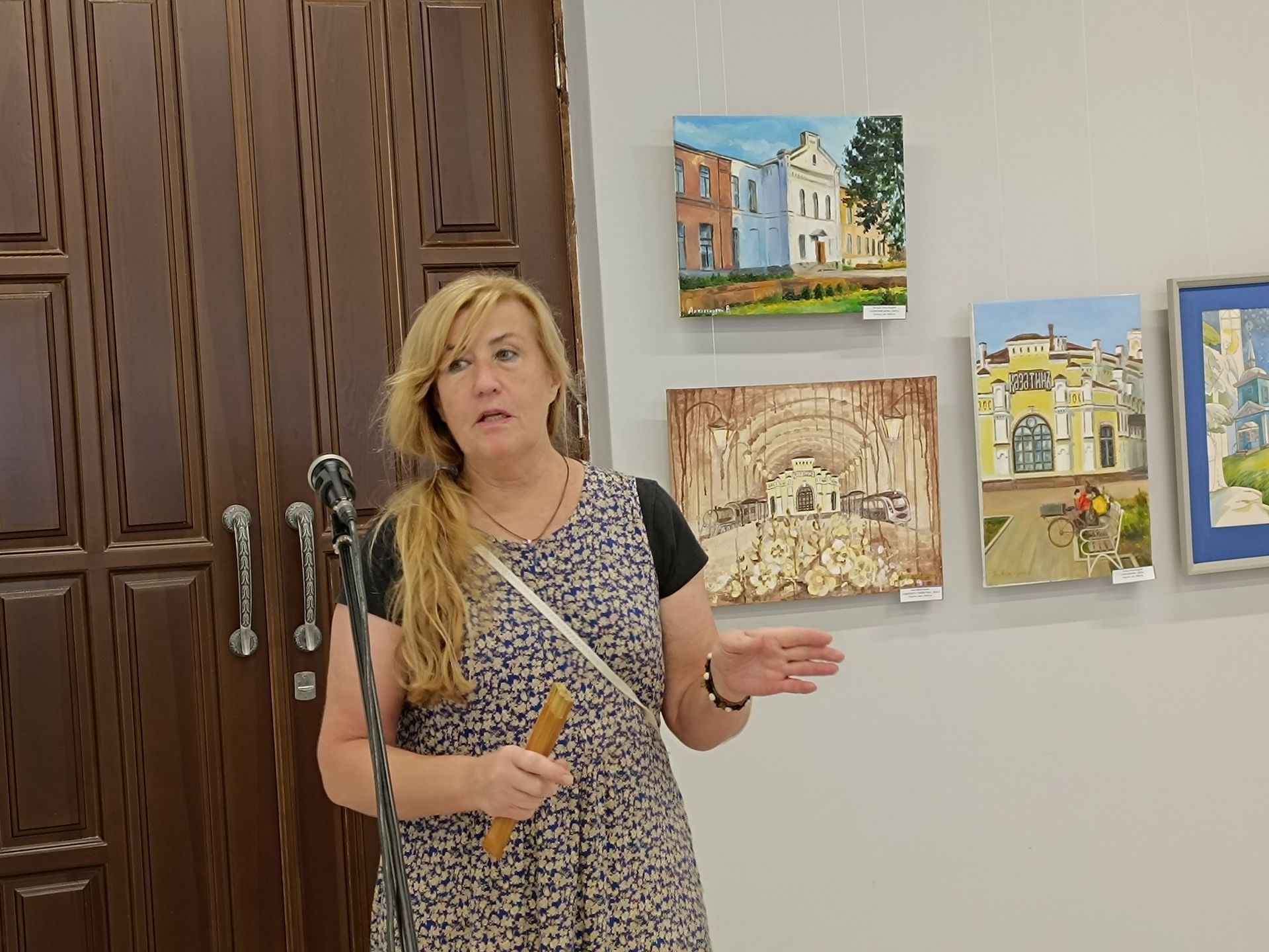 — Наша громада славиться не лише гарними пейзажами, а й старовинними пам’ятками архітектури, — каже ведуча Ольга Безпалько. — Їх багато фотографують, вони досить популярні за межами нашого міста, але митці в кожну картину, яку створювали, вдихнули життя, сенси. Кожна картина — це ніби портал в інший вимір. Вокзал, де на Київській платформі старий паротяг, а на Шепетівській — інтерсіті. Козятинські фонтани, яких давно вже немає, але вони ожили на полотні.