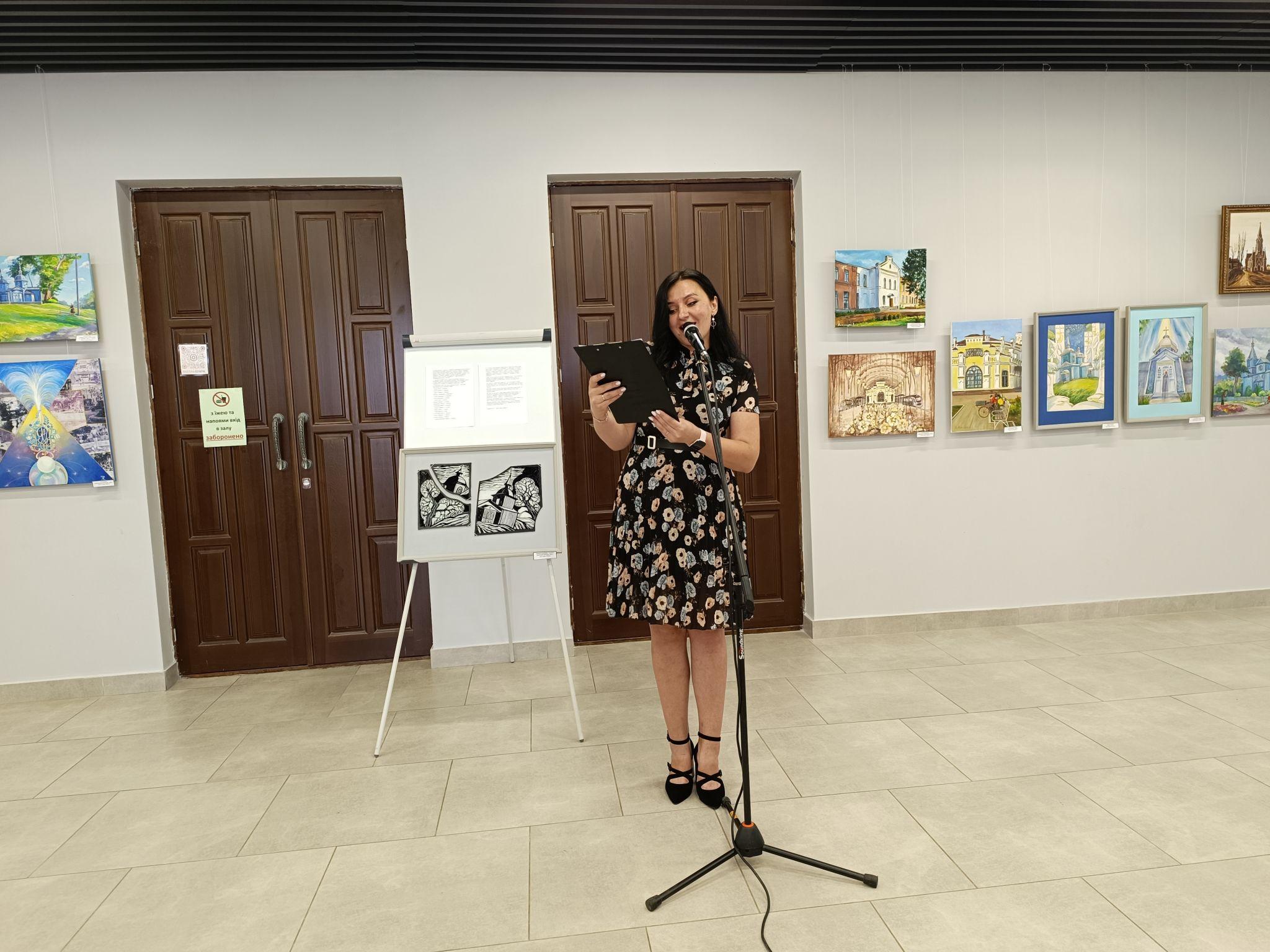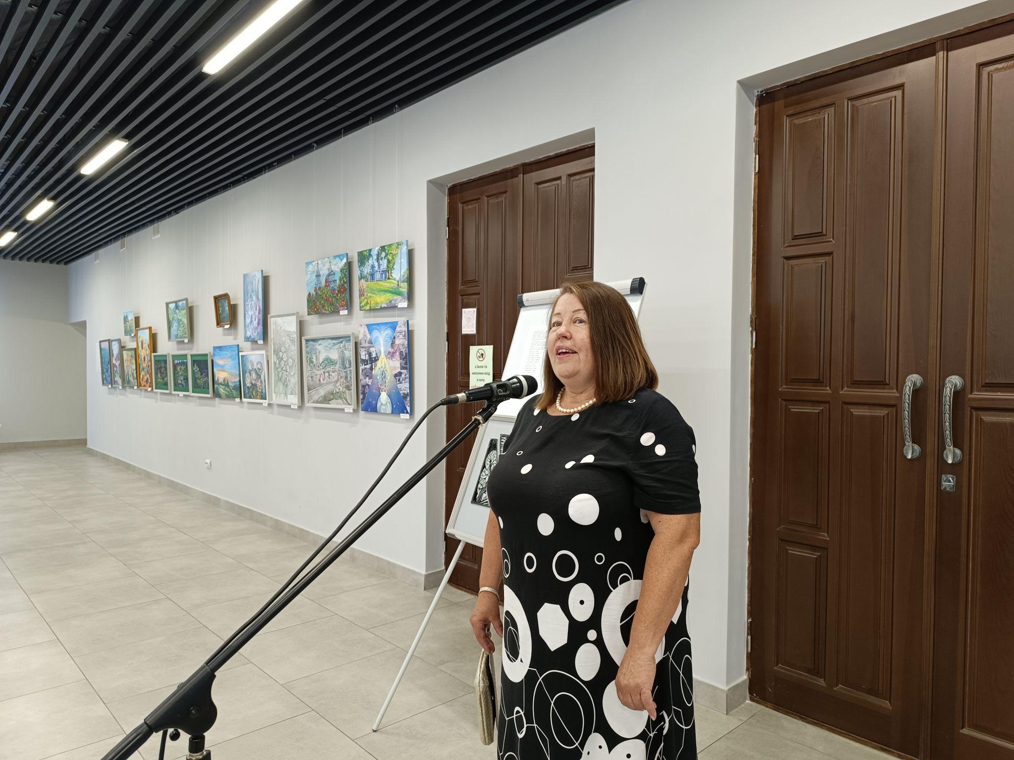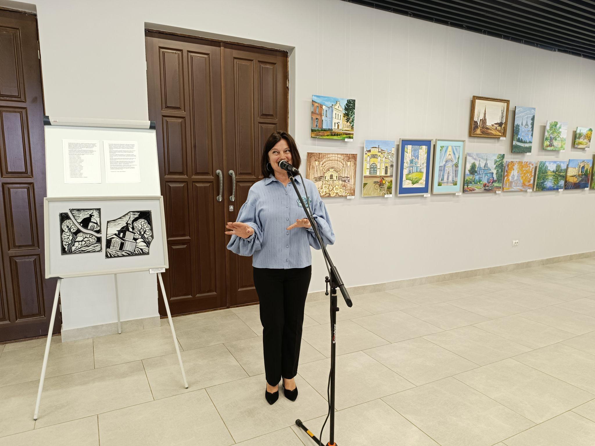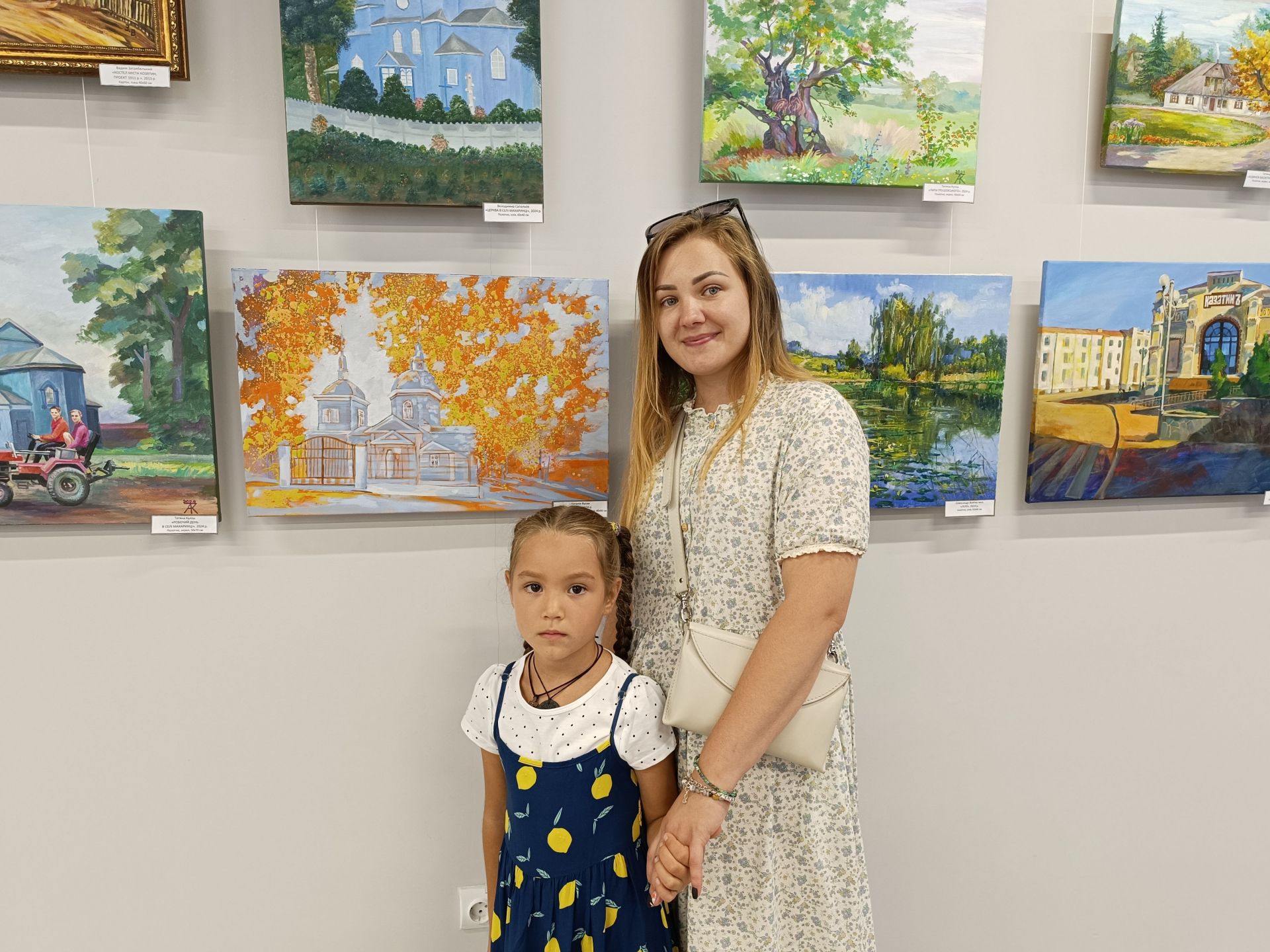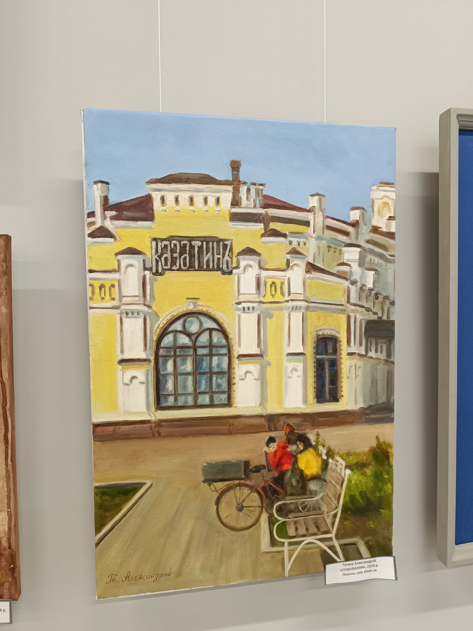 — Наша громада славиться не лише гарними пейзажами, а й старовинними пам’ятками архітектури, — каже ведуча Ольга Безпалько. — Їх багато фотографують, вони досить популярні за межами нашого міста, але митці в кожну картину, яку створювали, вдихнули життя, сенси. Кожна картина — це ніби портал в інший вимір. Вокзал, де на Київській платформі старий паротяг, а на Шепетівській — інтерсіті. Козятинські фонтани, яких давно вже немає, але вони ожили на полотні.