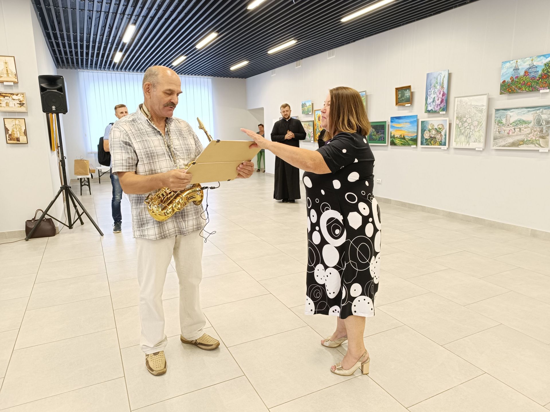 Учасників пленеру нагородили сертифікатами та сувенірами. Наостанок гостей виставки чекав музичний подарунок від Федора Бережнюка, який зіграв на саксофоні.