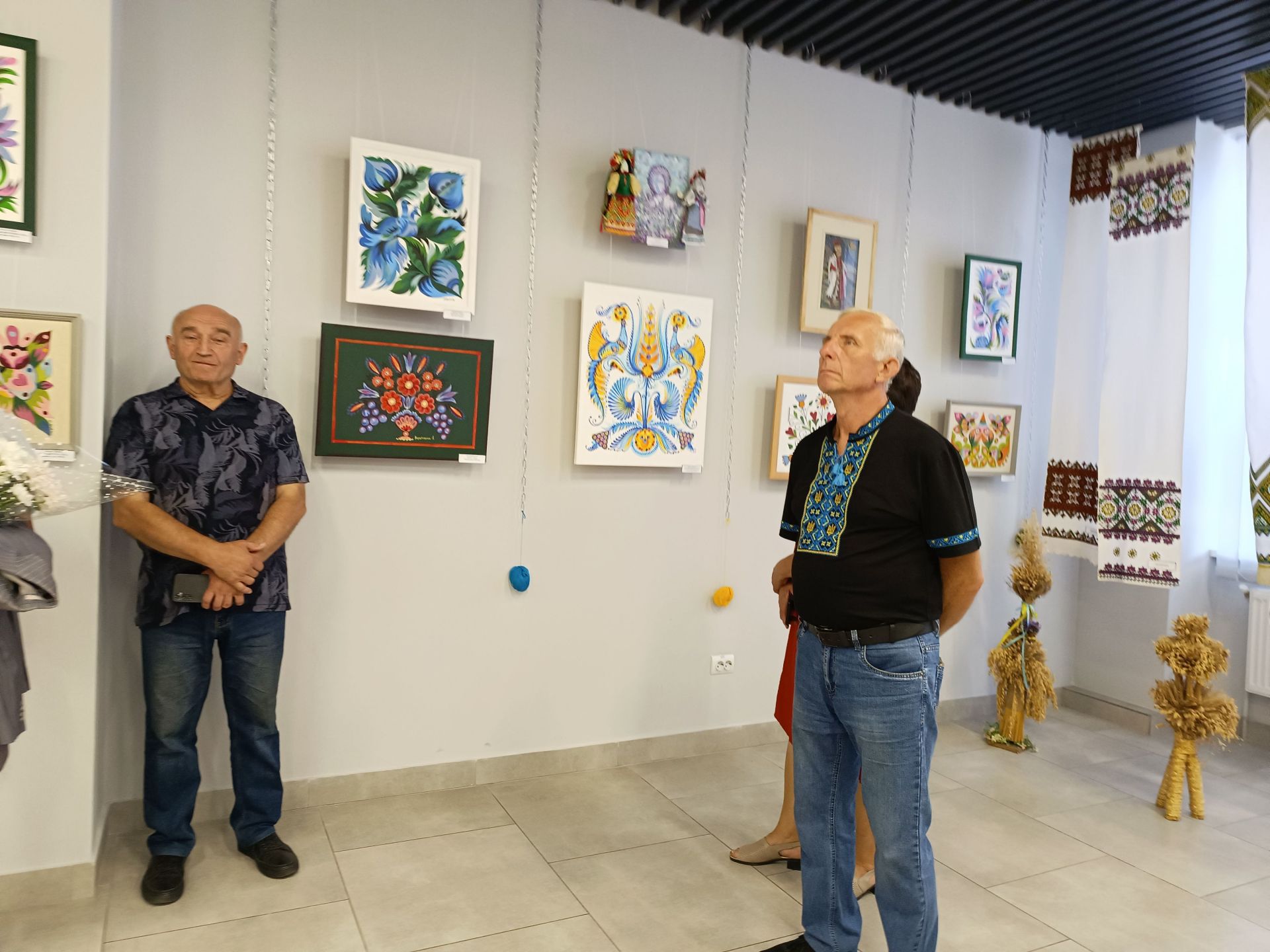 Окремим блоком виставили роботи, на яких художники зобразили мотиви Самчиківського та Придніпровського розпису і розпису за мотивами Бубнівської кераміки. На одному з полотен традиційний український оберіг — мотанка. Обабіч картини — дві мотані ляльки. На стіні навпроти — триптих, на якому козятинський вокзал, вежа та костел, написані кавою. Також до експозиції увійшли роботи проєкту «Я люблю Козятин», реалізованого два роки тому. Це картина-пазл, що складається із дев’яти окремих полотен, на яких знакові куточки Козятина, об’єднані картою нашого міста.