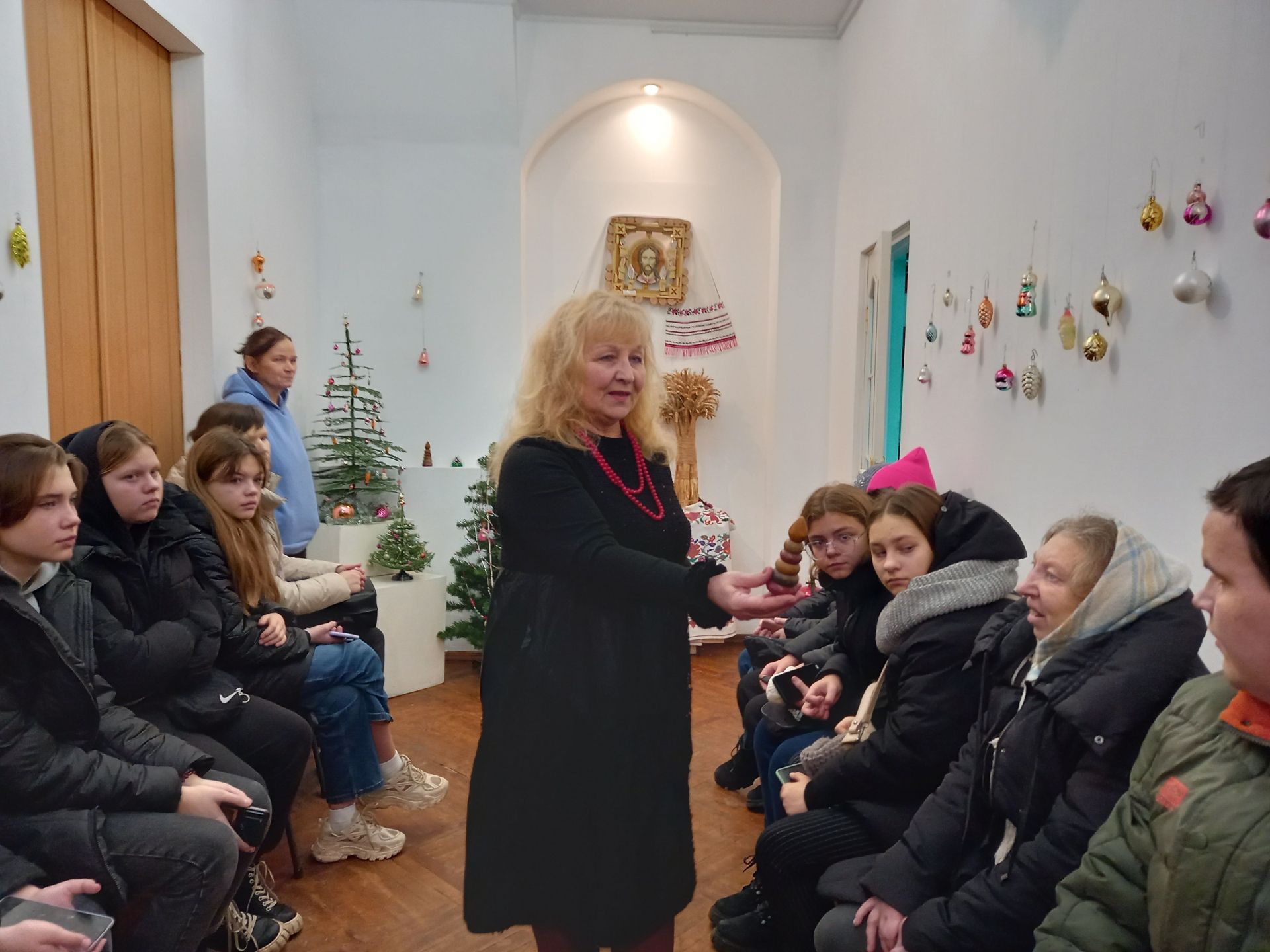— Хочу вам показати іграшку з мого дитинства. У 60-их роках було дуже багато сніжинок із личками. Всередині личка набита тирса. А як ви прикрашали в дитинстві ялинки? — запитала Лілія Макаревич гостей виставки.