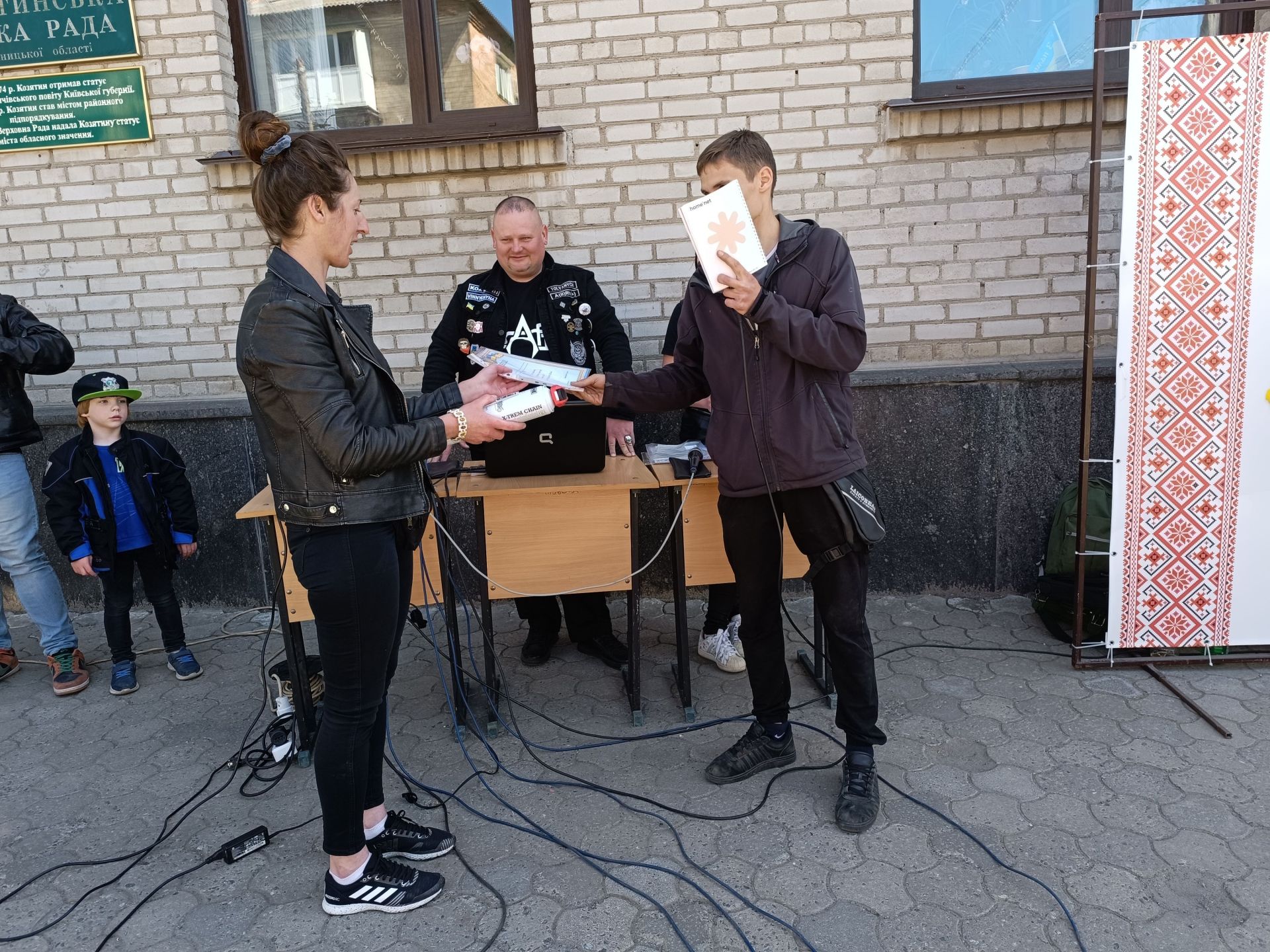— Сьогодні ми від фонду «Бойовий волонтер України» збираємо гроші для козятинського військового, який воює на Лиманському напрямку, — каже Гайдучок. — Йому потрібні шолом, активні вуха і тактичні окуляри. Якщо ми зберемо більше коштів, ніж потрібно, вони ще підуть на 80 Десантно-штурмову бригаду на пікап. Тому, друзі, підходимо і робимо гарну справу разом.
