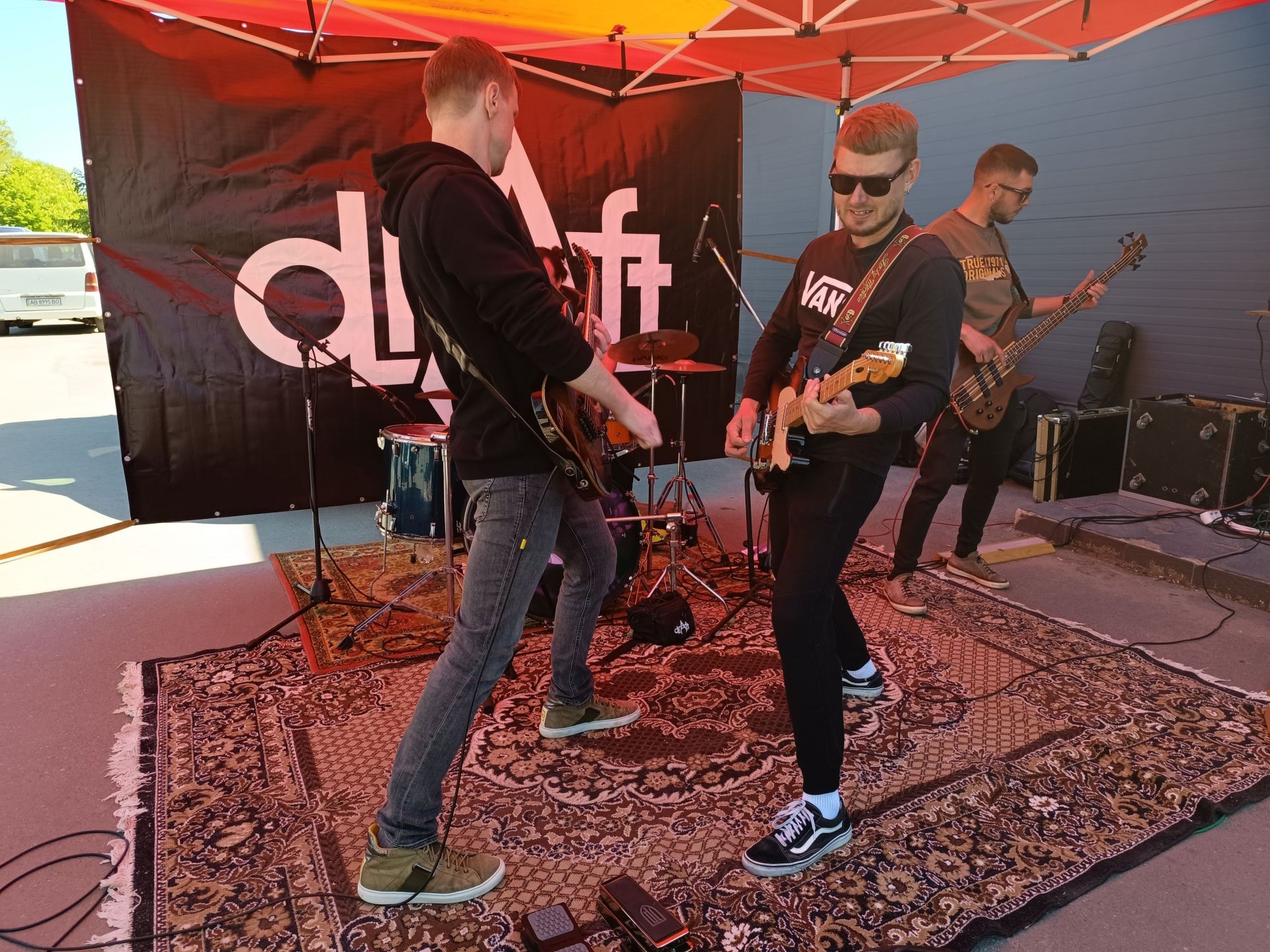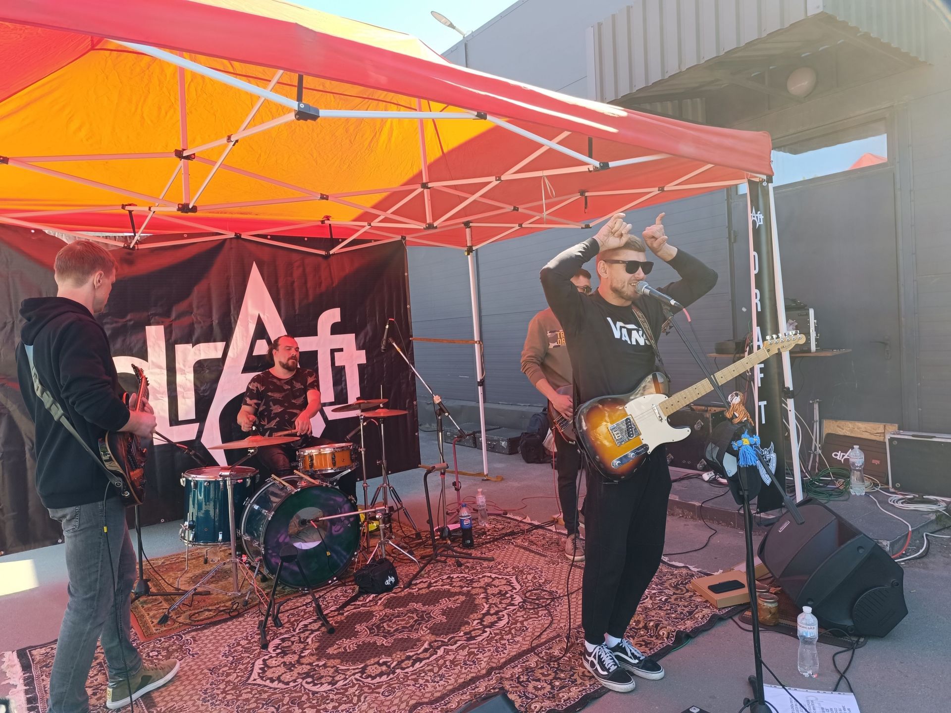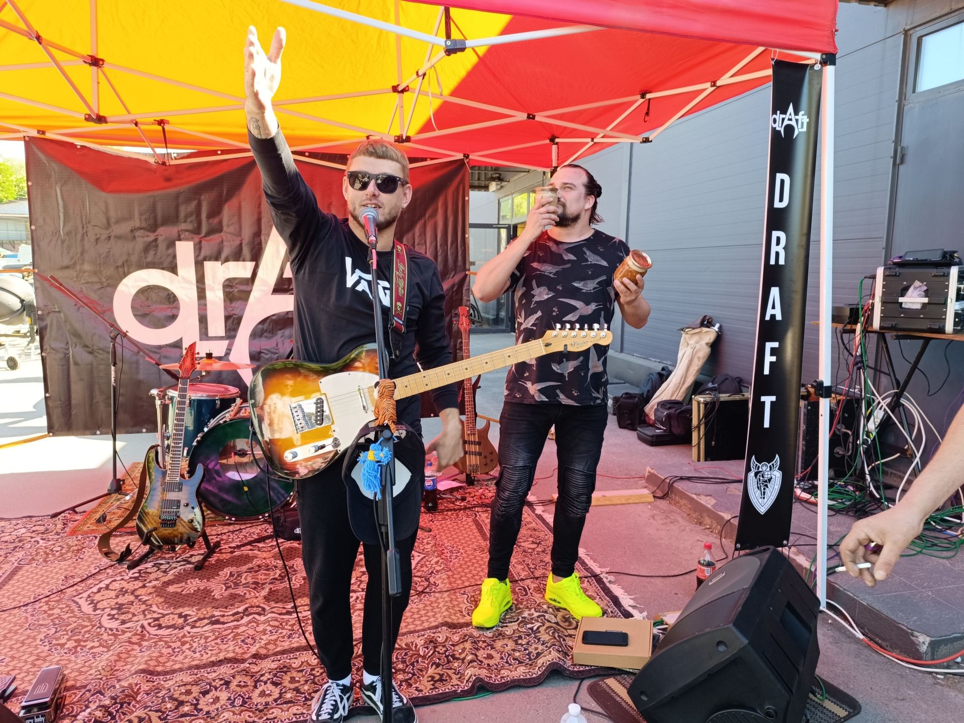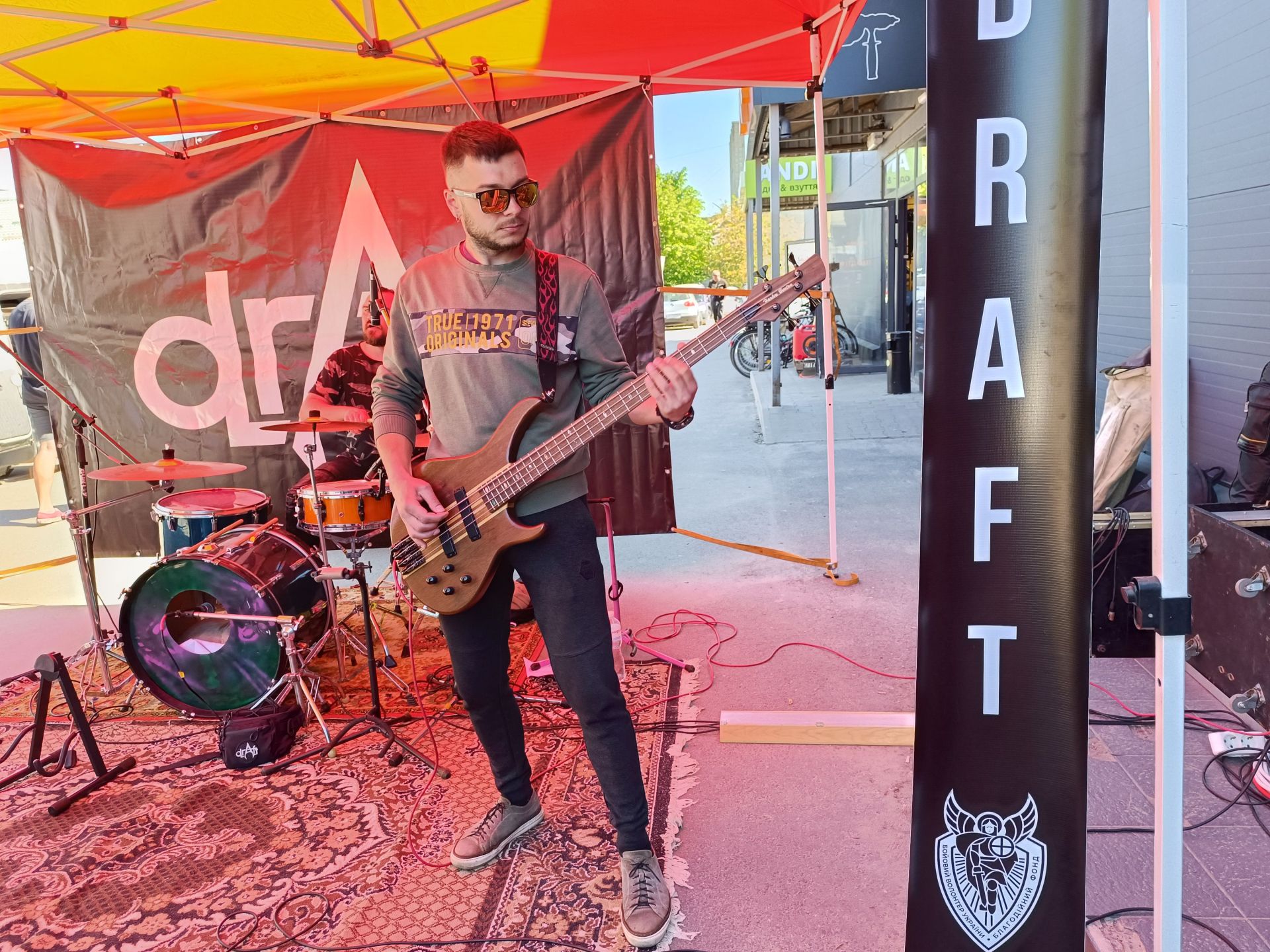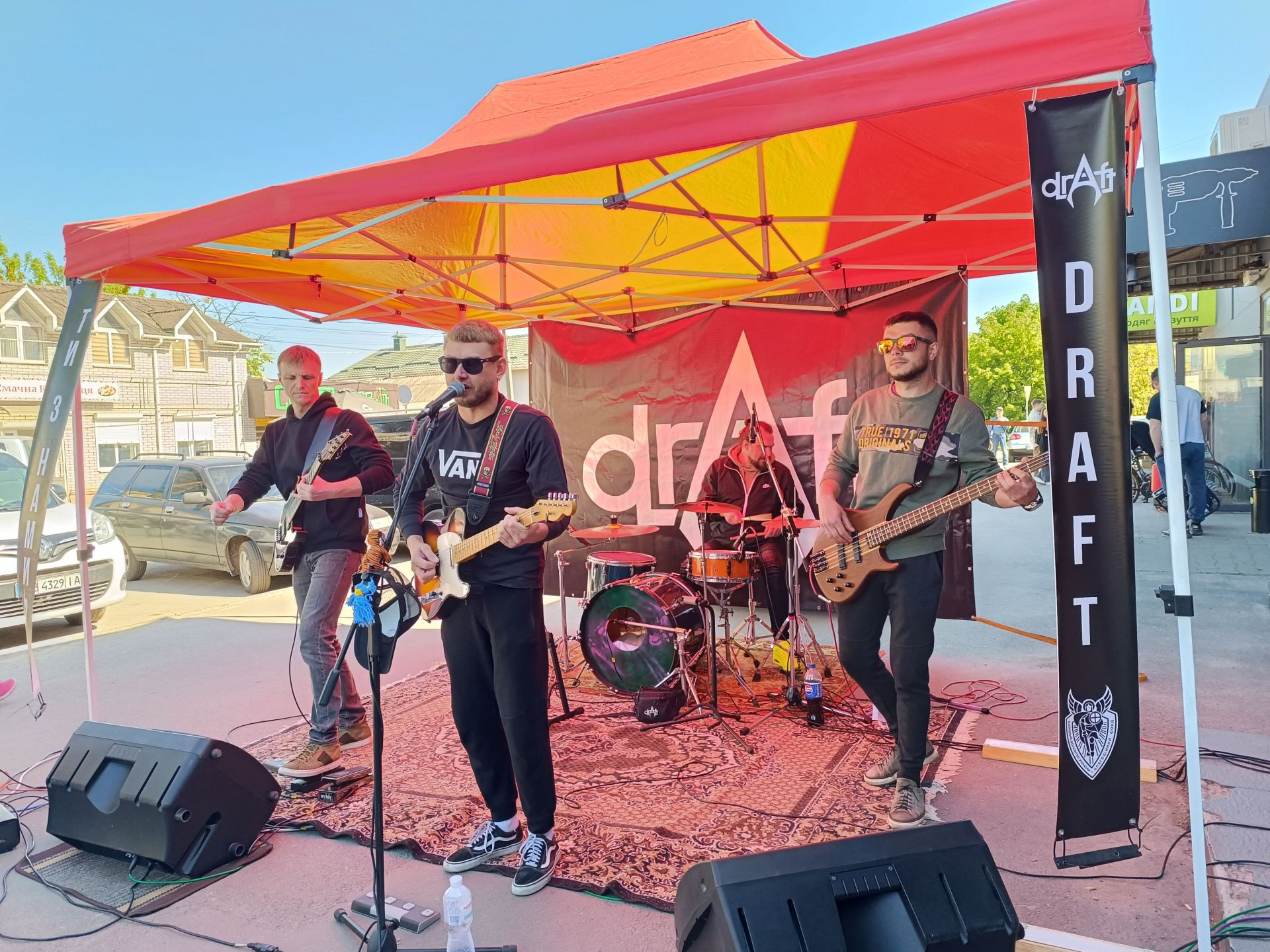 Субота, 4 травня. На годиннику майже 10 ранку. Територія біля магазину «Фора» перетворилася на імпровізовану сцену. Лунають гітари та барабани. Учасники гурту «Draft» перевіряють звук. За кілька хвилин розпочнеться благодійний концерт, а люди, що проходять повз, вже починають донатити у «скриньки» для збору коштів — чохол для барабану та тубус від гранатомета.