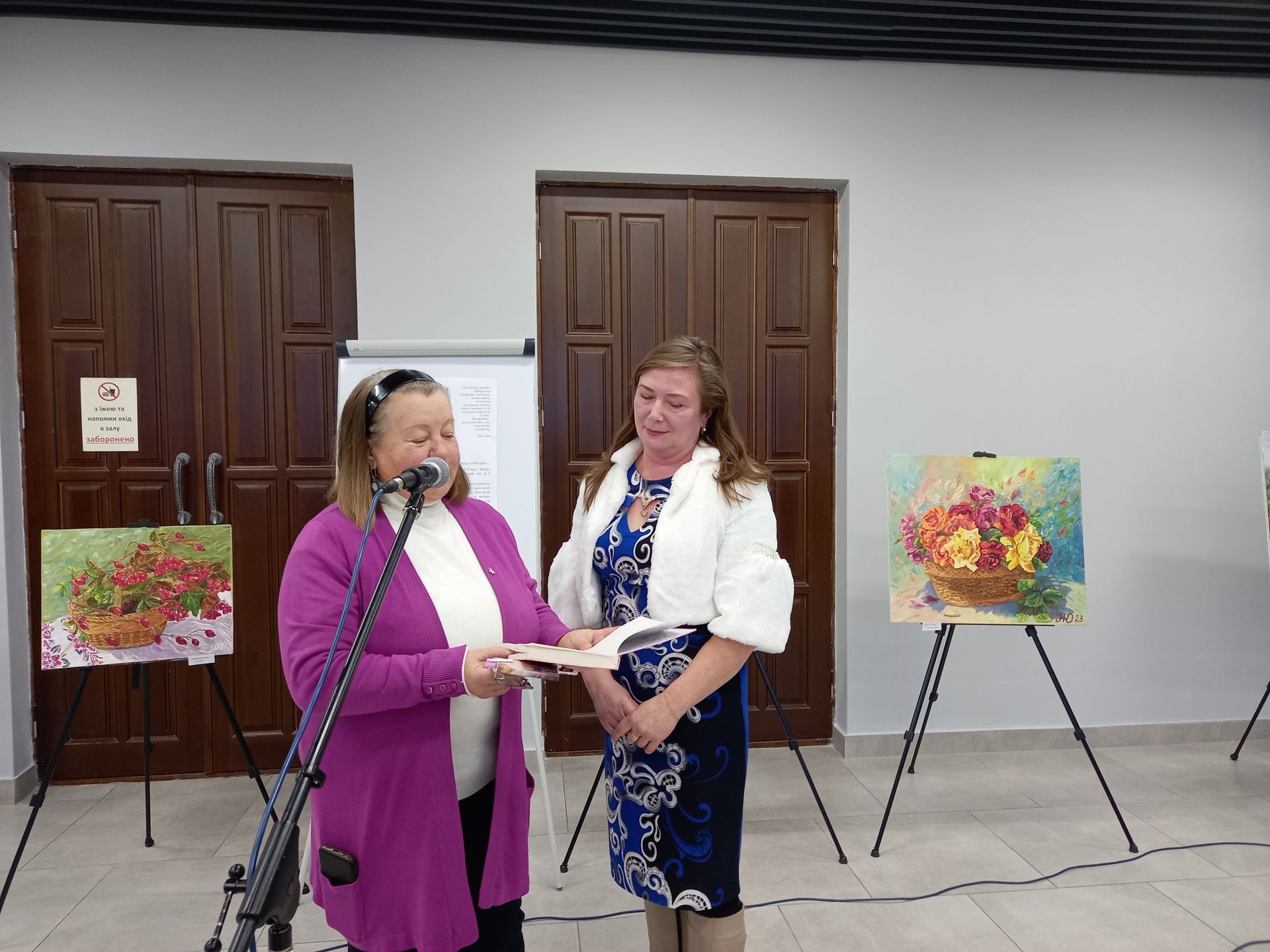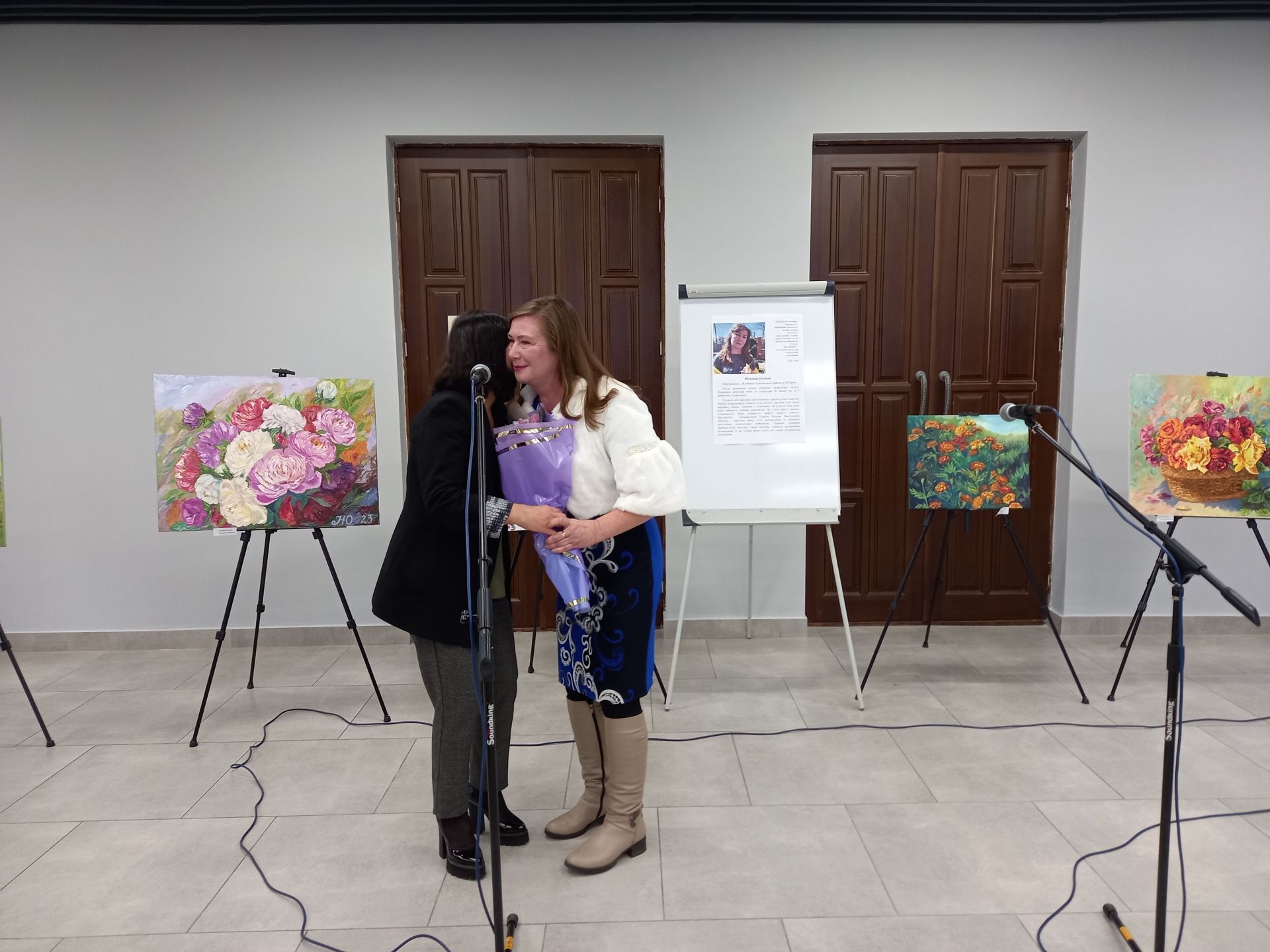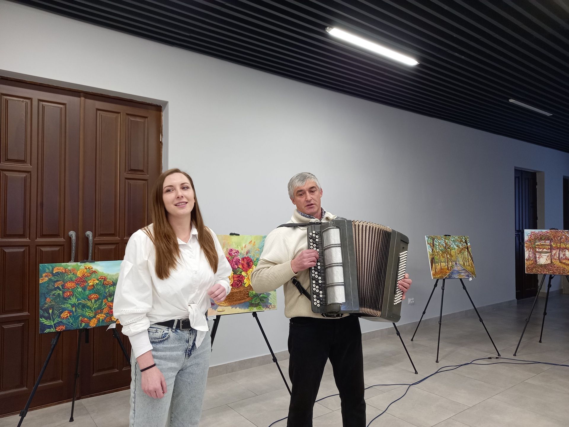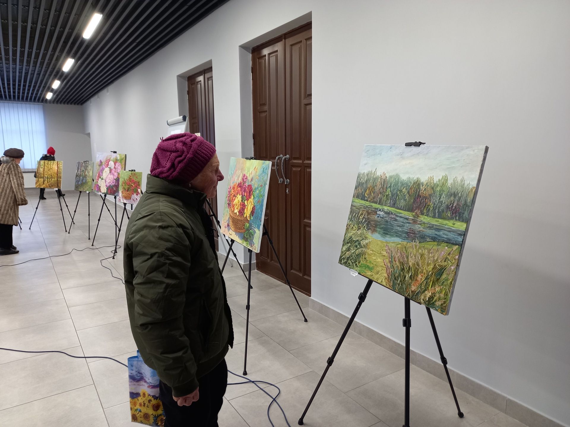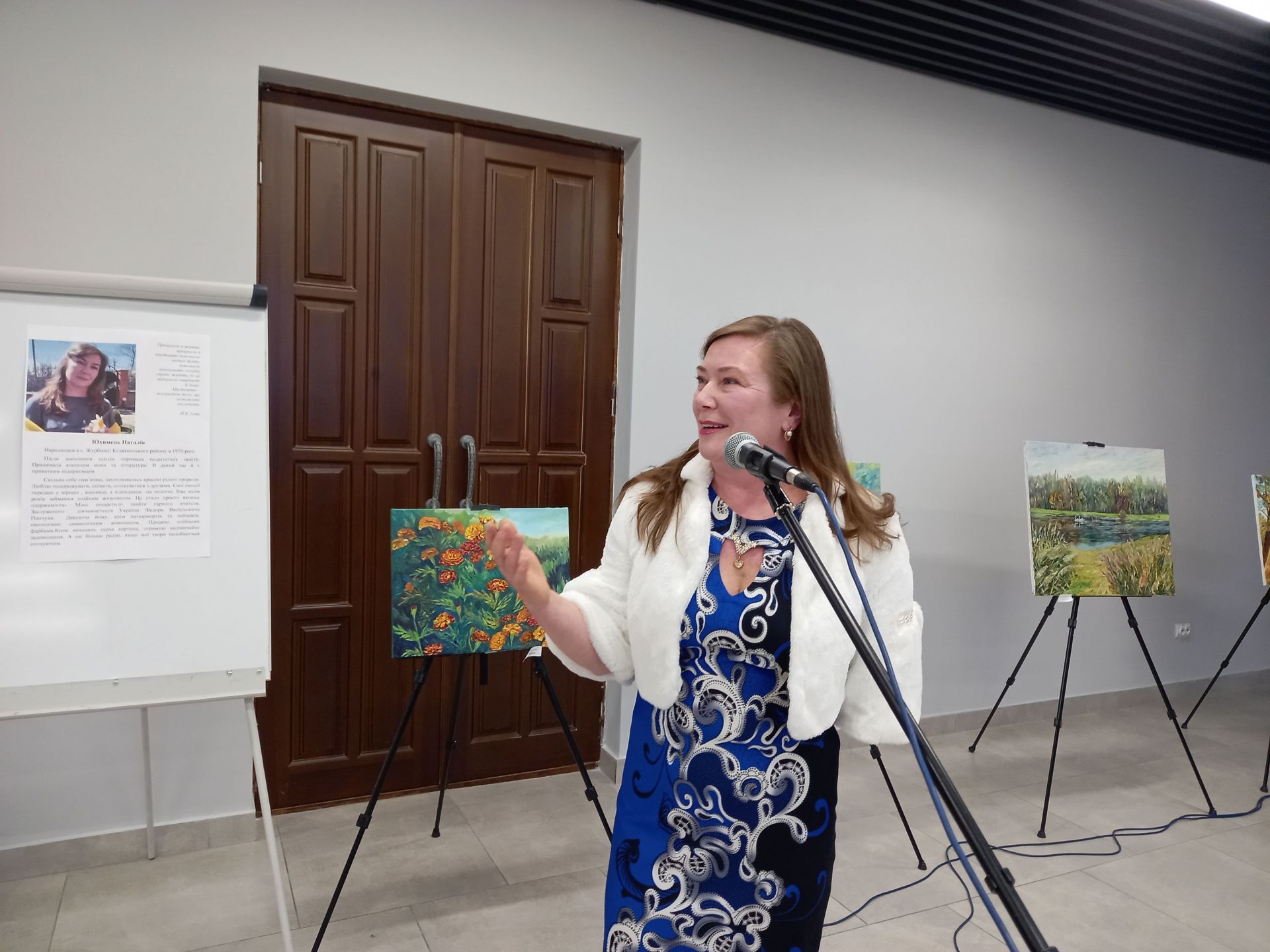 Чотирнадцять живописних полотен художниці експонували у фойє будинку культури. Це — пейзажі та натюрморти. Усі роботи — теплі та барвисті. Тож і виставку назвали «Сонячні барви».