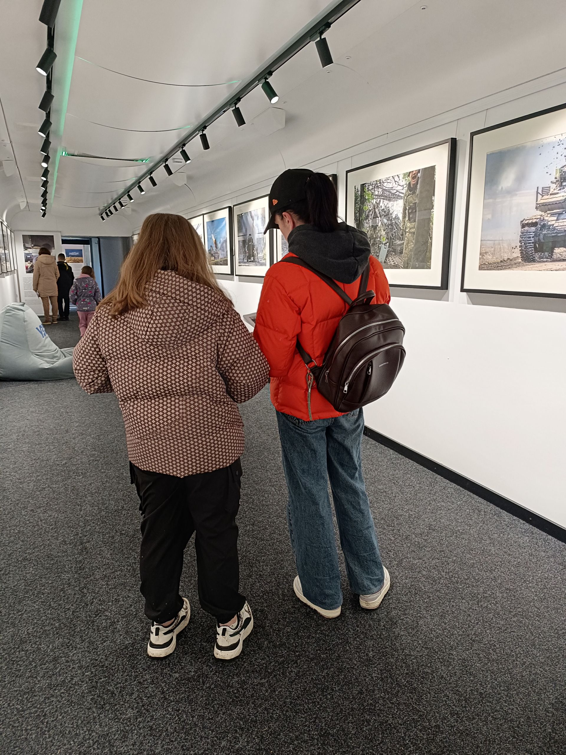 — Тут дуже багато світлин наших військових, які зараз воюють. За кожним фото стоїть історія окремої людини. І з кожної світлини на нас кричить війна. Тут є фото дівчинки, не пам'ятаю, скільки точно їй років, чи десять, чи дванадцять. Вона в шапочці. Це фотографія з міста Сум. Як подивишся на цю дитину, скажеш, що по очам їй років тридцять, не менше, — каже Ольга Рандоха, а на очі їй навертаються сльози.
