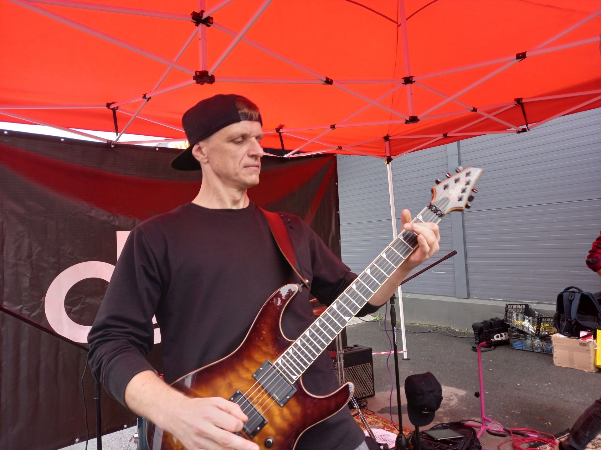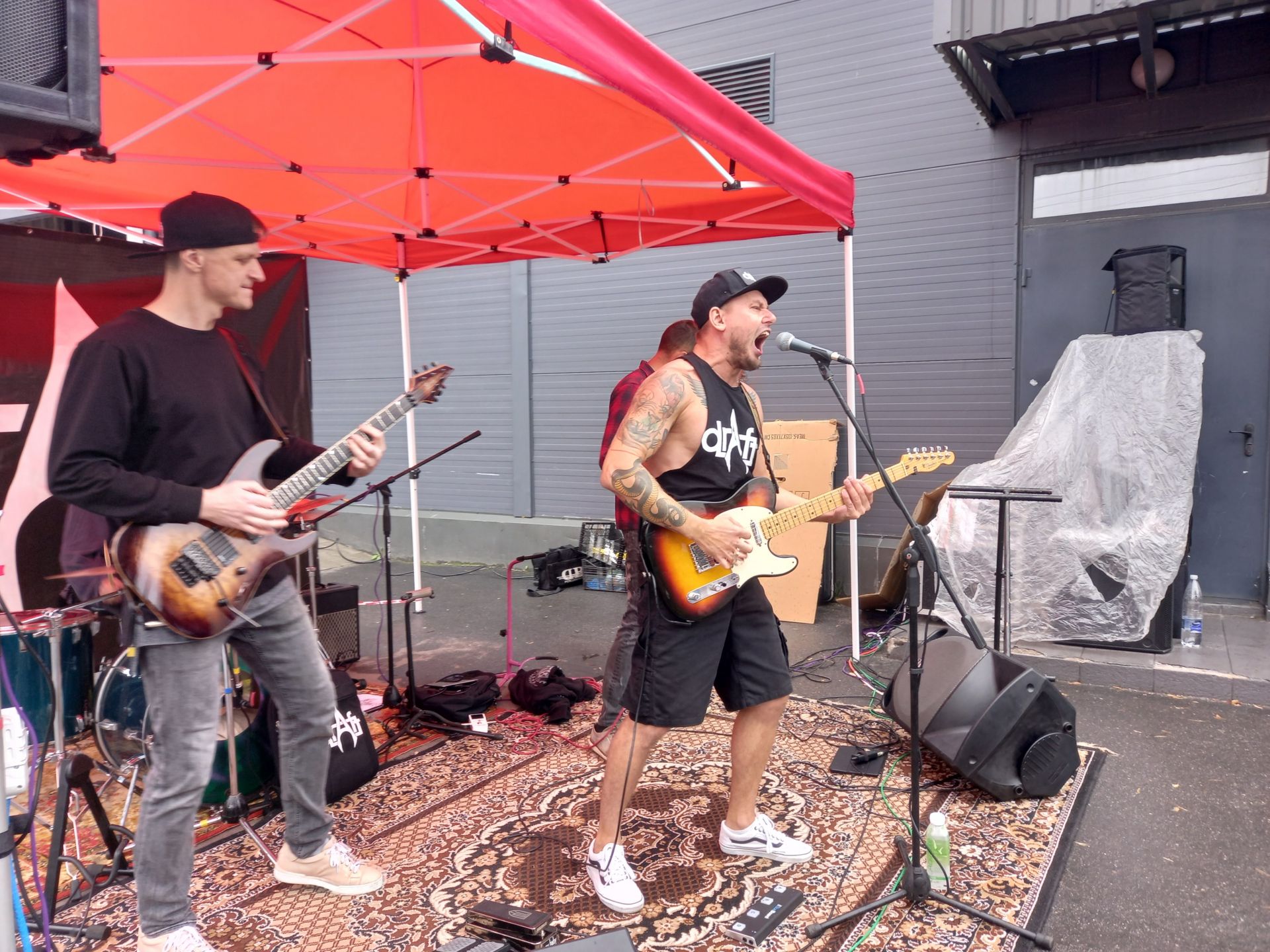 — Друзі, ми закінчили на сьогодні благодійний концерт для наших хлопців із 59 окремої мотопіхотної бригади і поки ми будемо збиратися, ми скриню для донатів залишимо, — сказав Сергій Гайдучок, а тоді повернувся до барабанщика.Настала кількасекундна пауза, після чого Сергій продовжив, — Іллюха хоче ще одну пісню зіграти.
