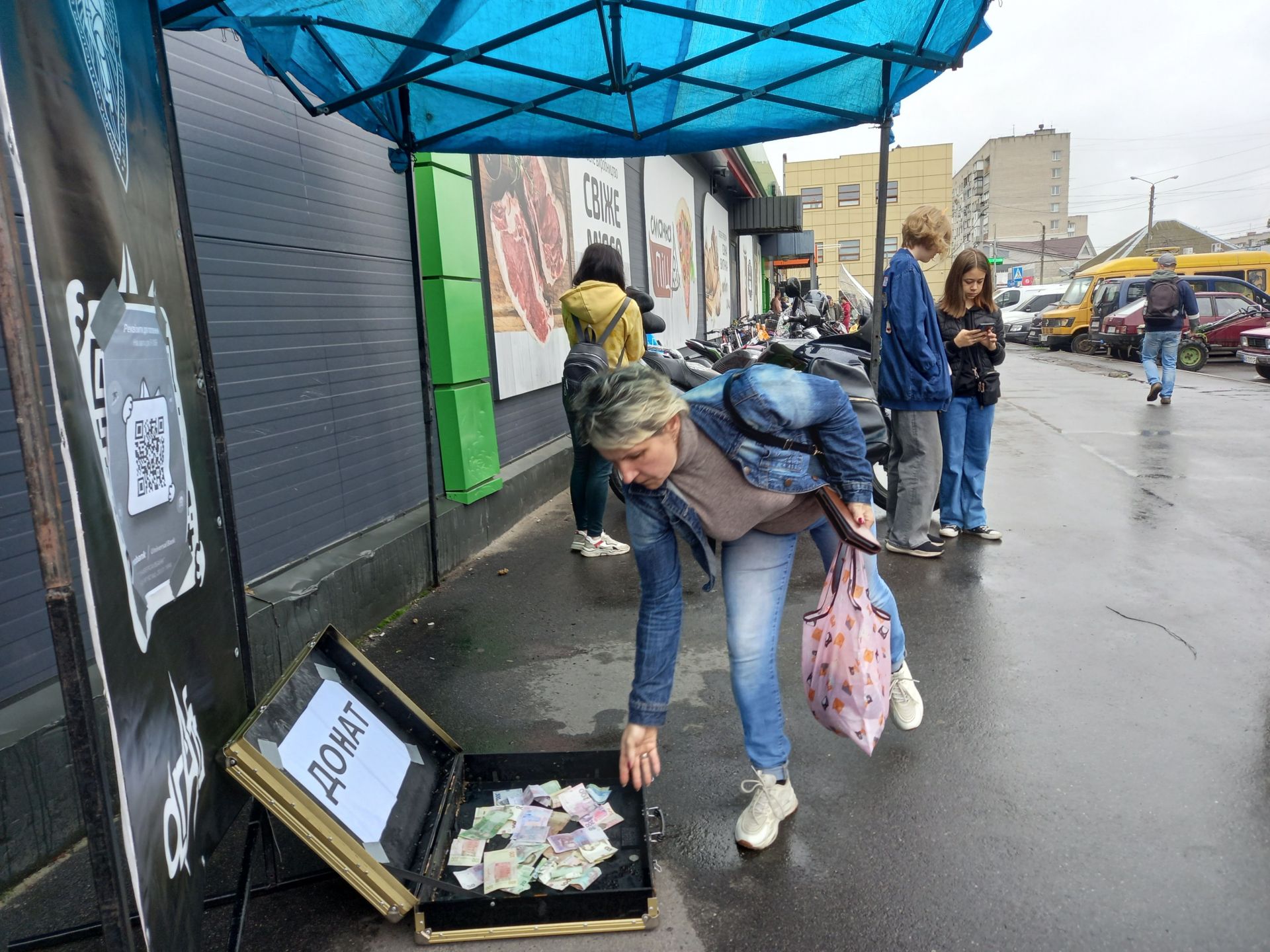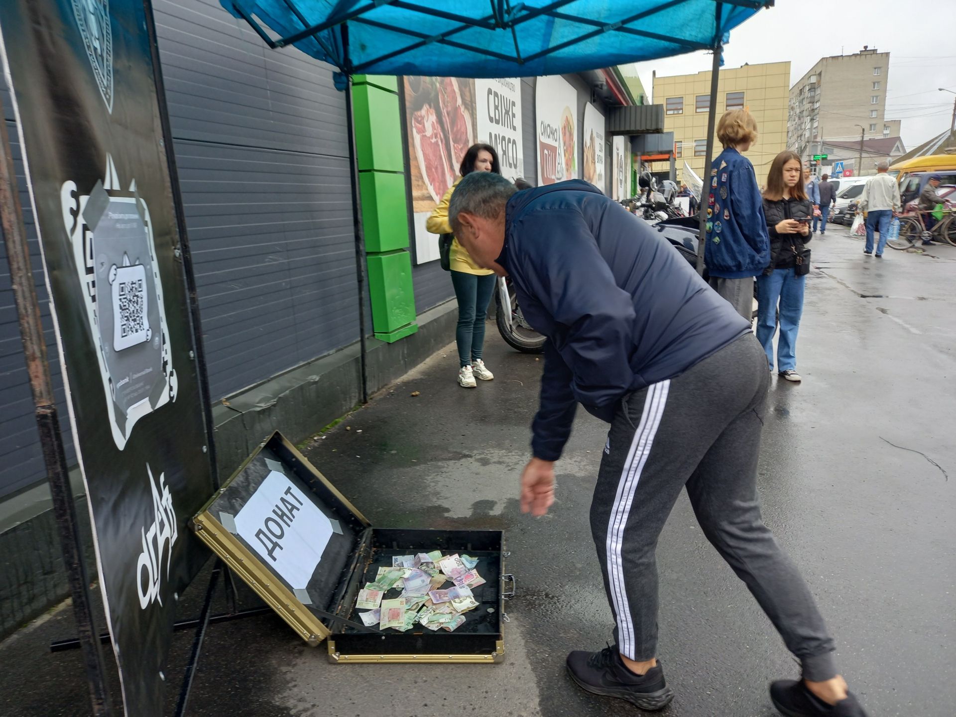 Поки хлопці грали, козятинчани продовжували донатити. Гроші кидали не лише ті, хто прийшов послухати музику, а й звичайні перехожі. Через те, що дехто не міг спершу знайти валізу із донатами, її переставили ближче до імпровізованої сцени.