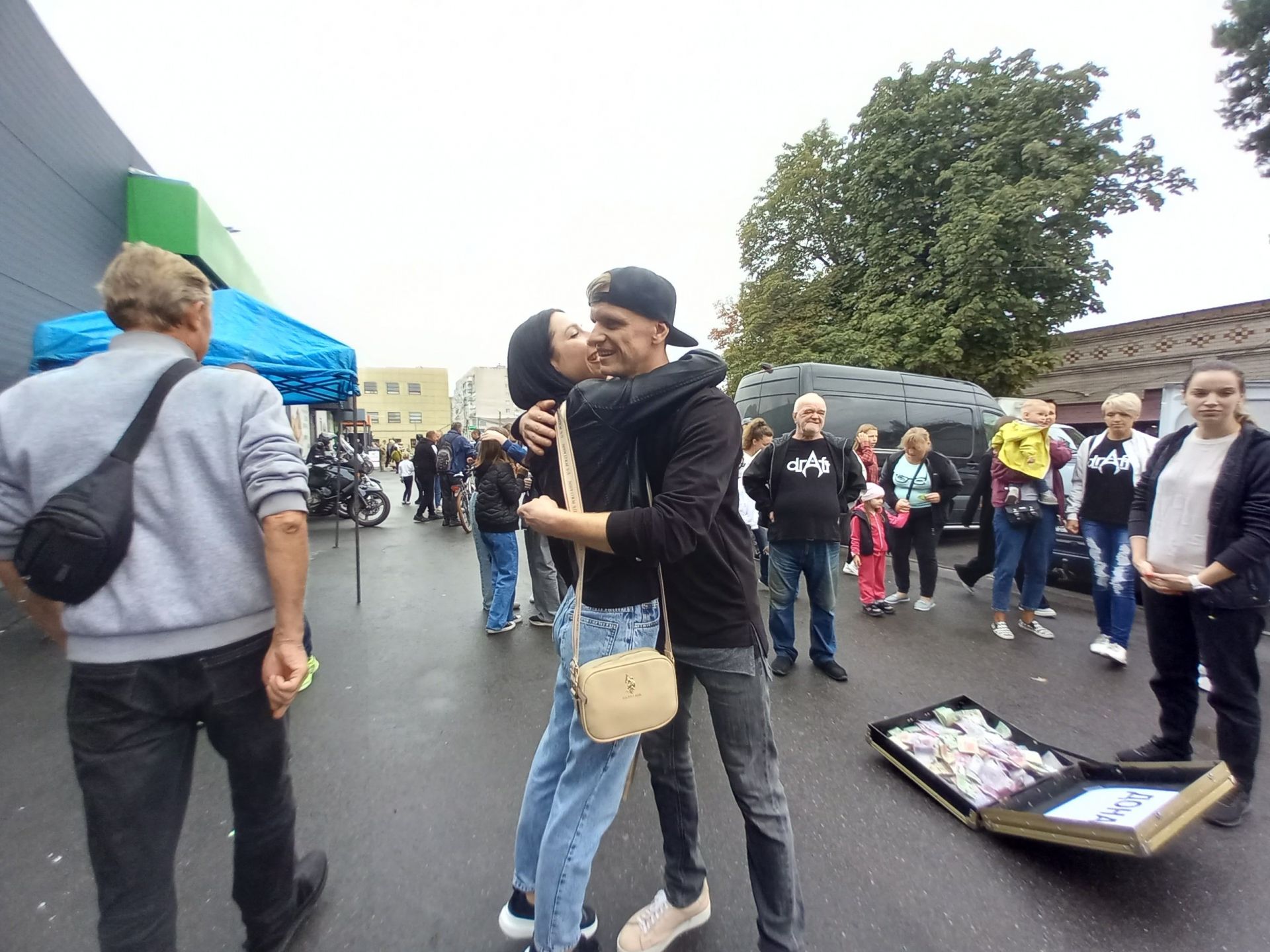 Замість звичної скриньки — велика валіза з табличкою «Донат». Її спершу поставили у палатці ліворуч від імпровізованої сцени. Поки Сергій Гайдучок, Сергій Нечай, Богдан Ільчук та Ілля Мхеідзе налаштовували інструменти і перевіряли звук, козятинчани вже почали кидати до валізи гроші.