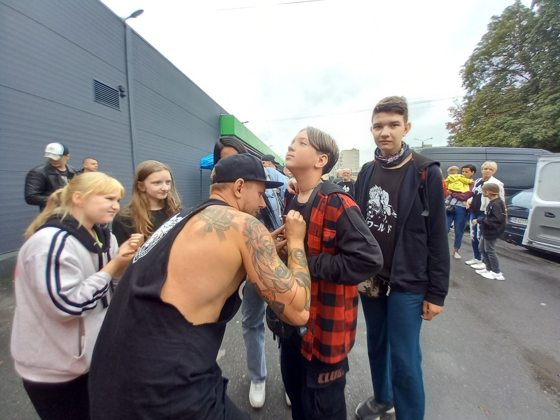 Чимало людей, які прийшли на концерт, одягнули футболки з логотипом гурту. Прямісінько перед імпровізованою сценою стояли Ліза з подругами Настею та Каріною. Дівчата знають тексти усіх пісень, тому активно підспівували.