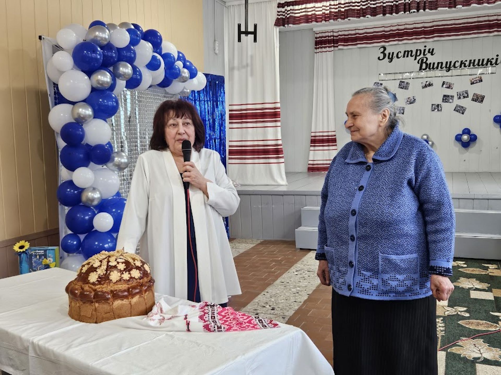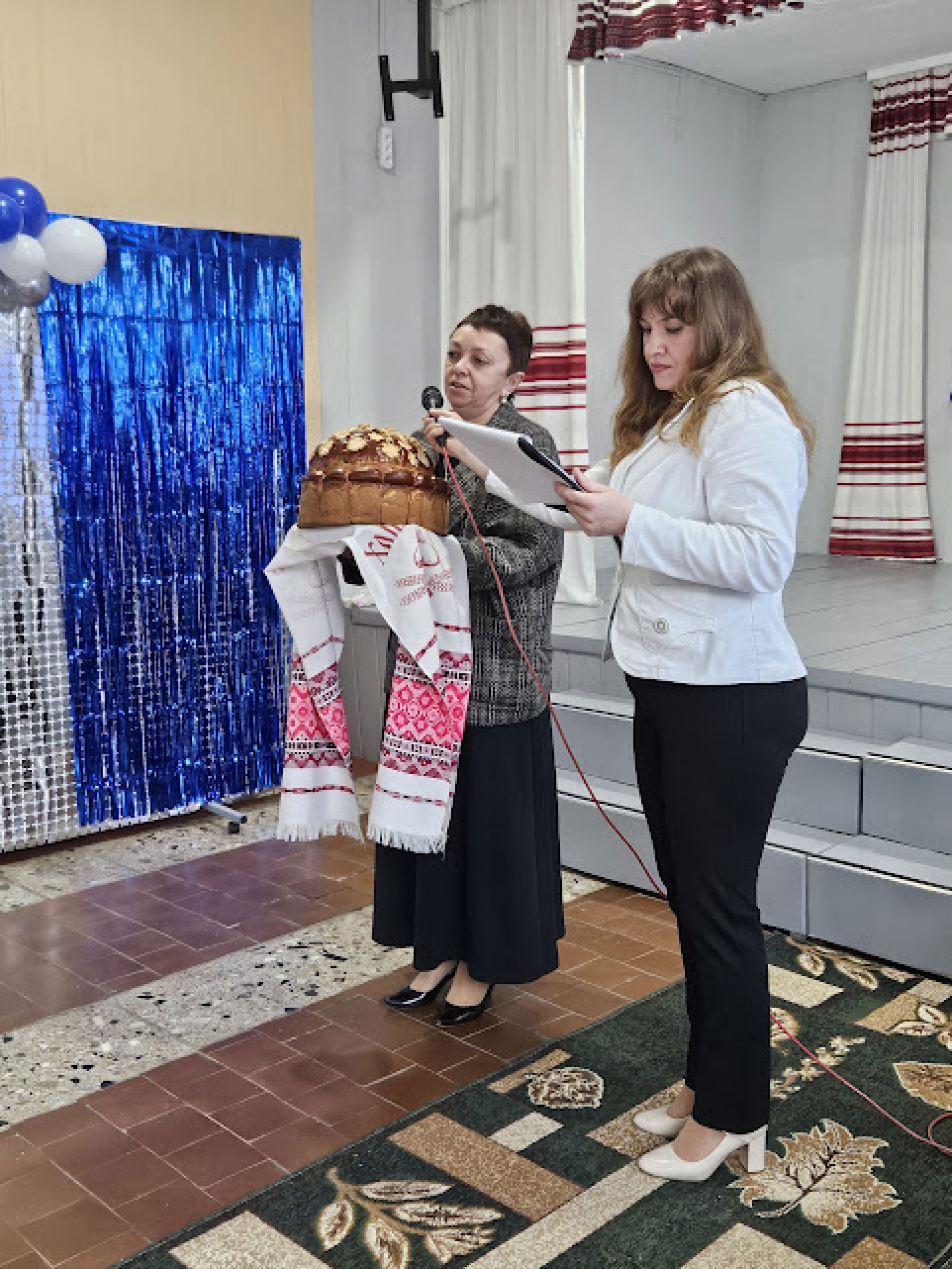 Із привітальним словом до присутніх гостей звернулась директор навчального закладу Світлана Біла. Хліб-сіль із рук в руки Світлана Олександрівна передала випускникам, які закінчили школу 35 років тому.