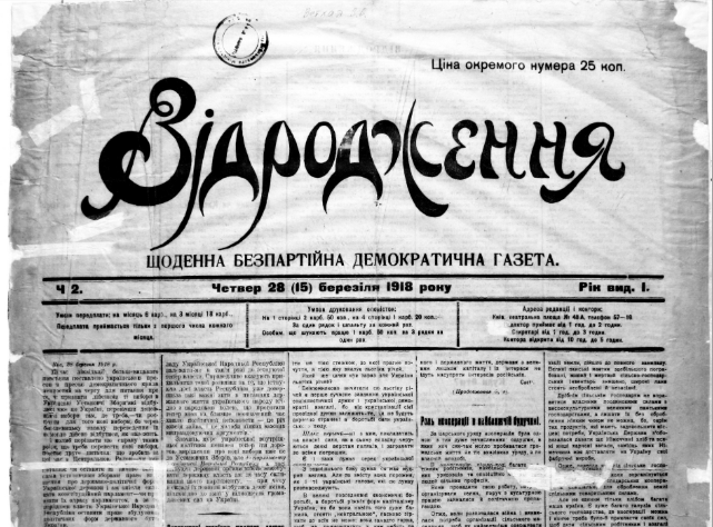 «Відродження» — щоденна безпартійна демократична газета. Примірник коштував 25 копійок.