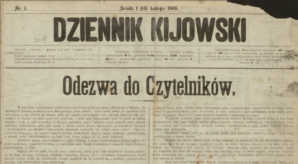 У списку видань, які читали козятинці, були й іншомовні видання. Серед них — «Dziennik Kijowski» (Журнал київський). Це польська газета, яка виходила у Києві. Її заснував дворянин Володимир Грохольський, котрому належав Грицівський палац, що на Хмельниччині. Володимир Грохольський був не лише громадським діячем. Хоча й мав юридичну освіту, його сферою діяльності було сільське господарство. Він був віце-головою Київського сільськогосподарського товариства.