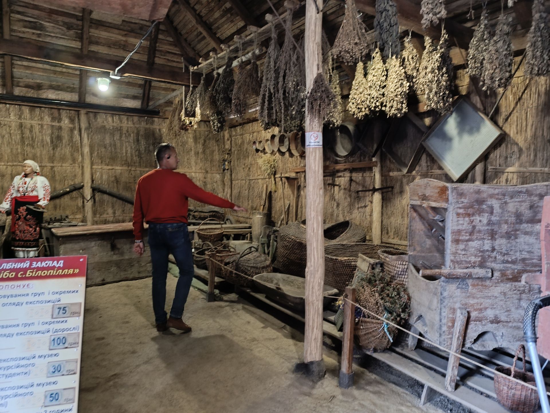 — Хотіли прибрати вітряк, але це не можна було робити, тому що він на всіх військових картах був як геодезична точка прив'язки, — продовжує Рибачук. — Навіть коли проводили розпаювання земель, відрахунок вели від вітряка. За ініціативи Анастасії Бойко, вчительки історії, яка на той момент була вже на пенсії, створили цей музей. Посприяв у цьому тодішній голова райкому партії Геннадій Дубенков. Анастасія Бойко стала першим директором музею. Експонати збирали звідусіль. У нас на території є дуплянки, наприклад, аж з-під Білорусі. Дуплянка — це старовинний вулик. Трактори — з Красівки. Це Житомирщина.