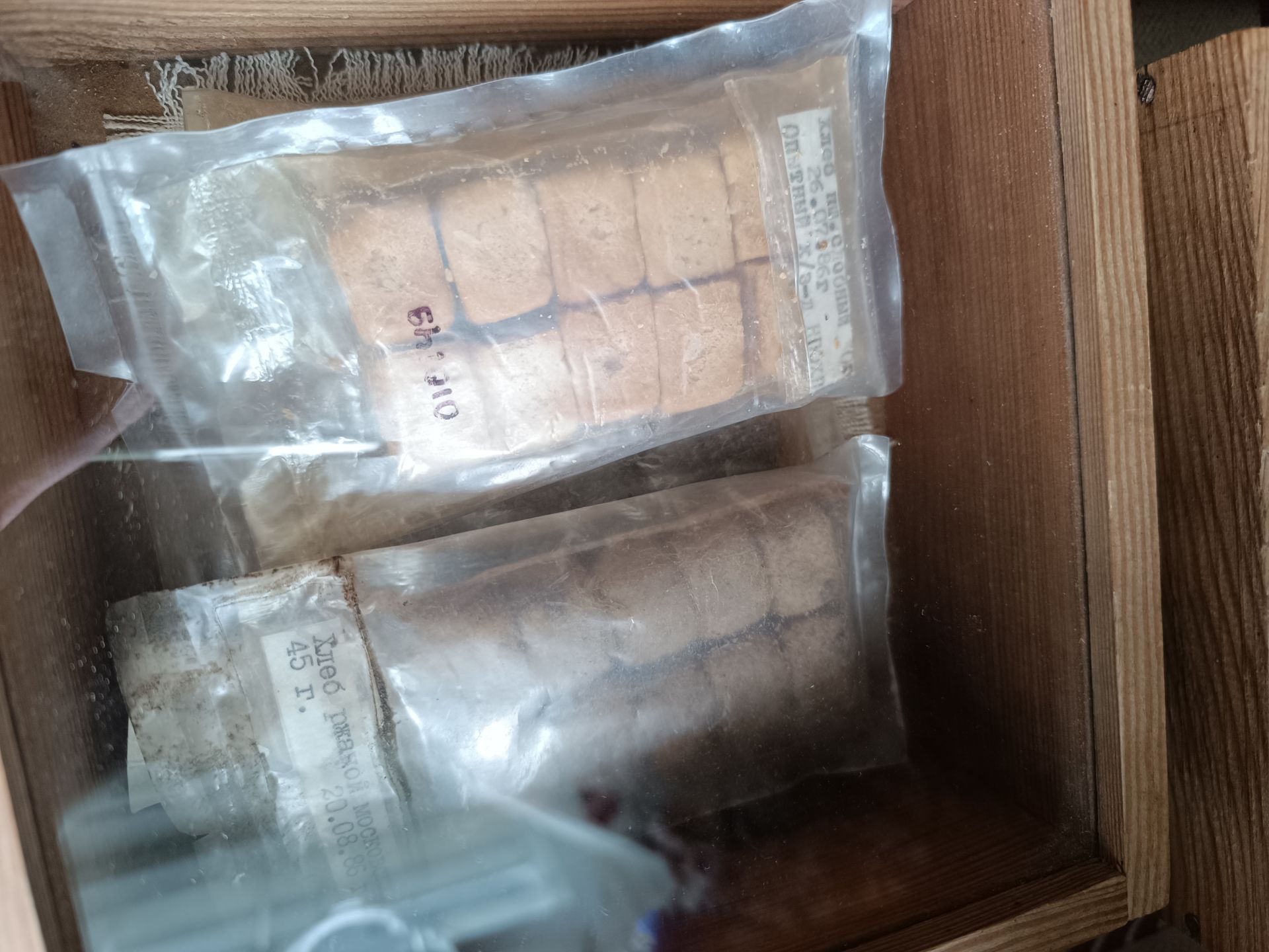 На старовинній скрині, яка майже ровесниця Козятина (скриня датується 1870 роком, а Козятин отримав статус містечка у 1874), невелика коробка. У ній зразки хліба періоду Другої світової війни, коли була блокада Ленінграду. А ще хліб космонавтів. Його особливість у тому, що він довго зберігає свіжість.
