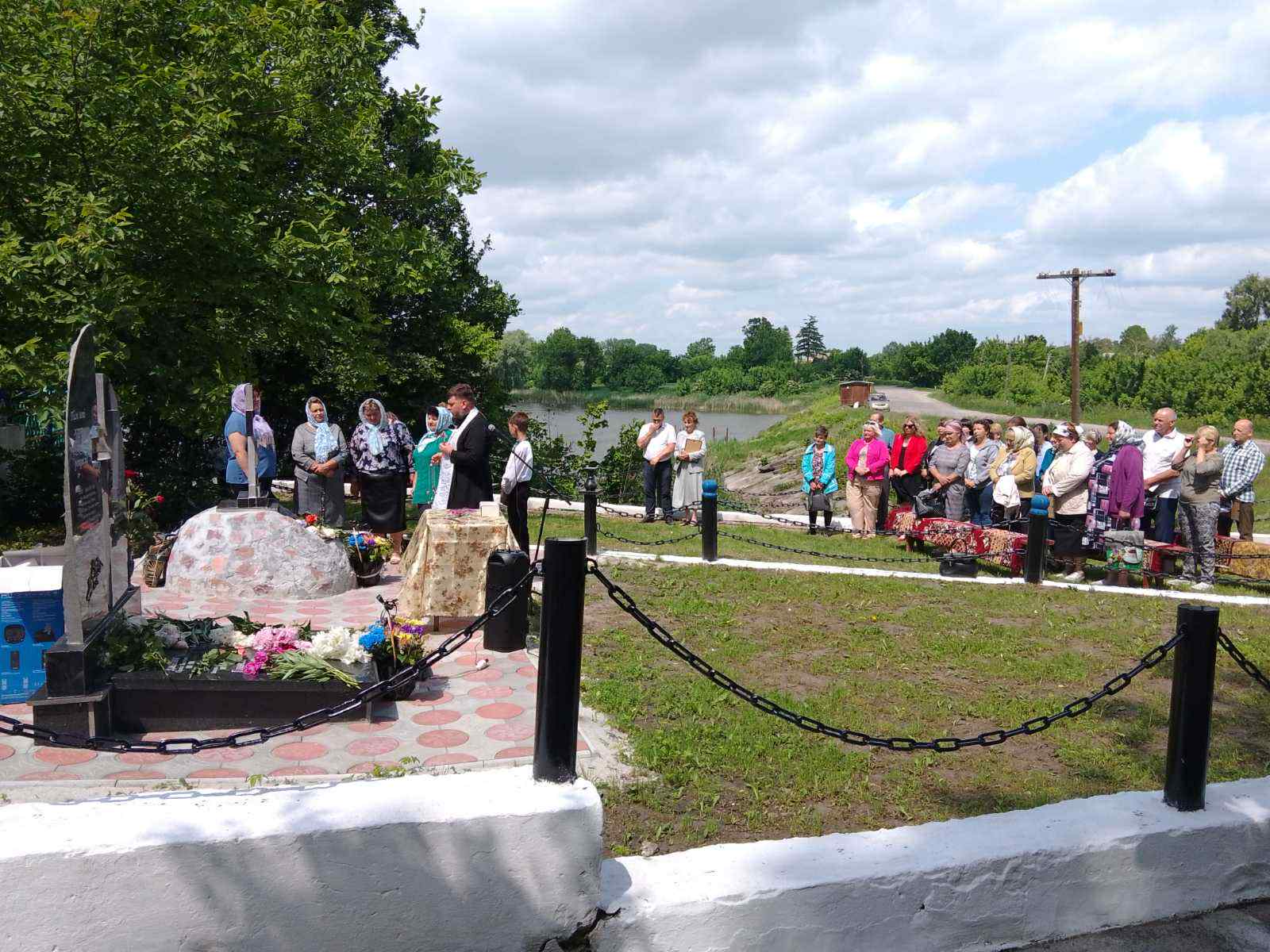 Освятив пам’ятні знаки благочинний Вінницько- Барської епархії митрофорний протоієрей Валерій Кушнір. З чого почалися пошукові роботи і встановлення пам’ятних знаків нам розповіла староста села Галина Корніюк.