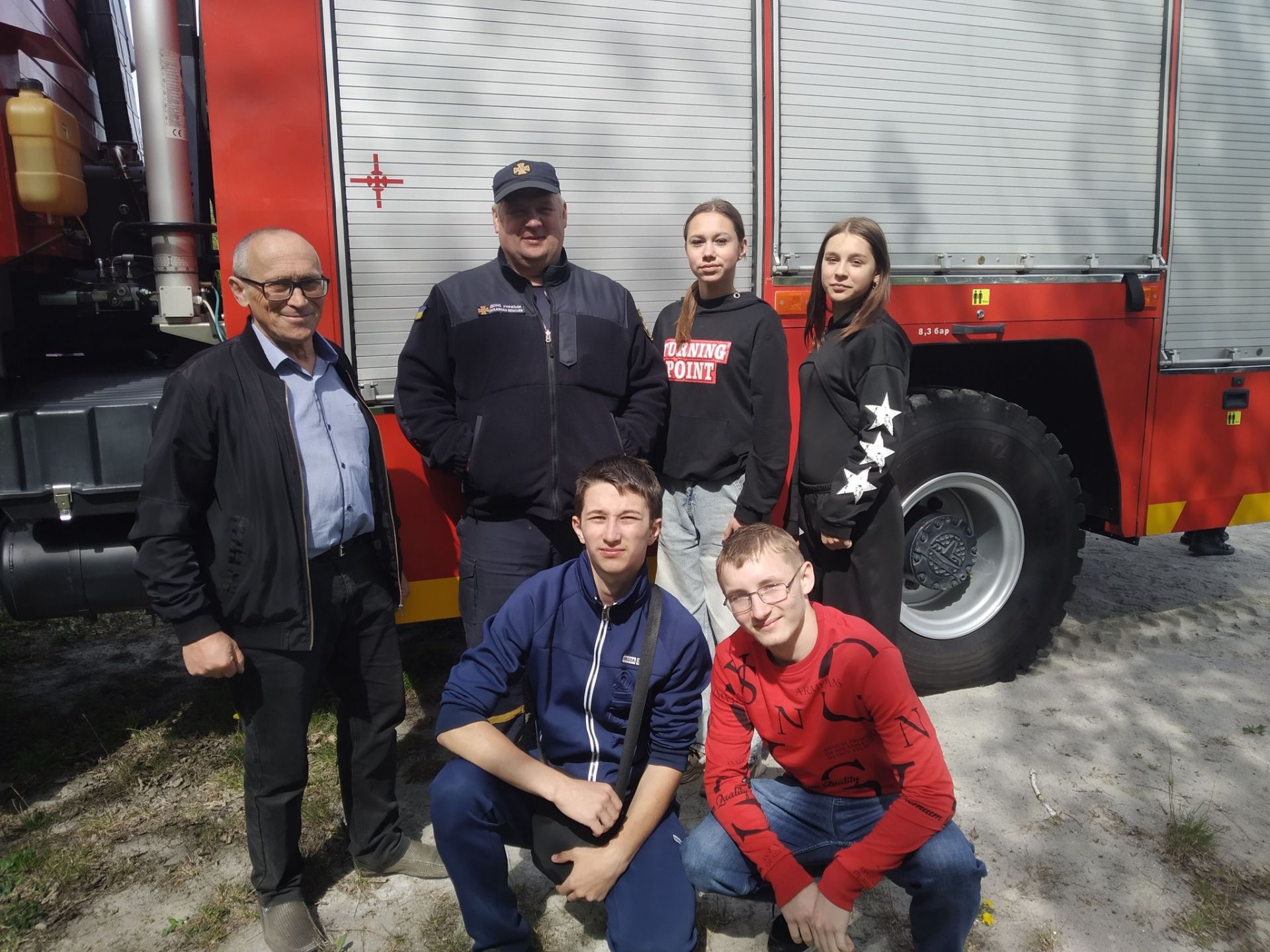 На завершення Дня ЦЗ учні гімназії зустрілися з працівниками 11-тої пожежно-рятувальної частини ДСНС України та представником поліції. Вони показали дітям будову спецавтомобіля, його оснащення та пояснили принципи роботи.