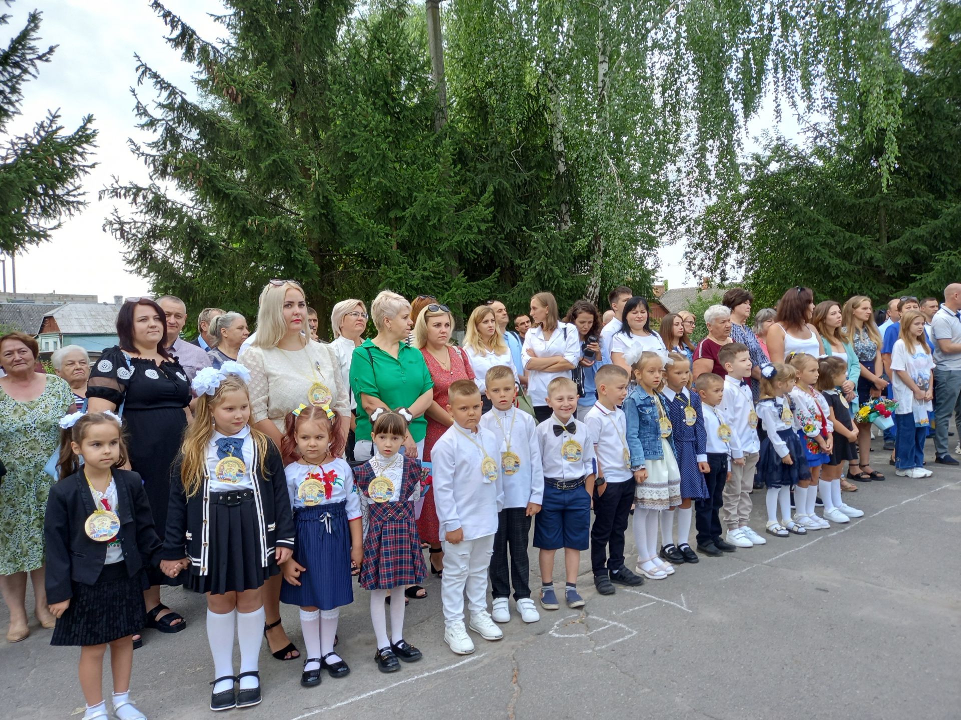 О дев’ятій ранку на подвір’ї ліцею зібралися першачки разом із батьками та рідними. Для юних ліцеїстів це перша в житті урочиста лінійка на День знань. Та цьогорічне перше вересня, на жаль, співпало із трагічною для нас датою — на війні загинули троє козятинчан.