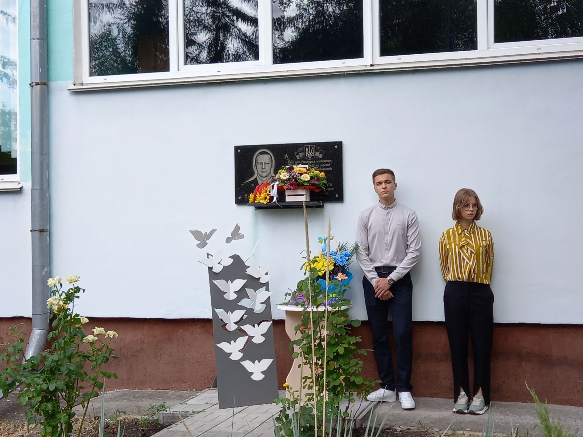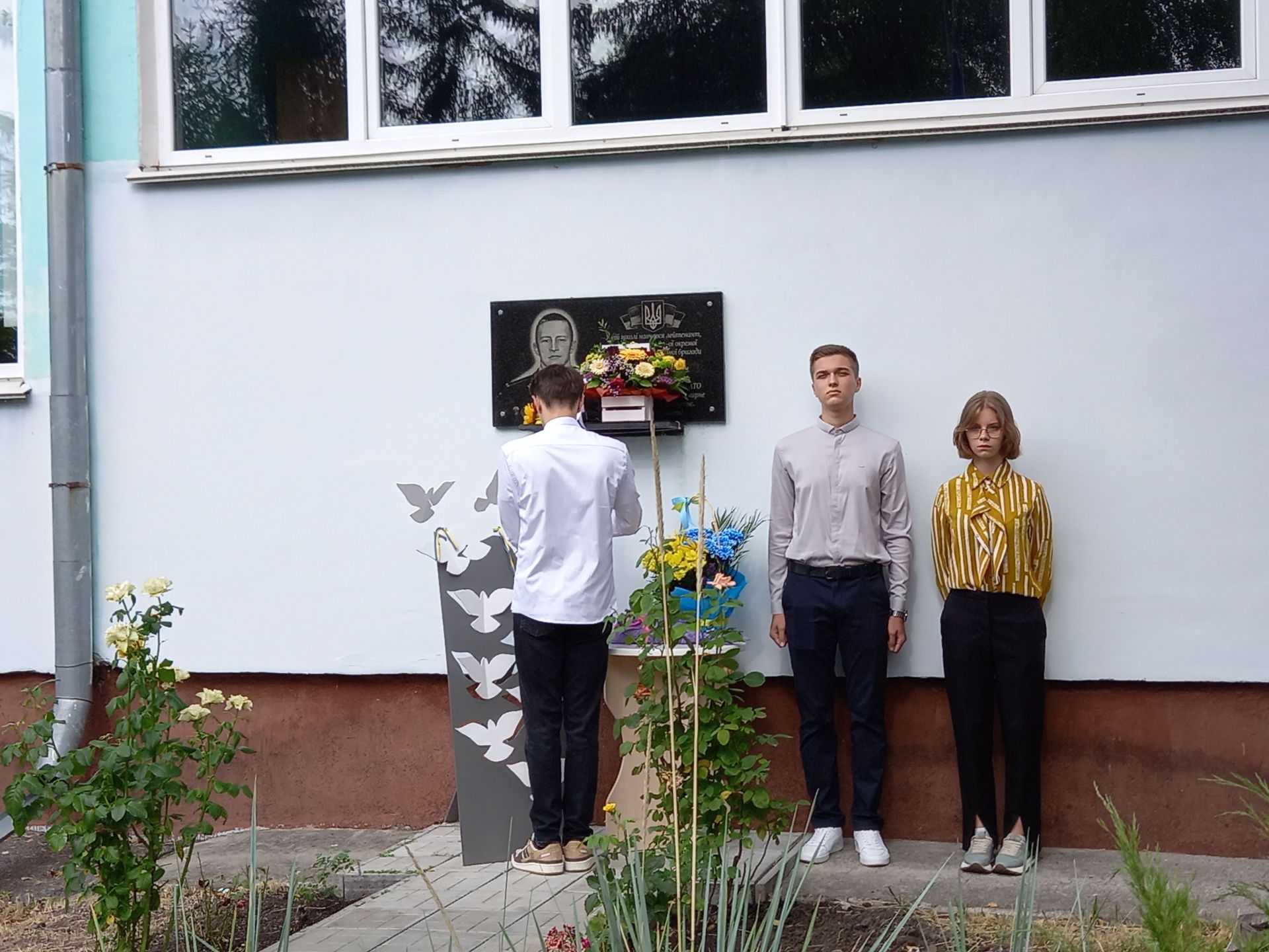 Серед випускників ліцею маємо семеро Героїв, яких ми втратили на війні. Це Віктор Ковальчук, В’ячеслав Франчук, Ігор Козяревич, Артур Турляк, Олександр Олейнічук, Роман Козак та Микола Жабінський. Пам’ять Героїв вшанували хвилиною мовчання. А потім старшокласники поклали квіти до меморіальної дошки і пов’язали жовто-блакитні стрічки на інсталяцію з паперовими голубами, яку поставили на подвір’ї ліцею.