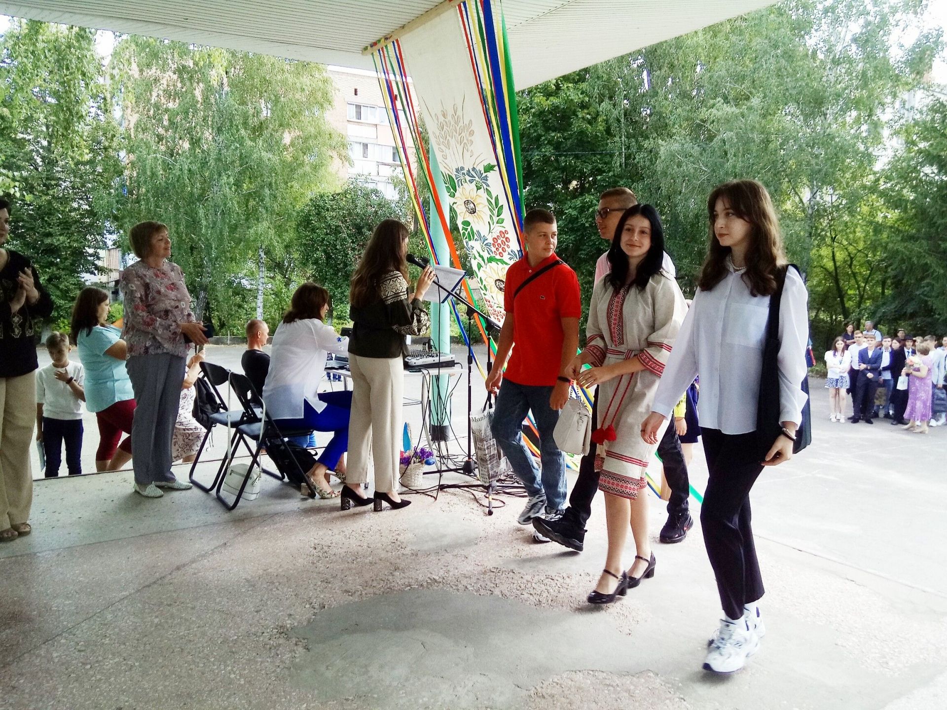 — Сьогодні в Україні День знань і День жалоби у Козятині: наші земляки Валентин Яричевський, Дмитро Янчук та Максим Лінник віддали за свободу України найдорожче — життя. Честь і слава Героям! Вічна пам’ять і вічна шана! — каже ведуча.