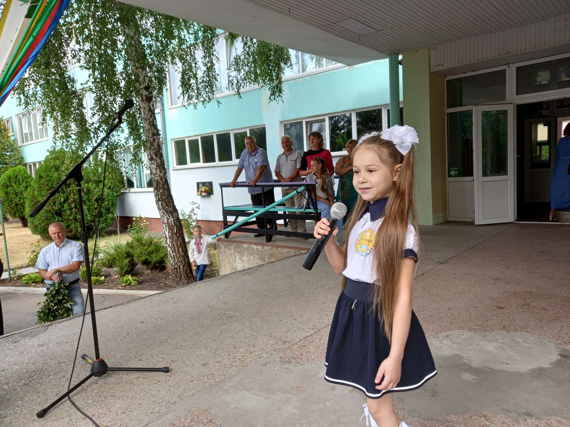 Перед тим, як передати першачкам чарівні зірки, для усіх виступила Анна Голодна. Дівчинка заспівала пісню. Козак вручив класним керівникам зірки і першокласників запросили на їх перший в житті урок.