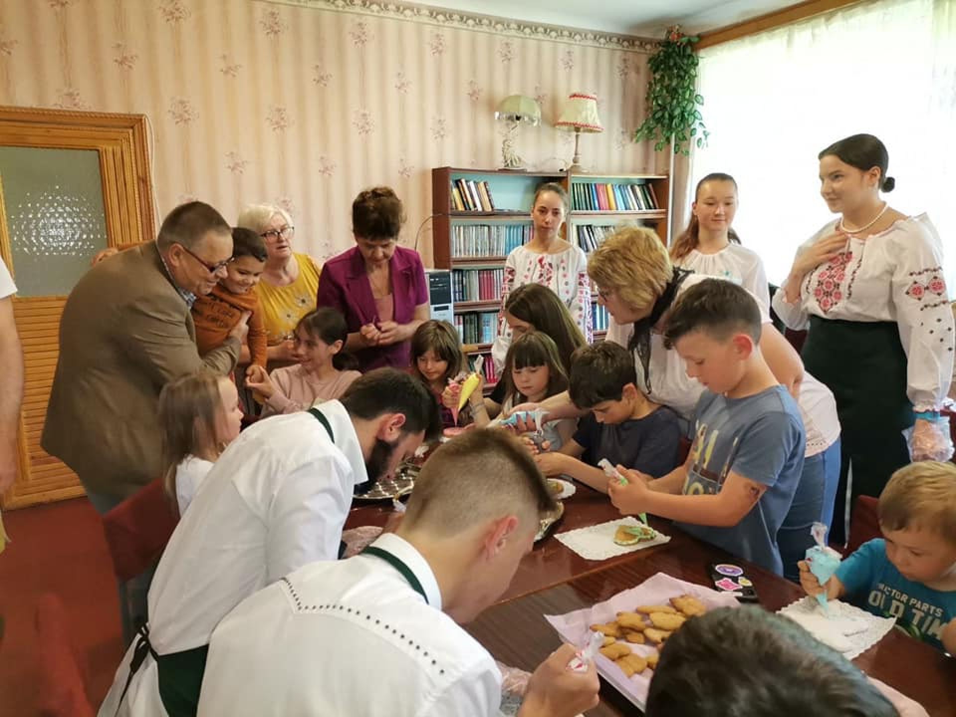— Продемонстрували техніку малювання айсингом Годинський Сергій та Кособуцький Влад (здобувачі освіти гр.№ 26), допомагали у проведенні майстер-класу майбутні кондитери Миколюк Марина, Мазур Сніжана ( група № 302) та Грубік Анна (гр. 225). Дітки вчилися у своїх старших друзів малювати айсингом на пряниках, декорувати вироби, використовуючи різні кольори для малювання. Деякі з них малювали смайлики та спішили подарувати свій пряник батькам. Нам, працівникам училища, було приємно бачити радісні обличчя діток, їх посмішки та старанність, яку вони проявляли під час спільної роботи, — йдеться у повідомленні