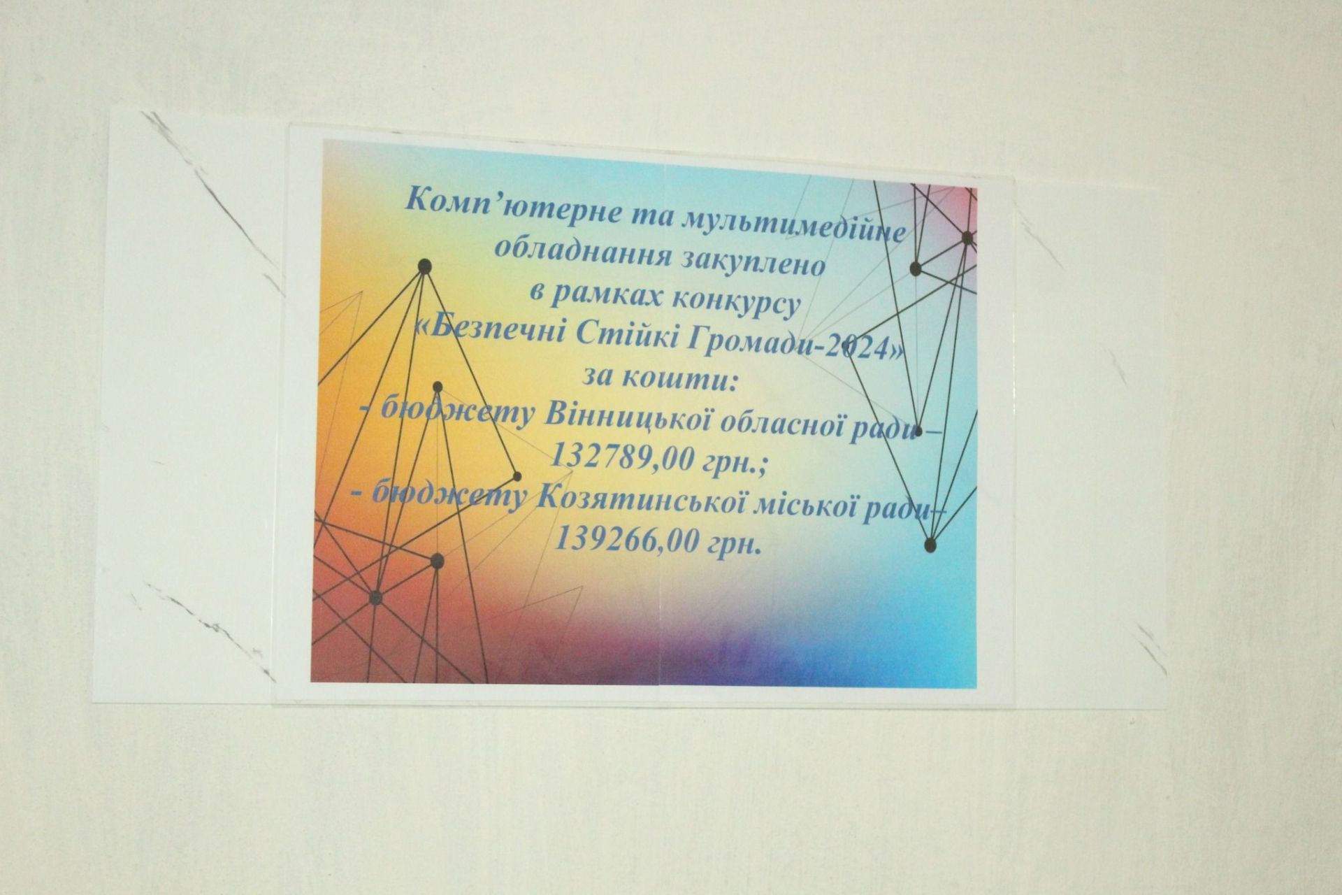 Козятинські ліцеї отримали сучасне обладнання для укриттів