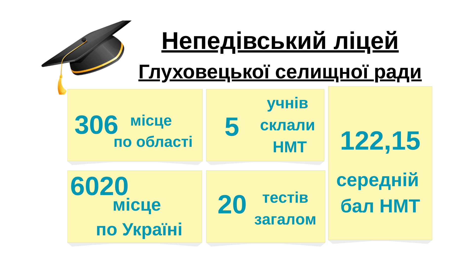 Непедівський ліцей Глуховецької селищної ради у порівнянні з минулим роком в рейтингу майже не просунувся і посів 306 сходинку. У розрізі предметів тут найвищий середній бал з біології та української мови.