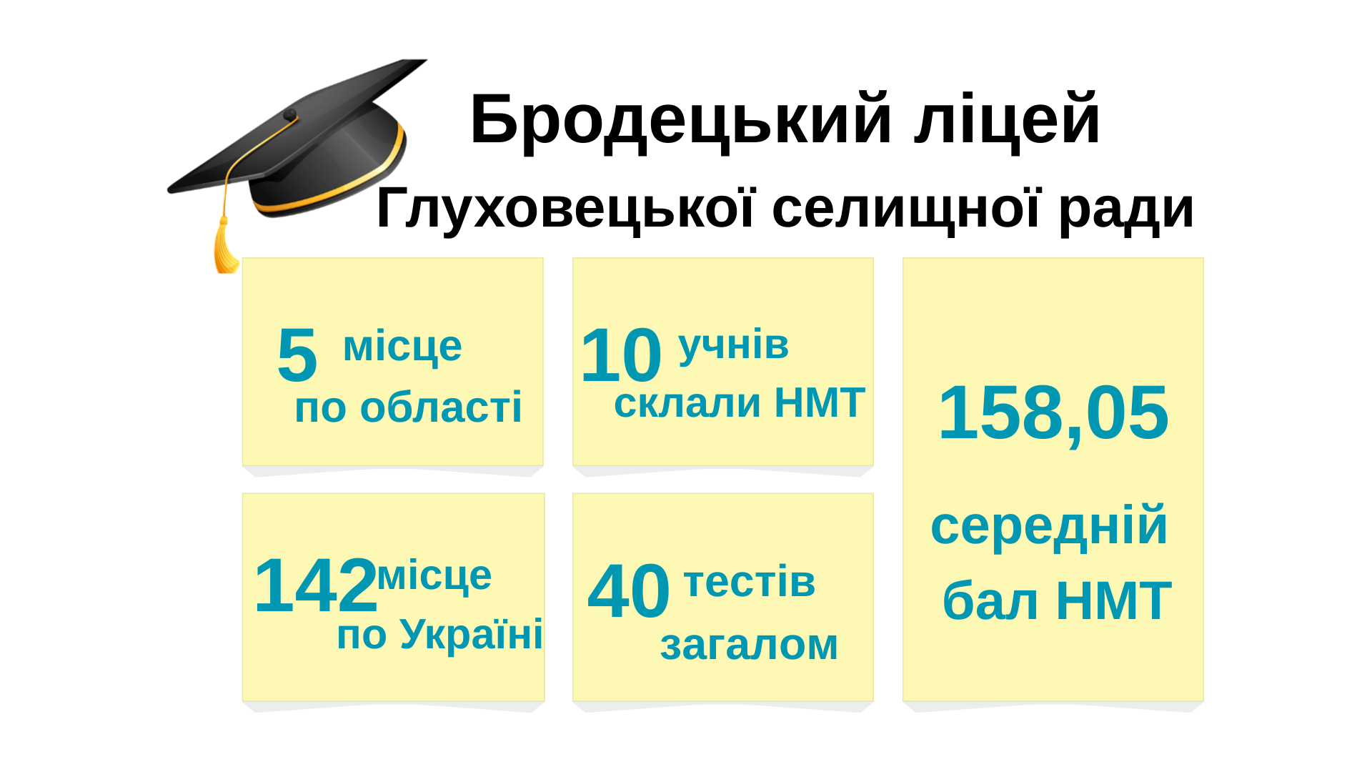 У розрізі предметів у Бродецькому ліцеї найкращі результати з української мови — 18 місце загалом по Україні. Нагадаємо, цьогоріч випускниця Бродецького ліцею Анна Загоруй одержала максимальні 200 балів саме за НМТ з української мови.