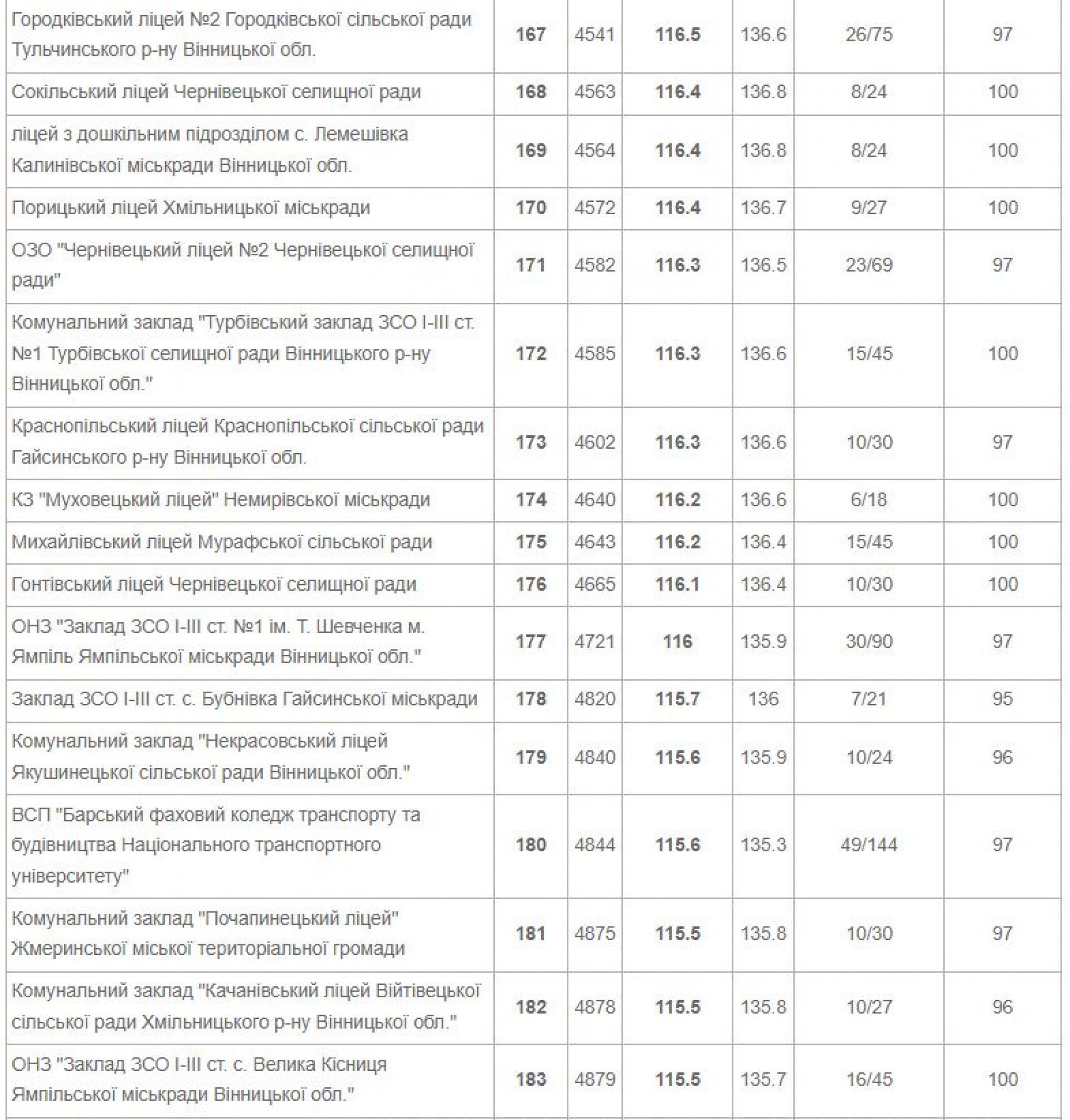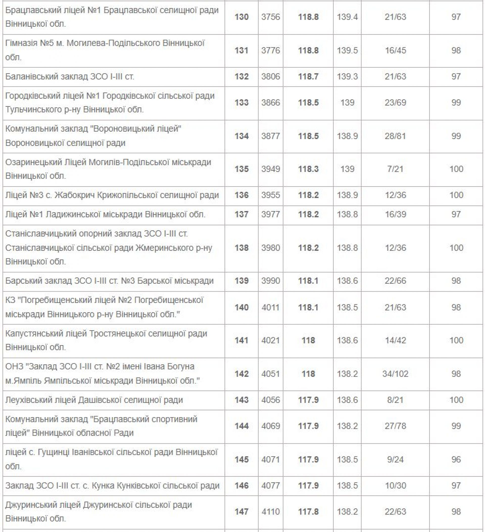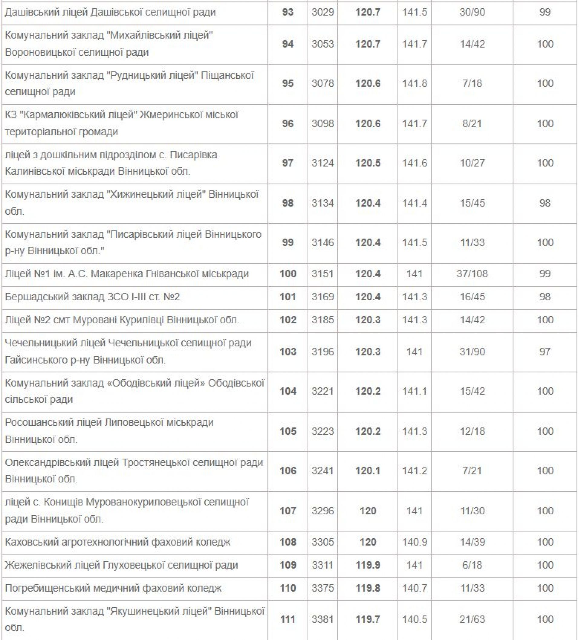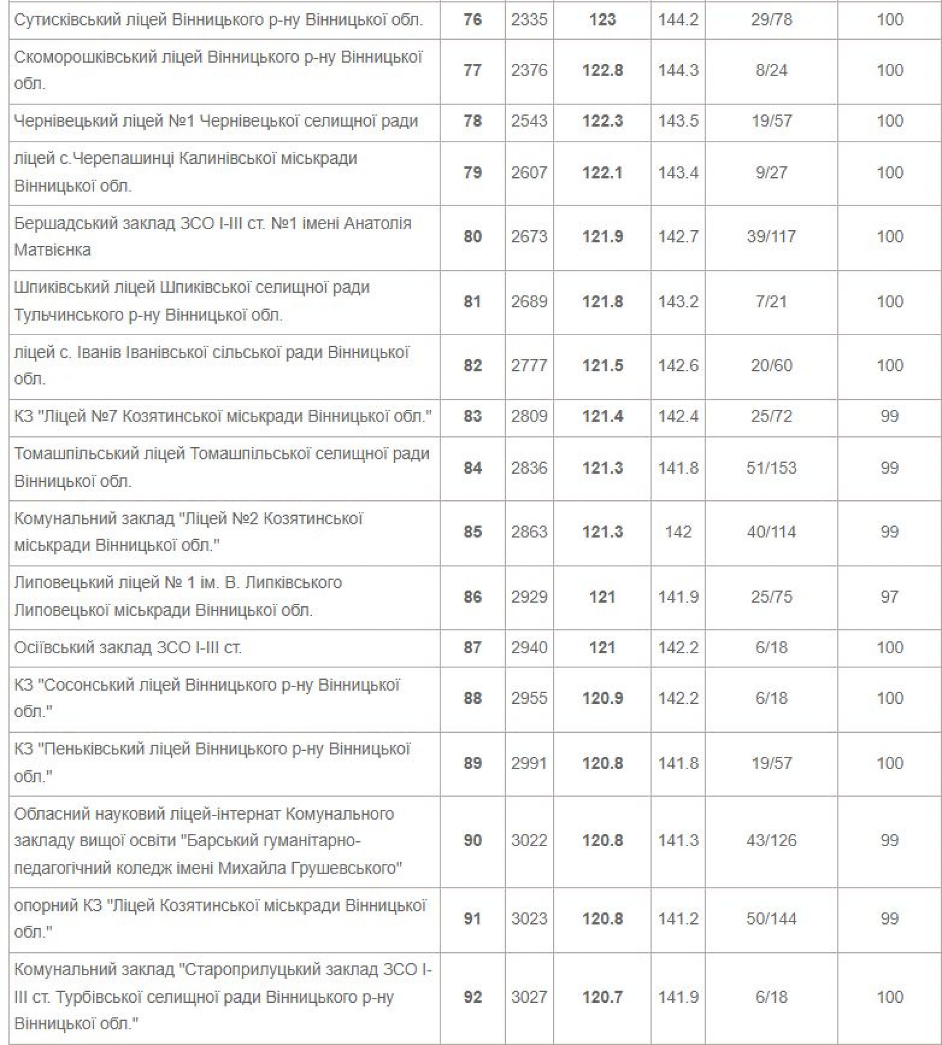 - 91 місце — опорний КЗ «Ліцей Козятинської міськради Вінницької області».