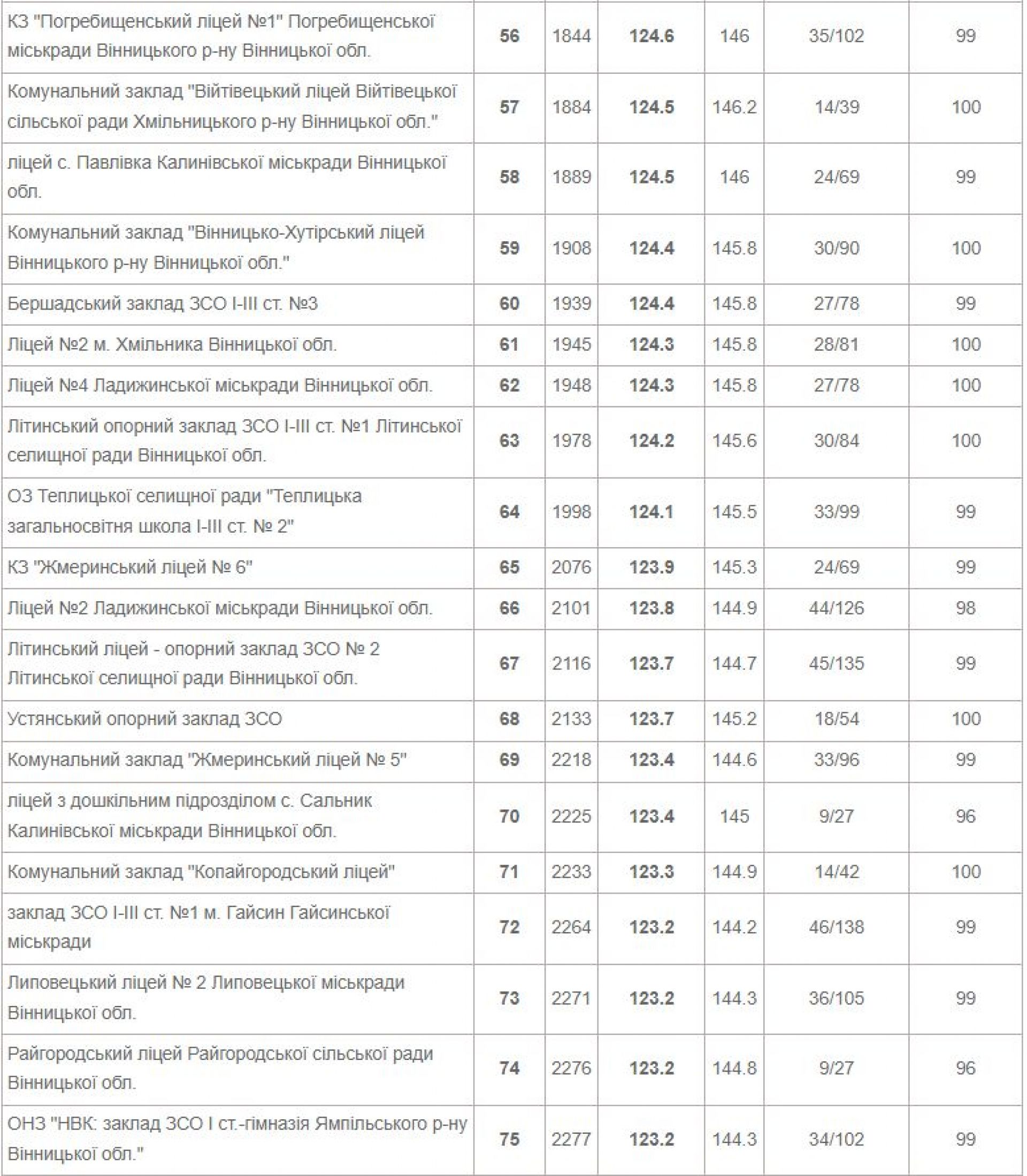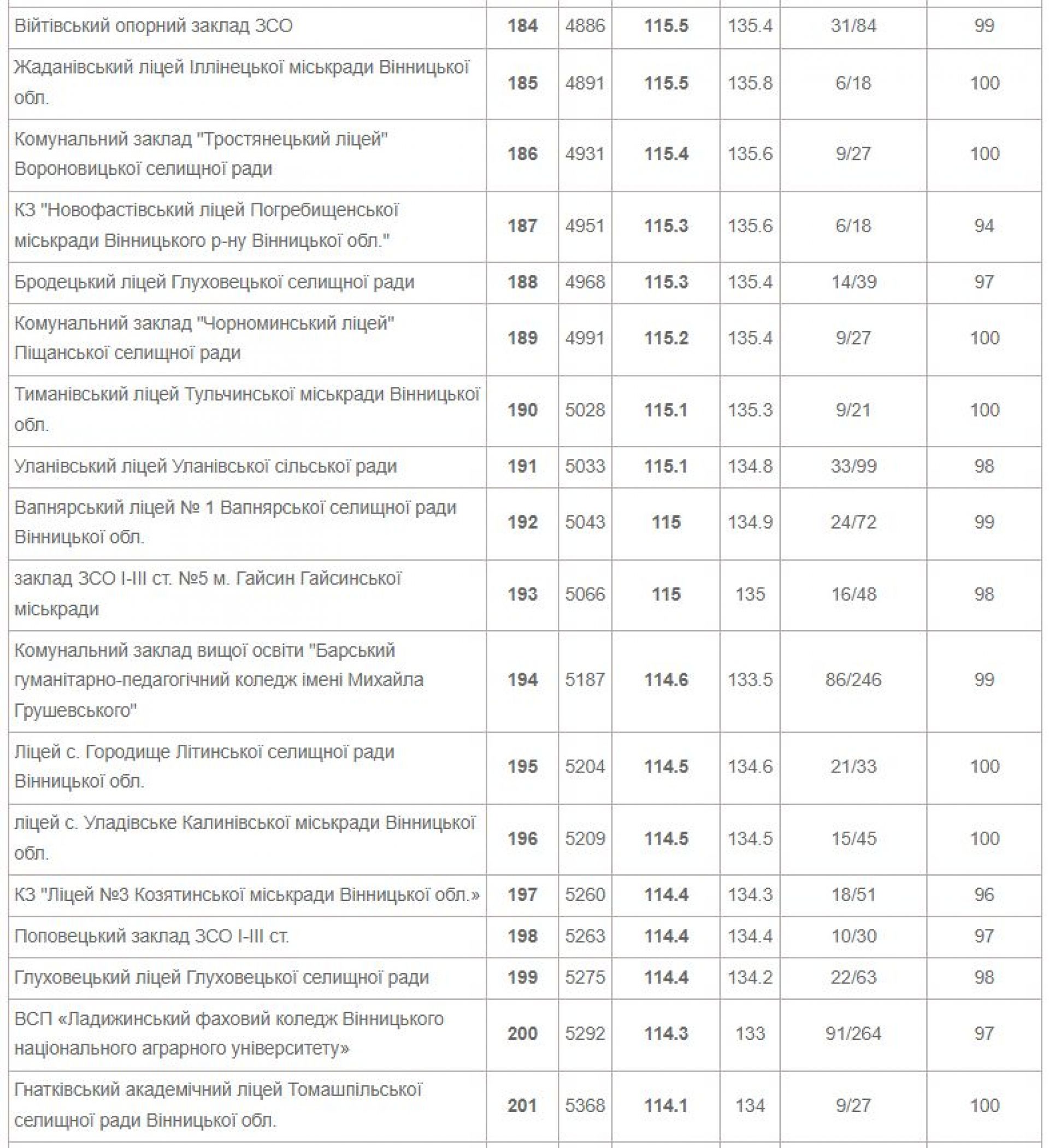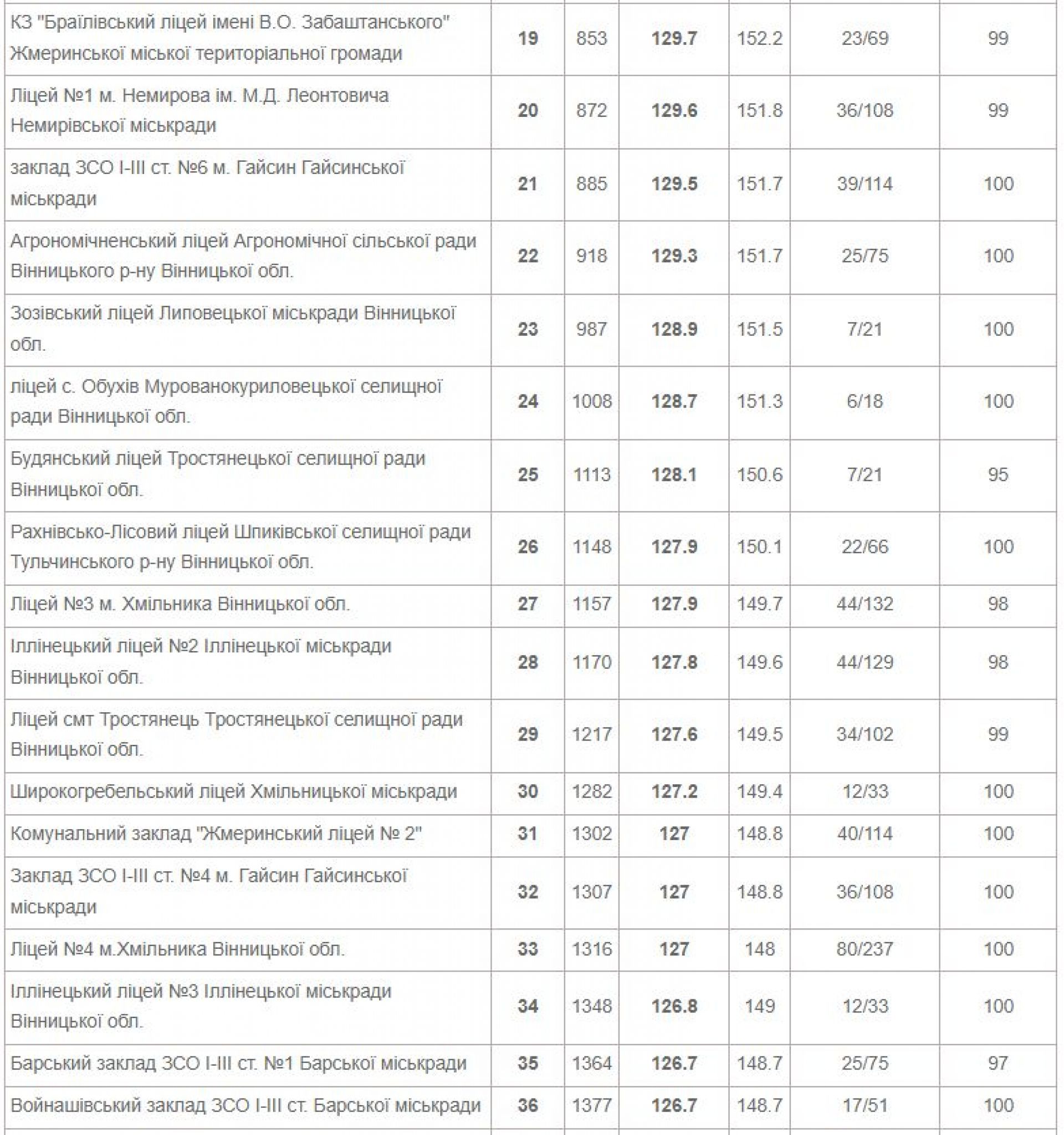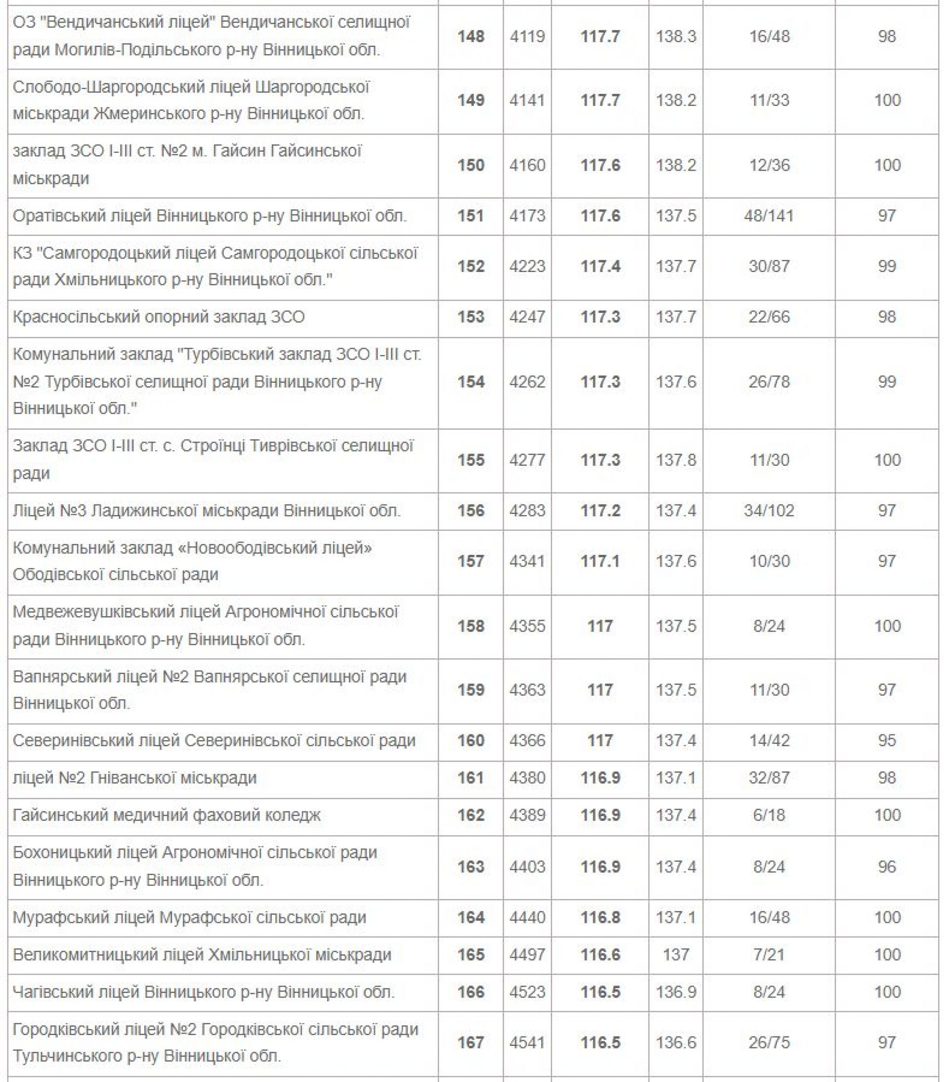 - 91 місце — опорний КЗ «Ліцей Козятинської міськради Вінницької області».