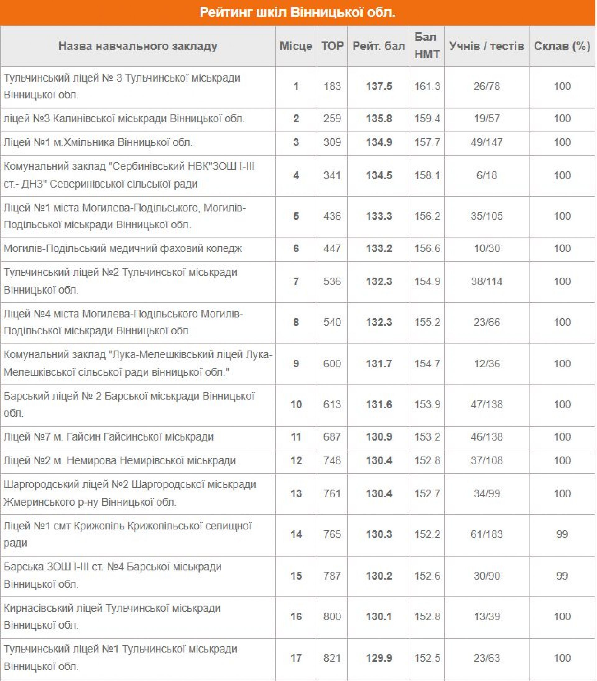 - Інформаційний освітній ресурс «Освіта.ua» склав рейтинг загальноосвітніх шкіл Вінницької області.