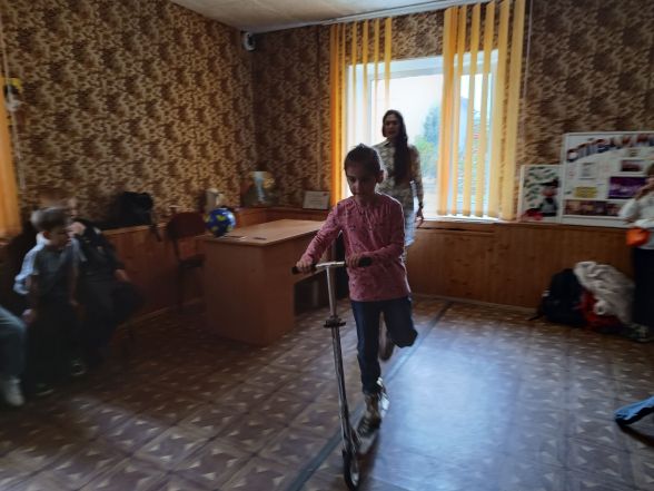 Тетяна бере до рук самокат і показує, що потрібно робити: прокататися і проспівати своє ім’я. Першим пробує Кирило. У хлопчика дуже гарно виходить виконати вправу: однокласники йому аплодують.