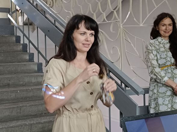 Таїсія Обущак показує дітям фарби, різні види пензликів, а ще предмети, які можна використовувати для того, щоб малювати: зубну щітку, кухонні губки. На завершення Таїсія вручає 2-І їх перший ключ. Його приєднує до зв’язки класний керівник Тетяна Міщук.