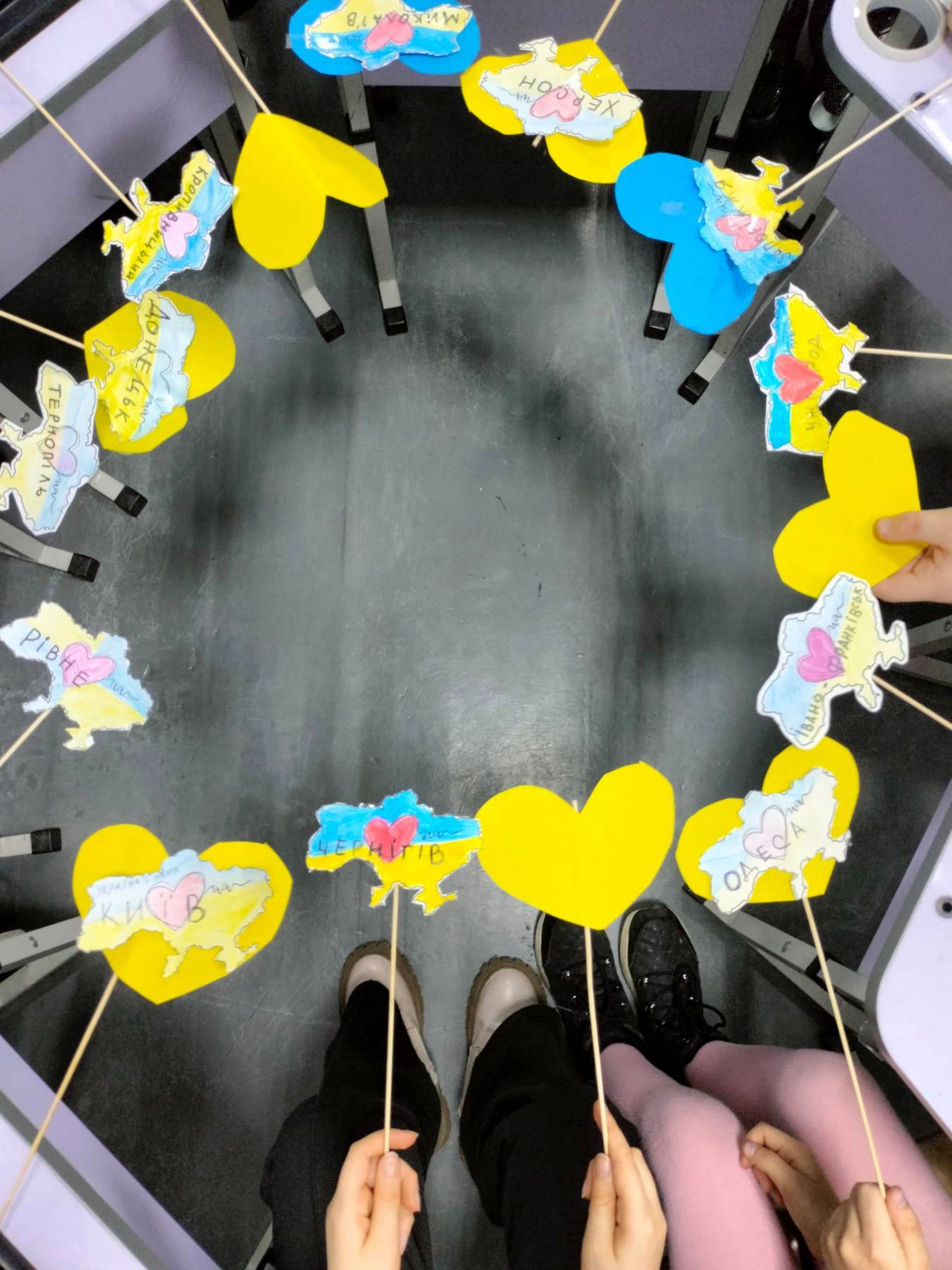 На сторінці Ліцей №1 ім. Т.Г.Шевченка - м. Козятин опублікували світлини, які підписали: «День єднання. Україна разом».