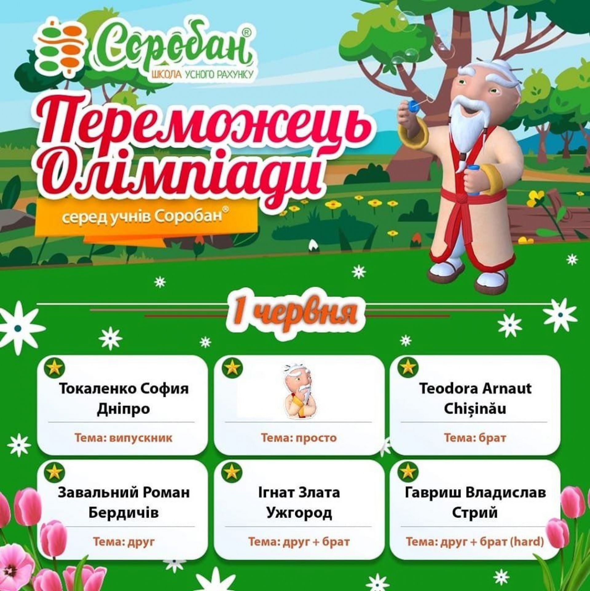 «Мій син почав відвідувати школу 31.08.2021 року, - розповідає мама хлопчика Марія Завальна. - Роман виконує олімпіади щодня, але вигравати може один раз у місяць. Кожного дня він займається годину ( виконує домашнє завдання, олімпіаду і тренажер). За кожне успішно виконане завдання отримує зірочки, які згодом змінює на монети. Завдяки цим монеткам дитина починає ще наполегливіше працювати. За час відвідування школи ми, батьки, помітили, як школа "Соробан" позитивно вплинула на Романа, адже він завжди хоче поділитися своїми знаннями і досягненнями з друзями і близькими».