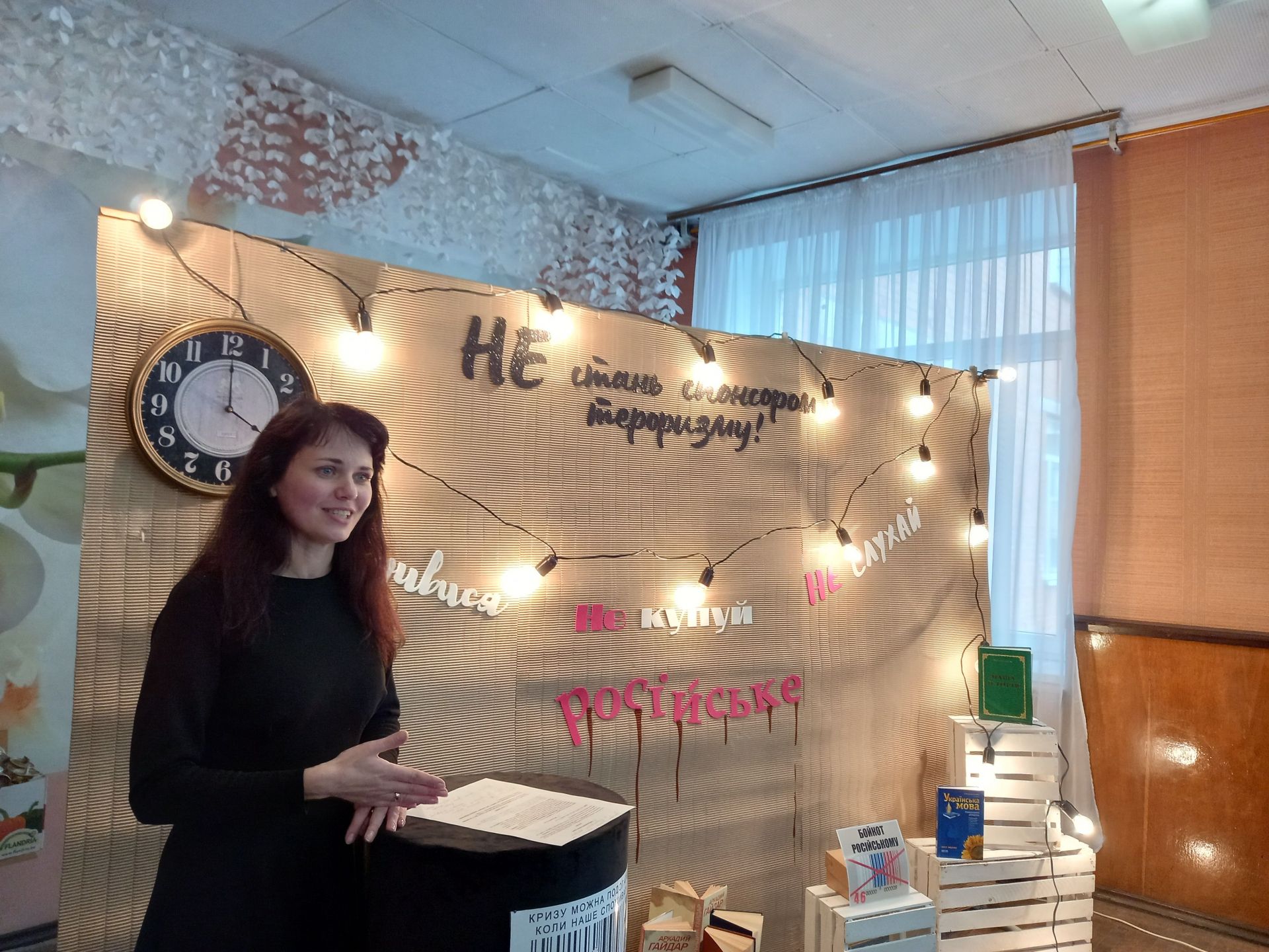 — Росіяни чотириста років борються з українцями різними способами, — каже Ольга Ткачук, методист центру, керівник «Школи лідерів» та Театральної студії. — Вони сумлінно нищили цей час нашу освіту, нашу мову. Починаючи від Катерини другої, яка заборонила викладання українською в Києво-Могилянській академії та відкриття українських шкіл. Потім комуністи говорили, що українську інтелігенцію потрібно поставити на коліна, а кого не вдастсься поставити, треба вбивати. Із рештою, вони винищували інтелігентів-українців, садили до в’язниці і робили всіма способами, щоб наше населення було неграмотним і українська мова не розквітла. Те саме роблять росіяни зараз — на окупованих територіях вони палять, викидають на смітники українські книжки, нав'язують свою гидотну російську мову. Тому що мова — це також зброя.