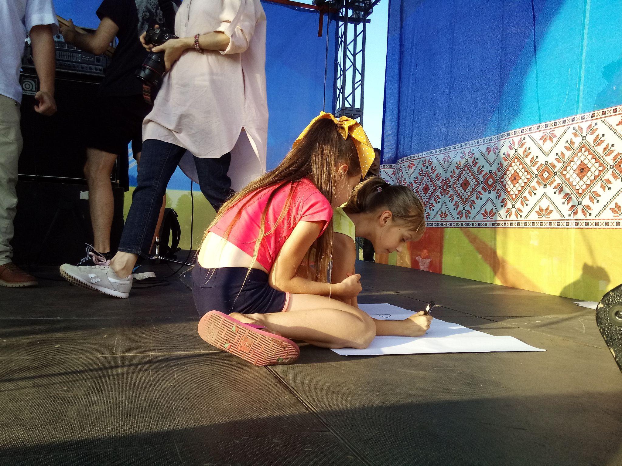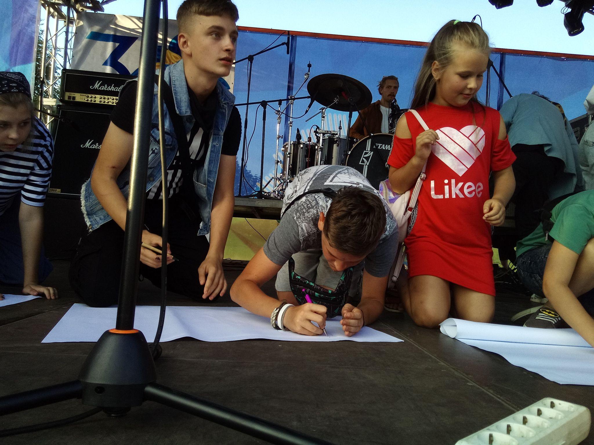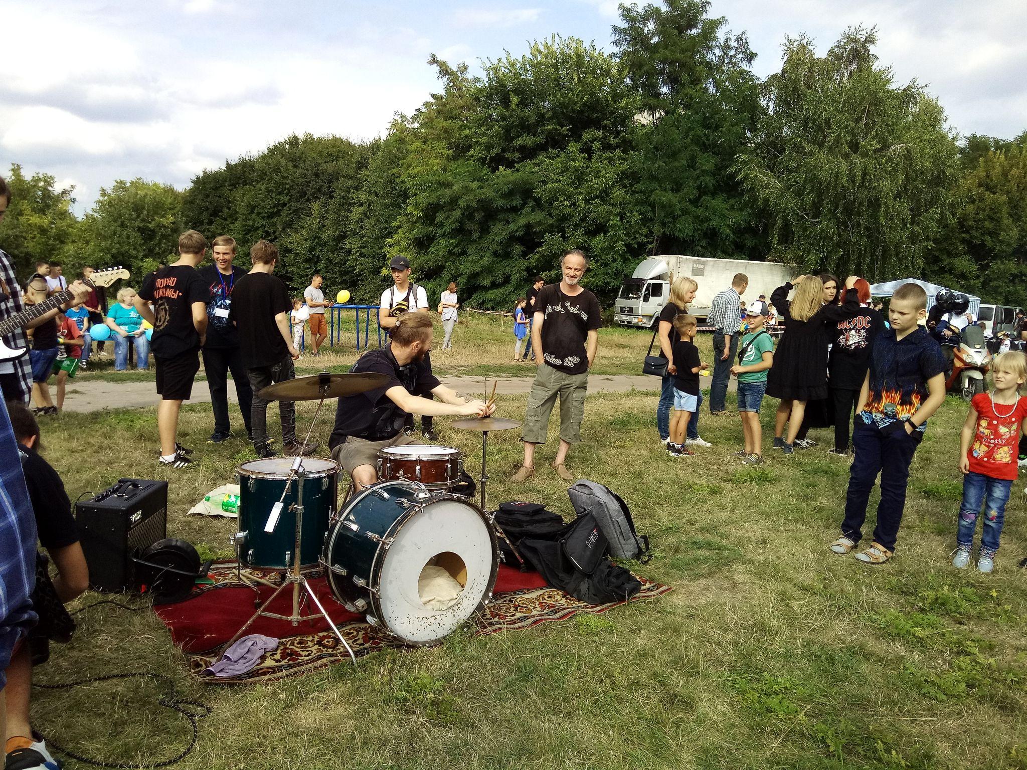 Праворуч від сцени розгорнули локацію, де музиканти до початку заходу проводили майстер-клас із гри на музичних інструментах. Багато дітей підходили просто подивитись, хто сміливіший, сідав за барабанну установку і пробував грати сам.