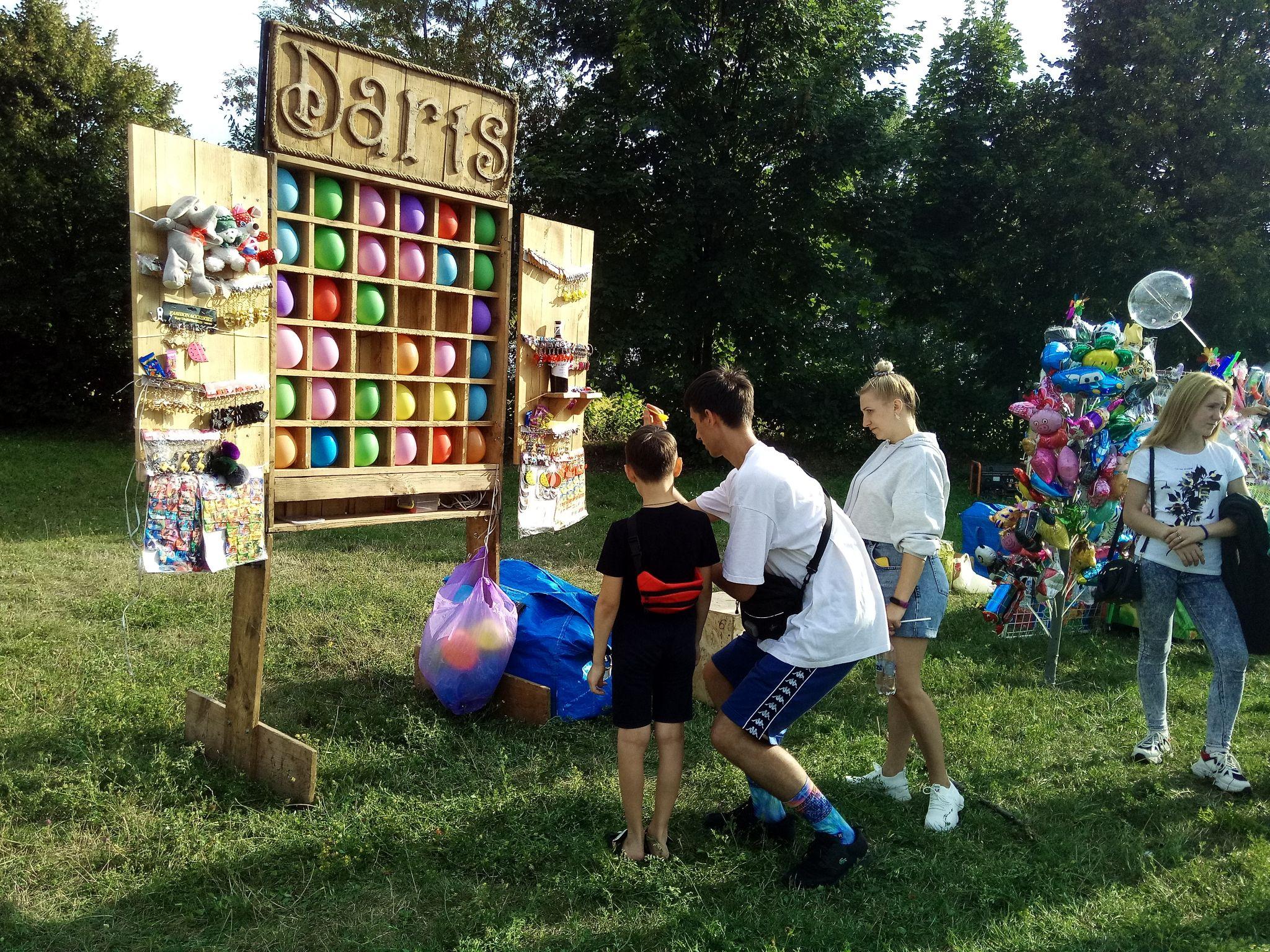 Ближче до вечора стадіон училища перетворився на справжнє фестивальне містечко. Тут вишикувалися надувні гірки та атракціони, ятки зі смаколиками, сувенірами та іграшками, мангали, лаунж-зона, де можна було покурити кальян.