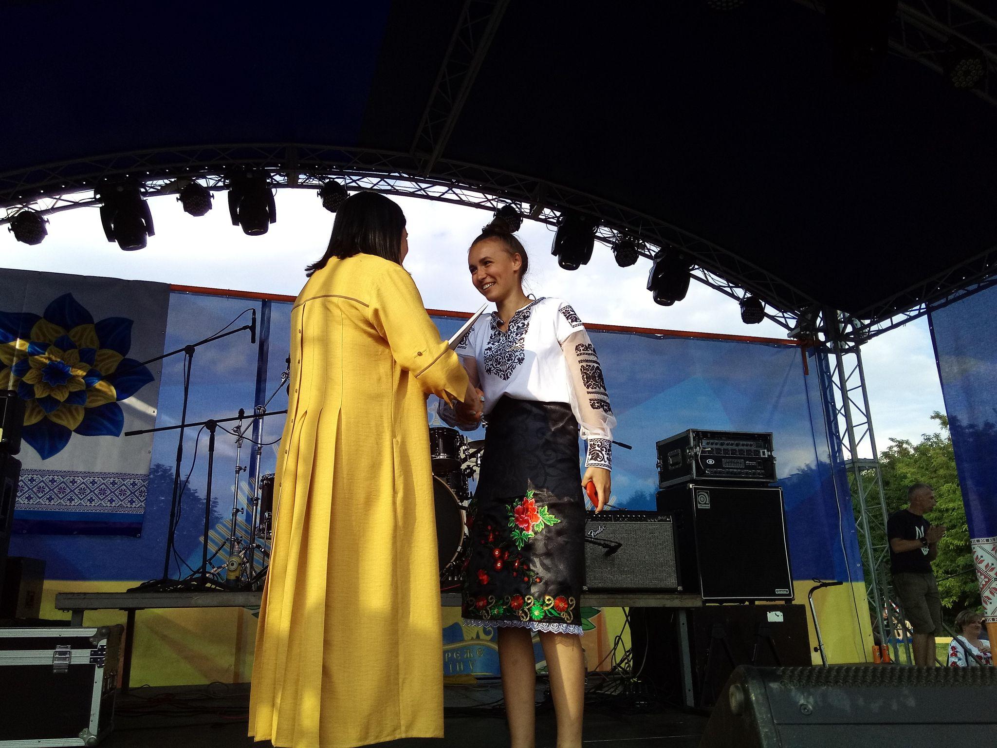Після короткої промови Тетяна Єрмолаєва нагородила сертифікатами переможців конкурсу міні-проектів “Я зможу, тому що я хочу”.