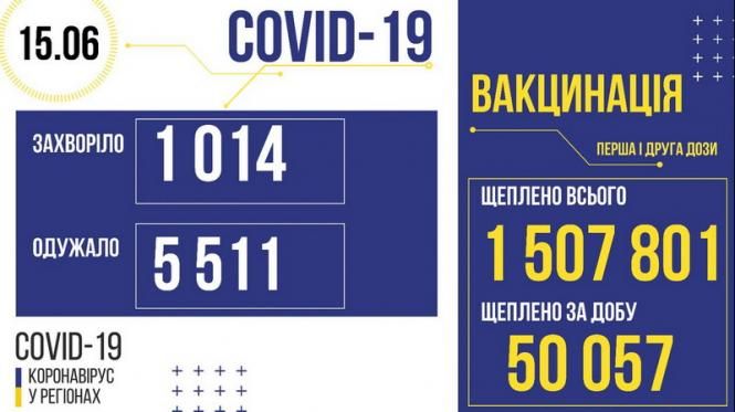 В Україні за добу одужали 5 511 людини. Захворіли – 1 014. Померли – 77. Загалом проведено 1 507 801 вакцинацій.
