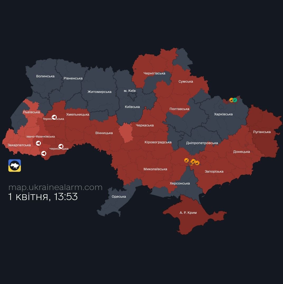 - Ще з ночі, 31 березня в Україні триває масована шахедна атака на західні області.