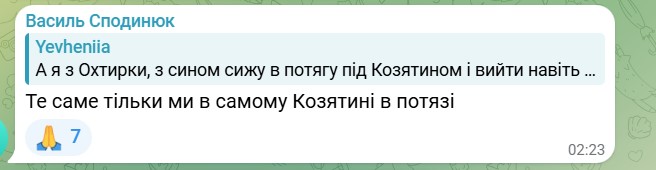 У нашому телеграм-каналі в коментарях, де козятинчани ділилися переживаннями цієї безкінечної ночі, писали і пасажири, що «застряли» у потягах біля нашого міста.