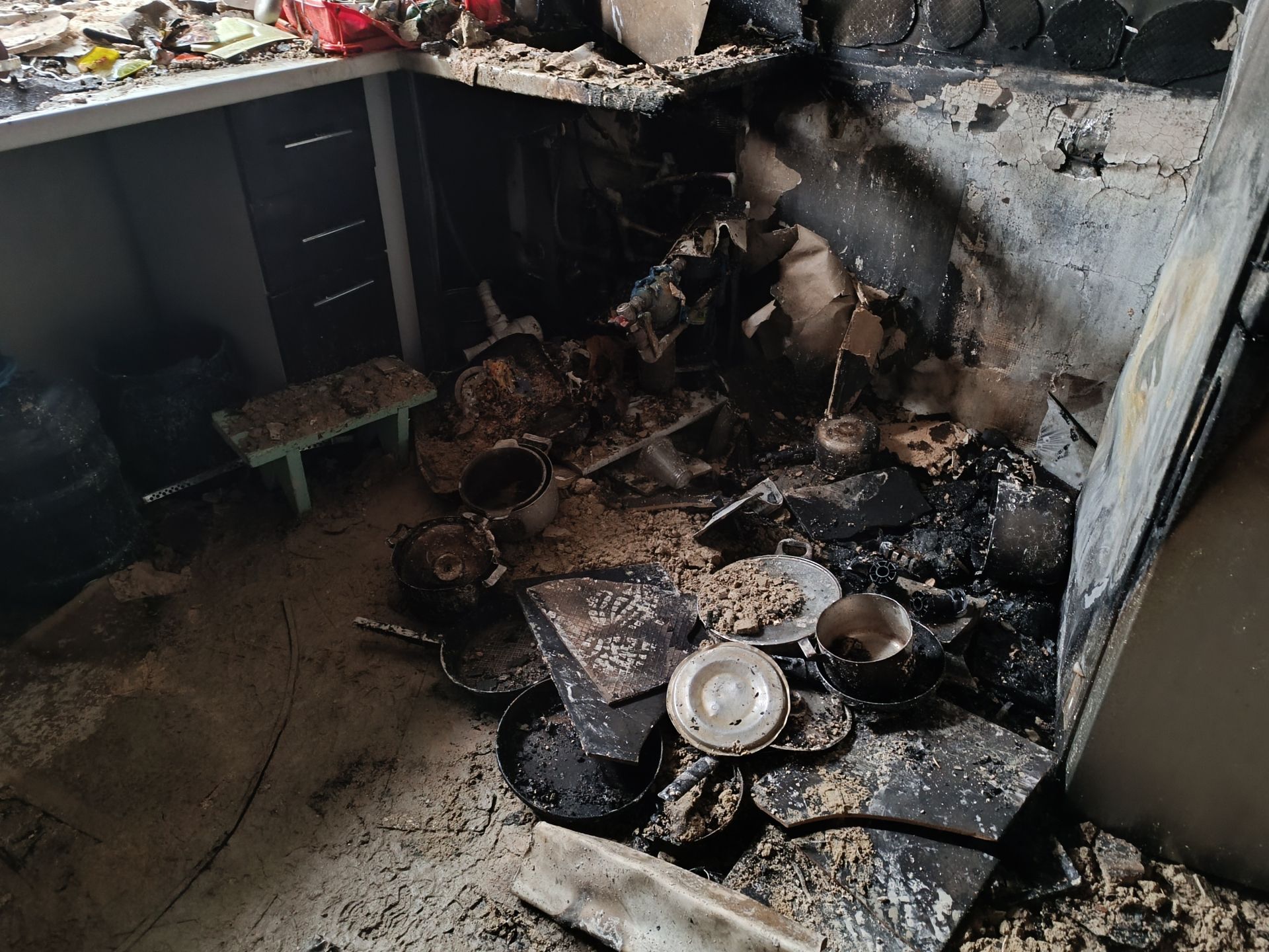 — У нас був холодильник Самсунг, новий. Тут була газова плита, — показує Ольга Чайковська. — У нас була вбудована варильна поверхня. Вона спалахнула. Пішло все на холодильник і одразу відбулося задимлення — все було чорне.