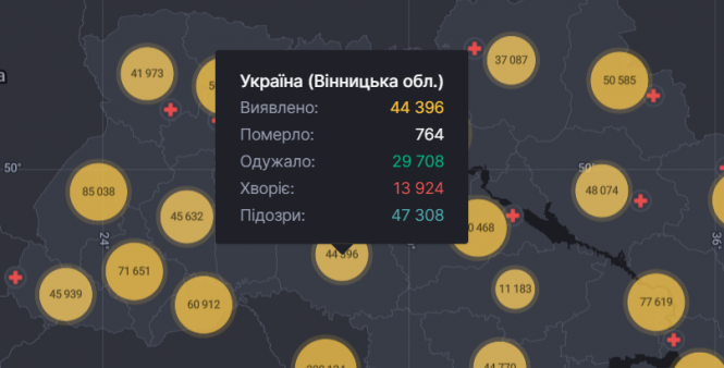 За останню добу найбільша кількість підтверджених випадків зареєстрована у Житомирській (1310), Вінницькій (940), м. Київ (896), Одеській (757), Львівській (704) та Київській (697) областях.