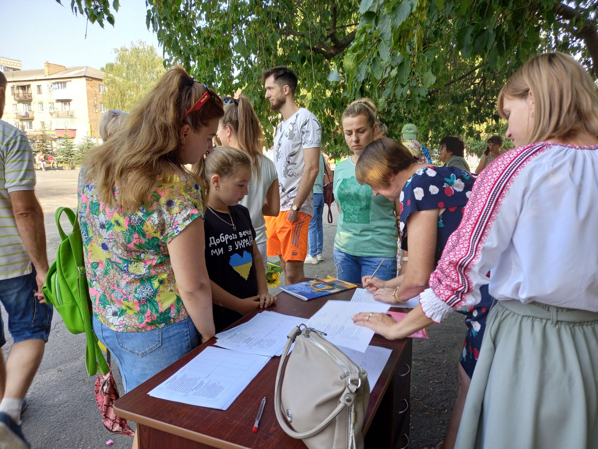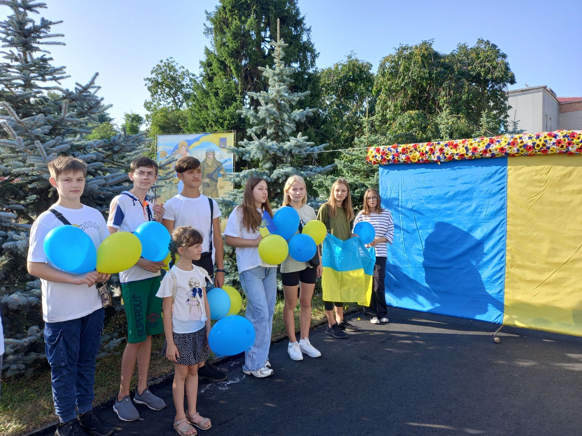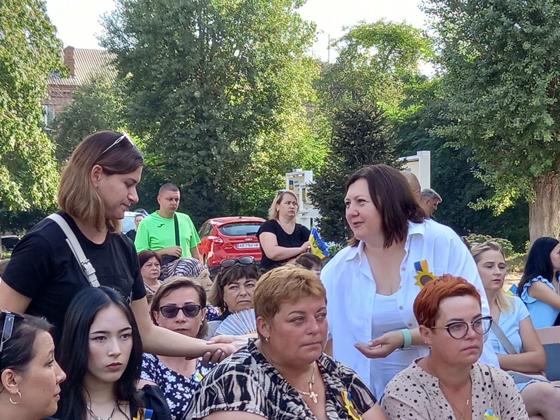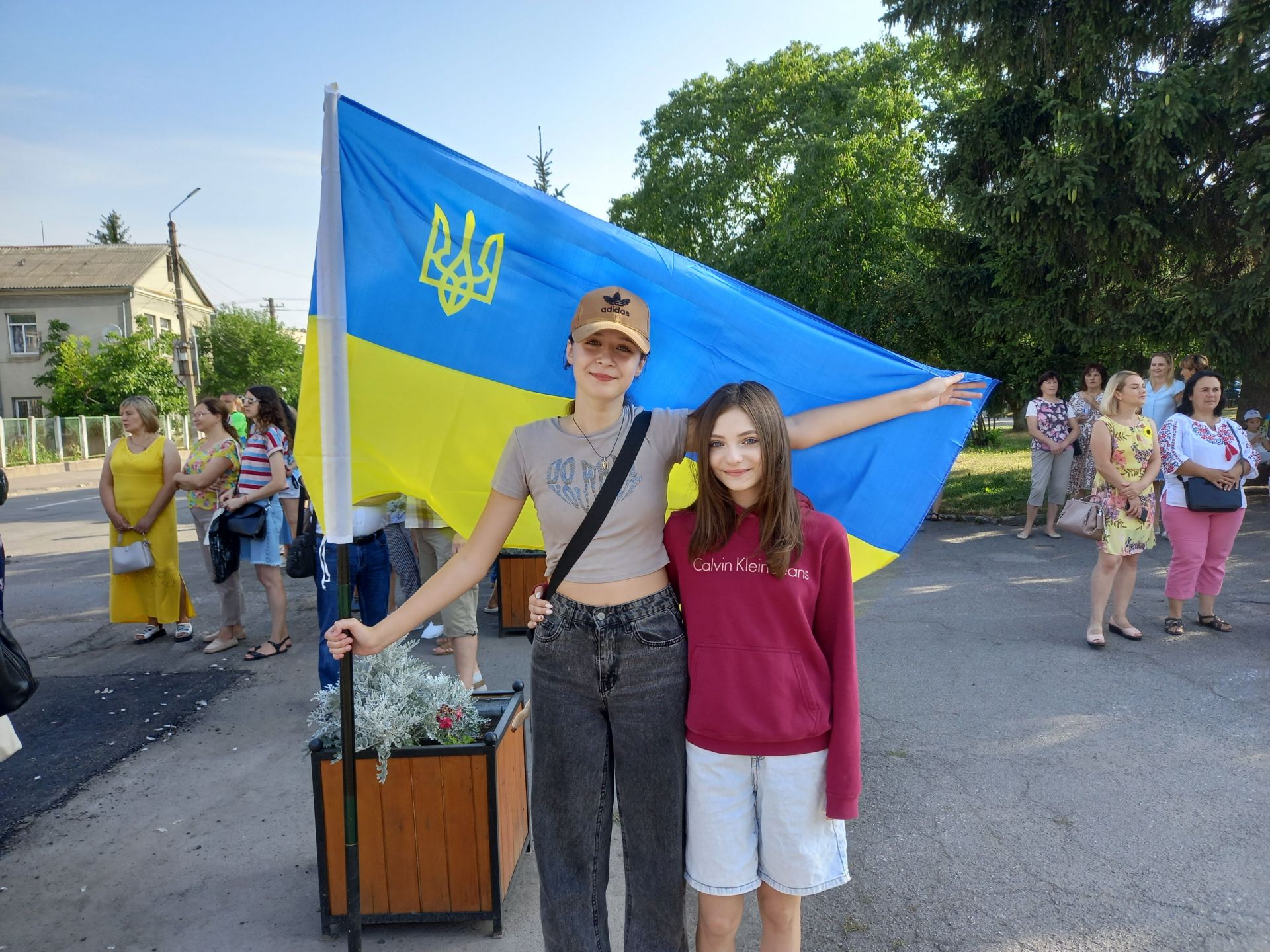Багато козятинчан взяли ще й прапор. Серед них Маша та Діана. Дівчата прийшли підтримати свою подругу — Наташу Мазур, ученицю опорного ліцею.