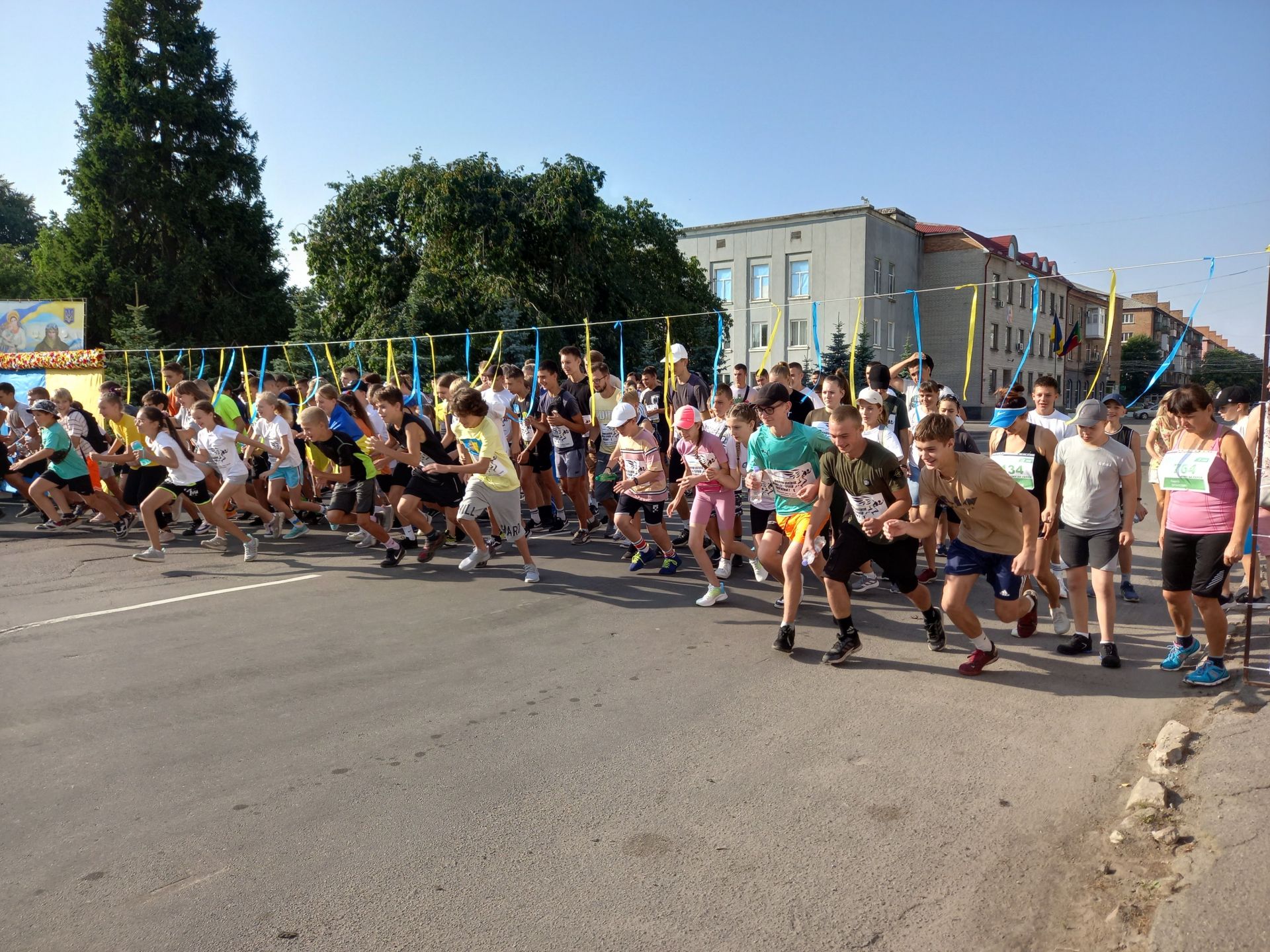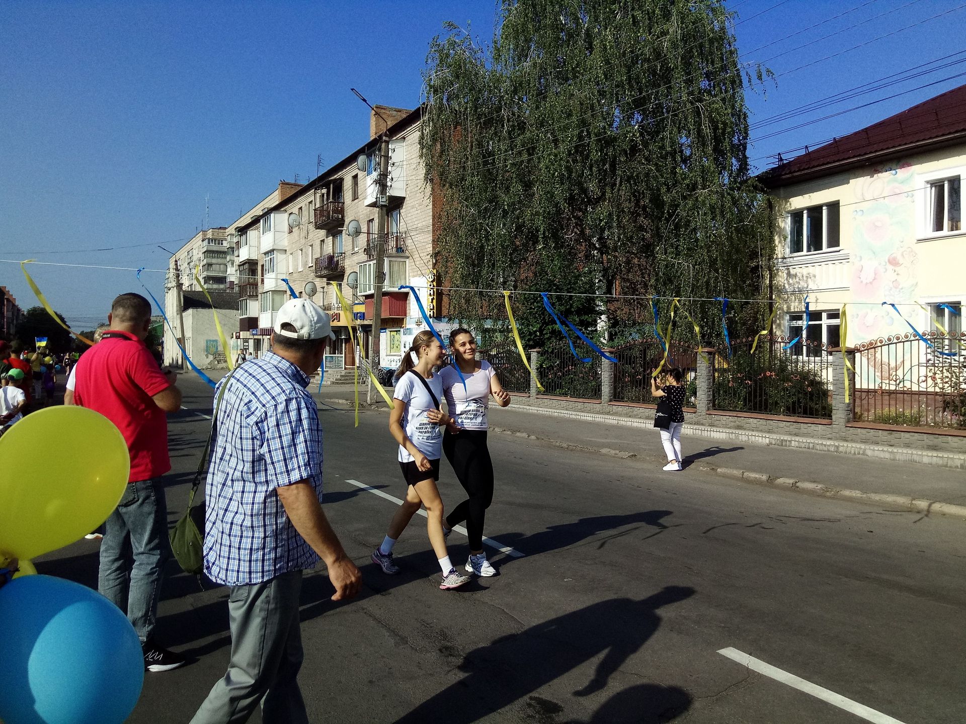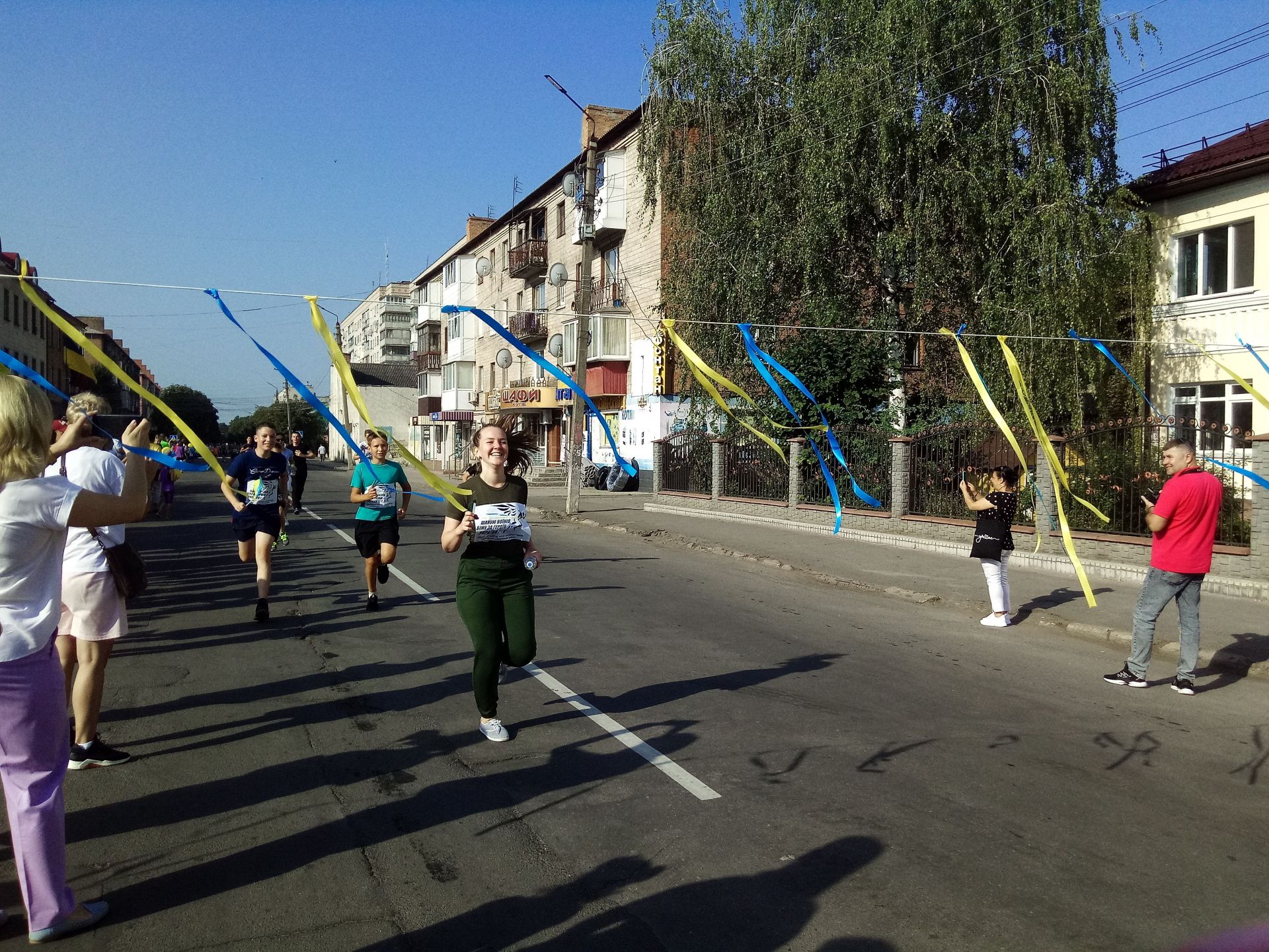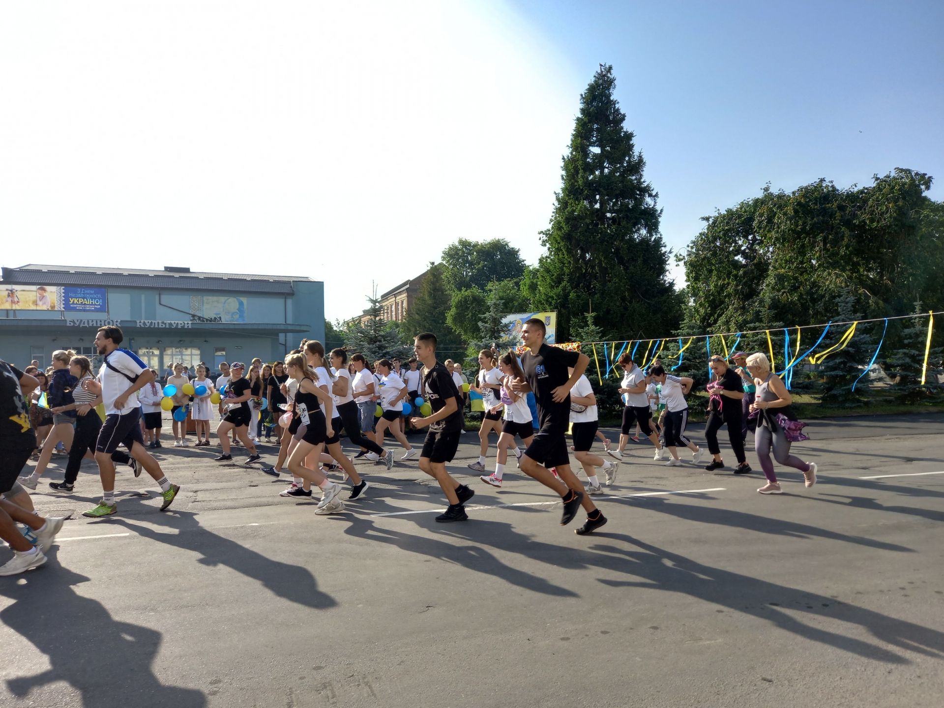 Учасників забігу запросили на лінію старту, яку прикрасили жовто-блакитними стрічками. За сигналом свистка усі дружно почали бігти.