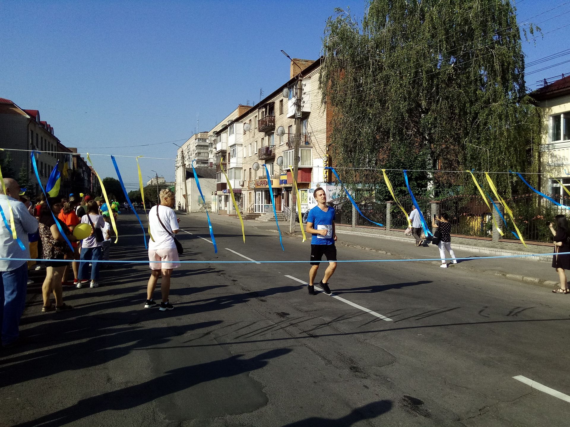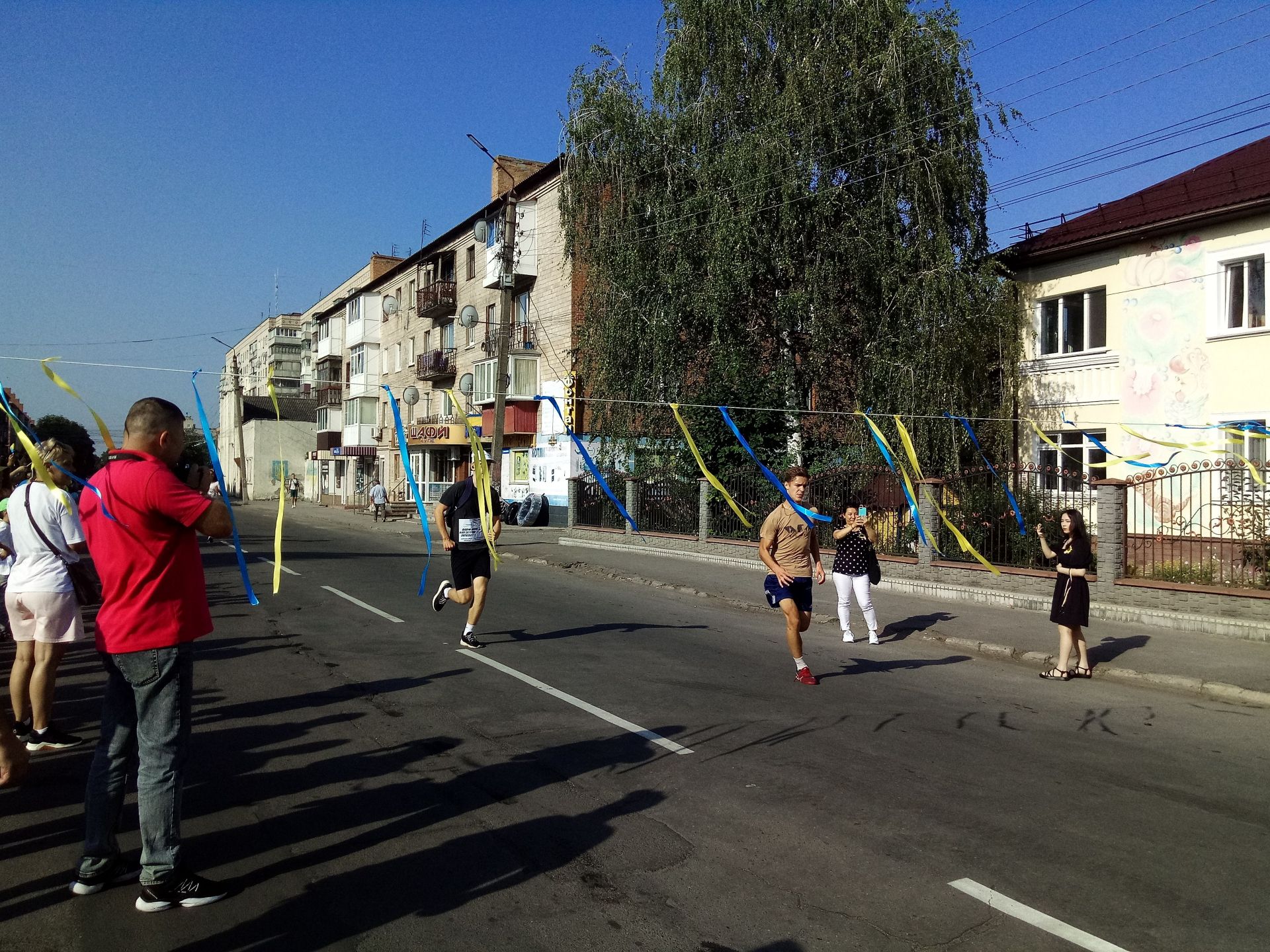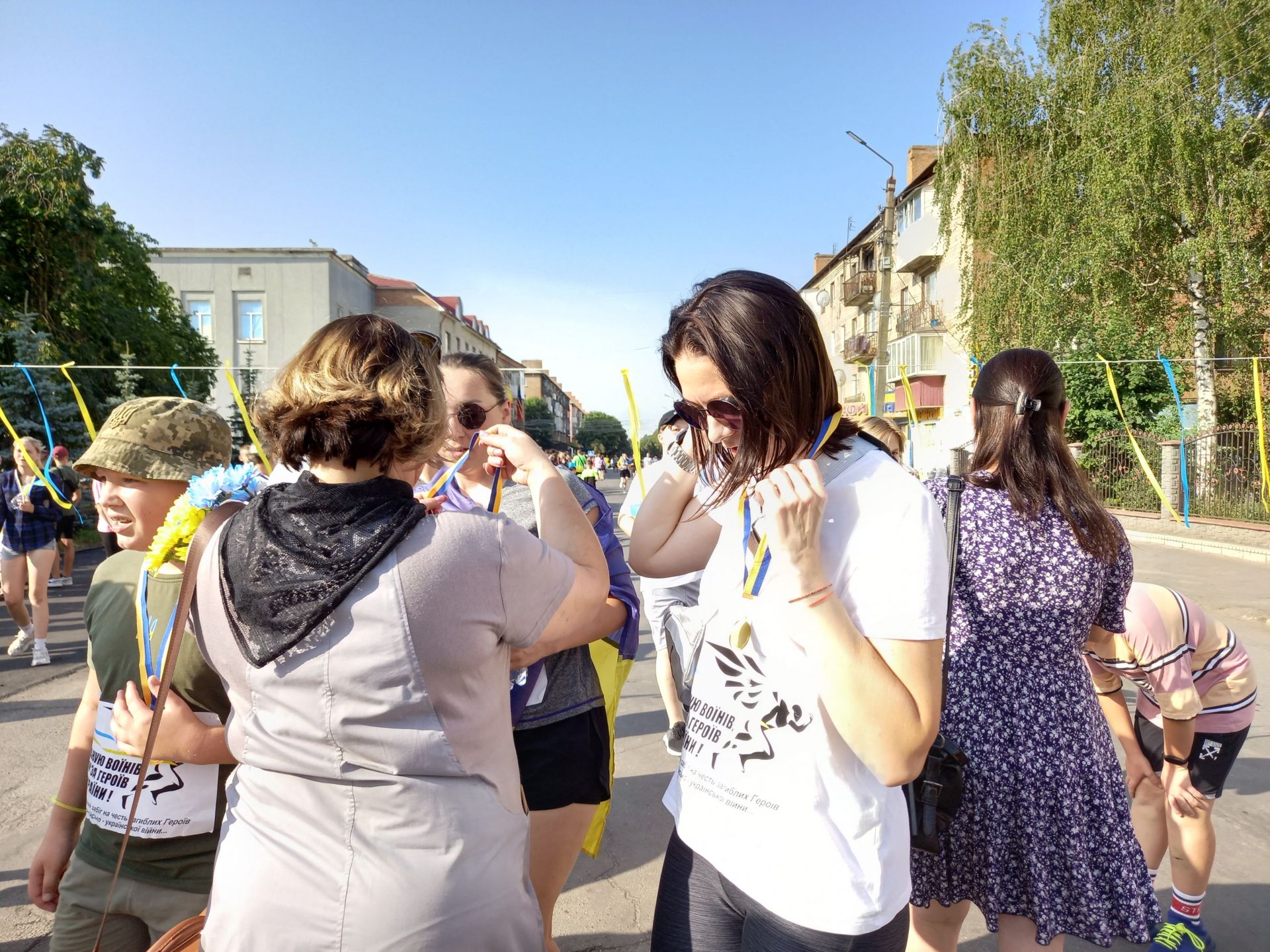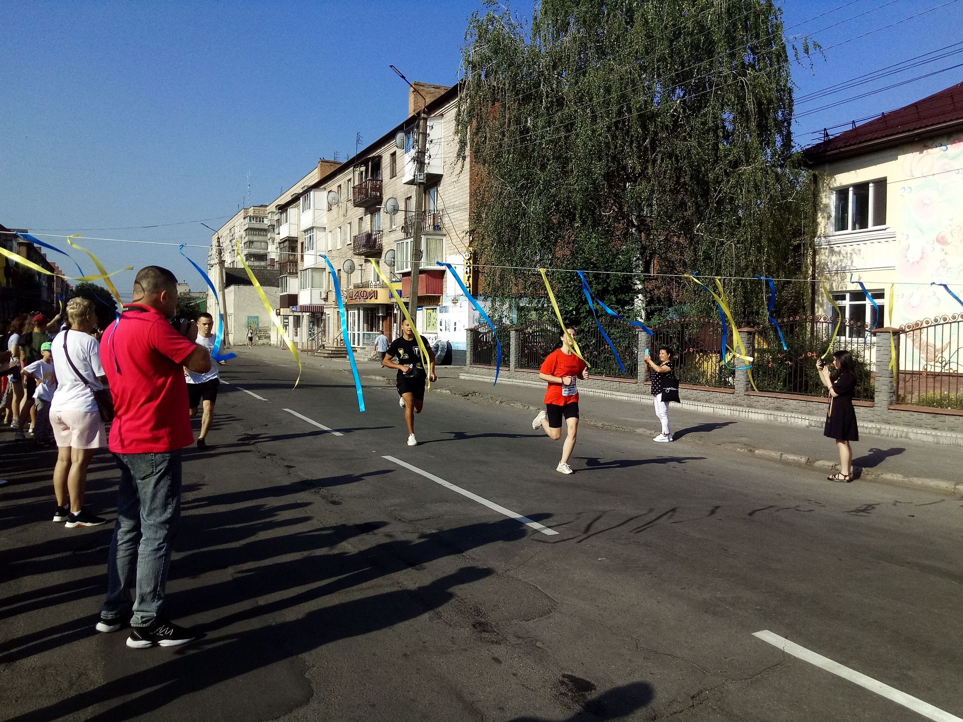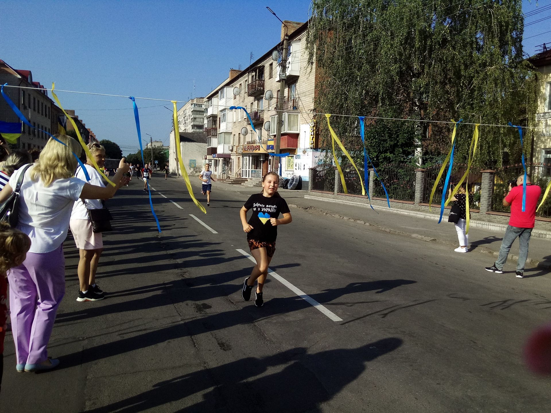 Учасників забігу запросили на лінію старту, яку прикрасили жовто-блакитними стрічками. За сигналом свистка усі дружно почали бігти.